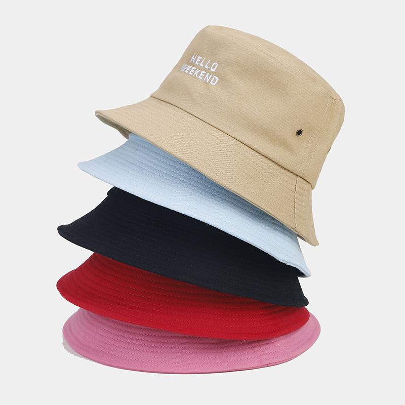 Sombrero de Pescador Bordado con Letras Pequeñas de Marca Trendy Estilo Coreano, Sombrero de Cubo de Estilo Artístico Pequeño y Fresco para Viajes y Compras, Sombrero de Moda
