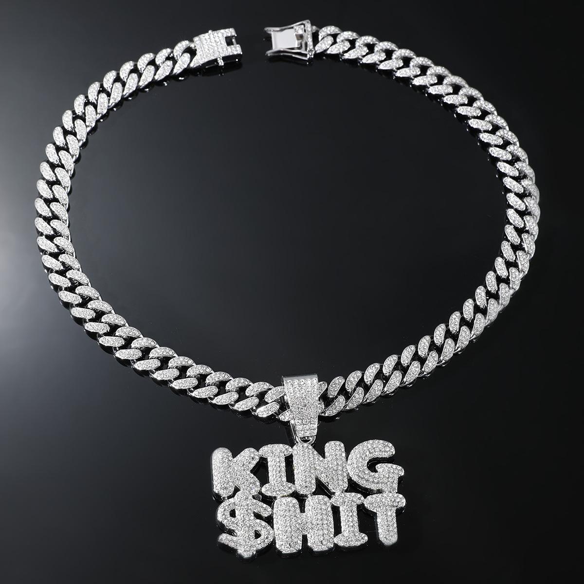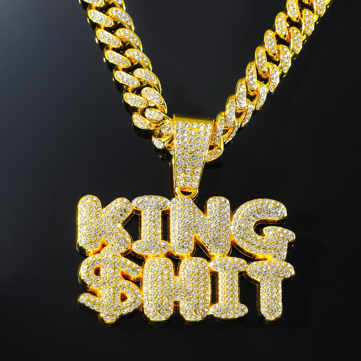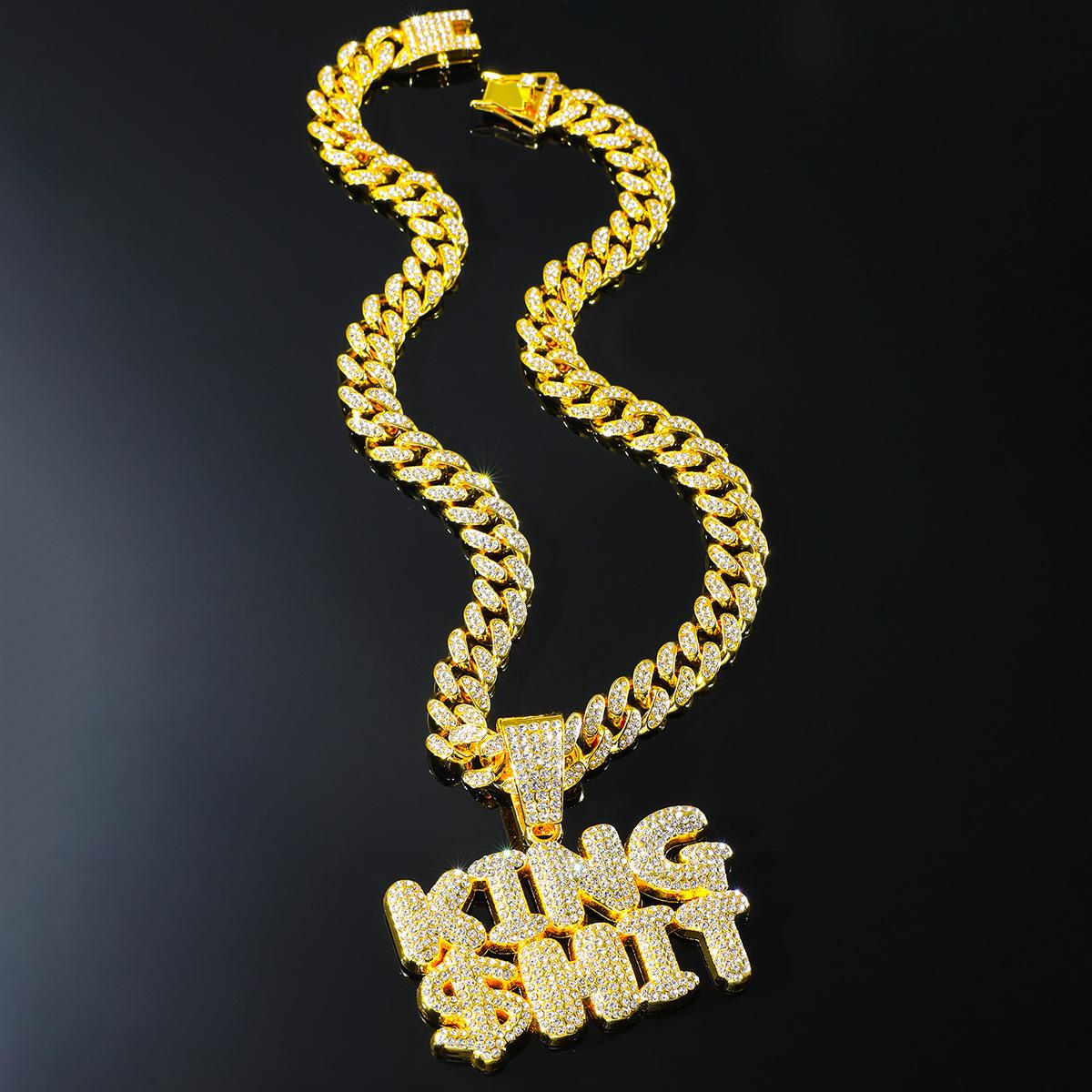 Collar con colgante de letra de diamante con diseño de rey exagerado de hip-hop europeo y americano para hombre, accesorios de cadena cubana dominantes y geniales, joyería