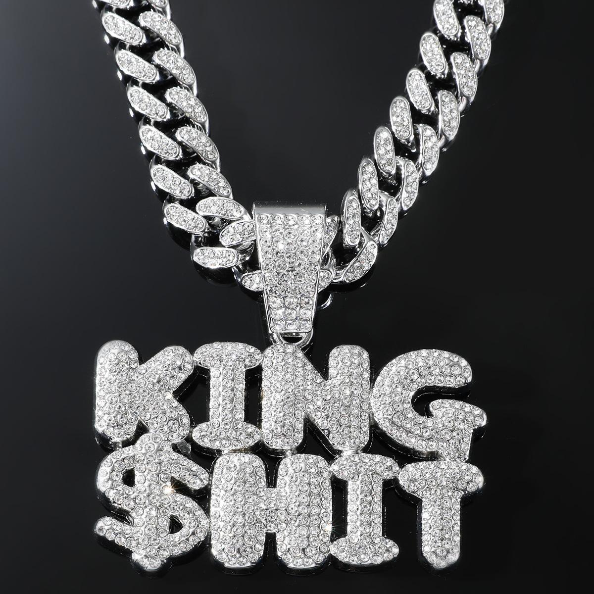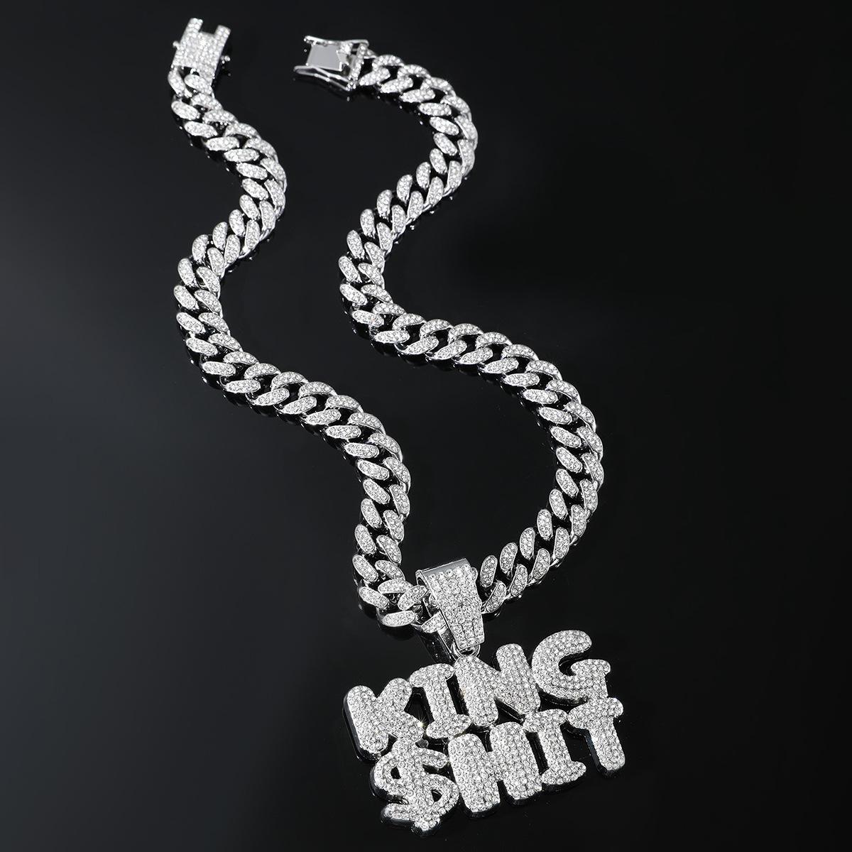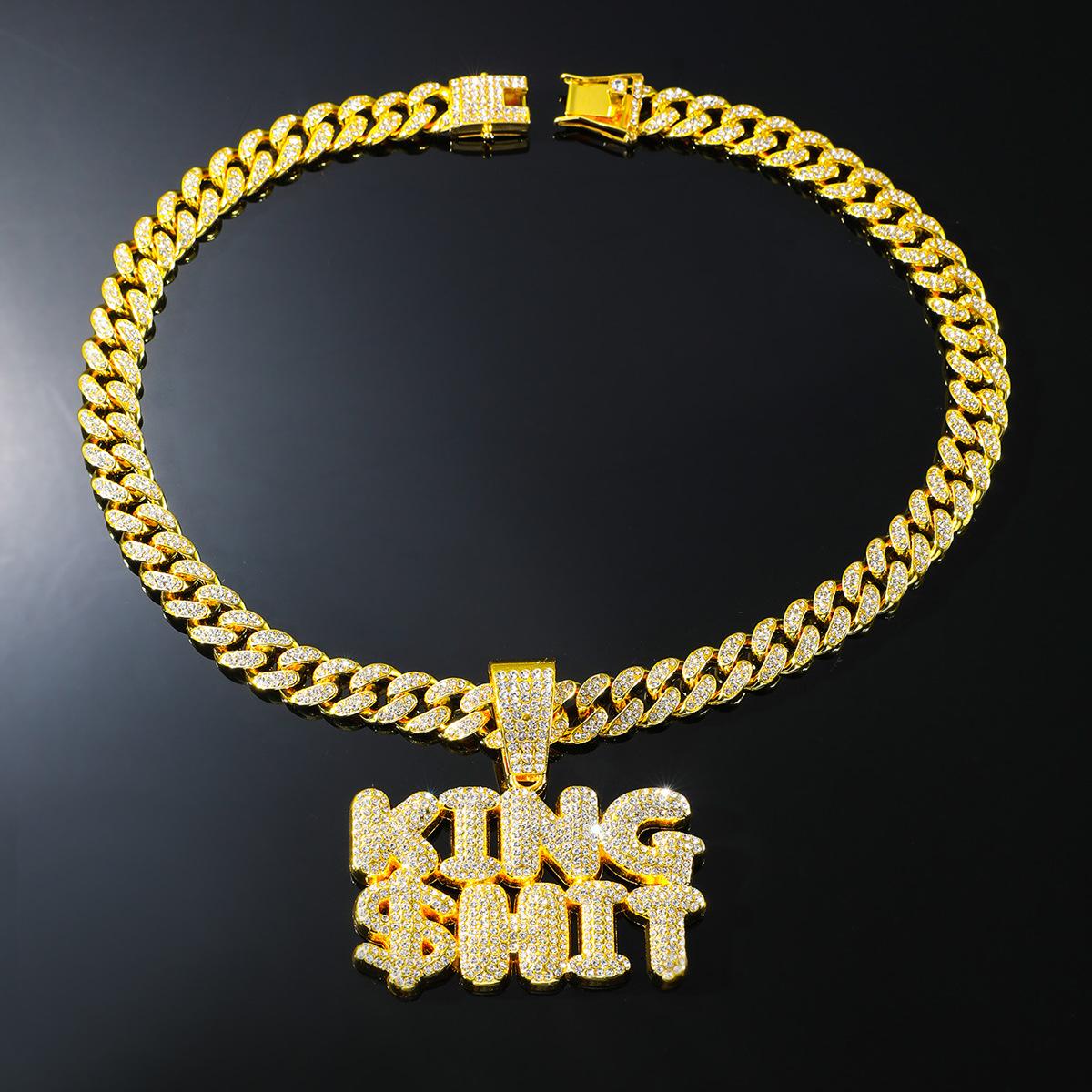 Collar con colgante de letra de diamante con diseño de rey exagerado de hip-hop europeo y americano para hombre, accesorios de cadena cubana dominantes y geniales, joyería