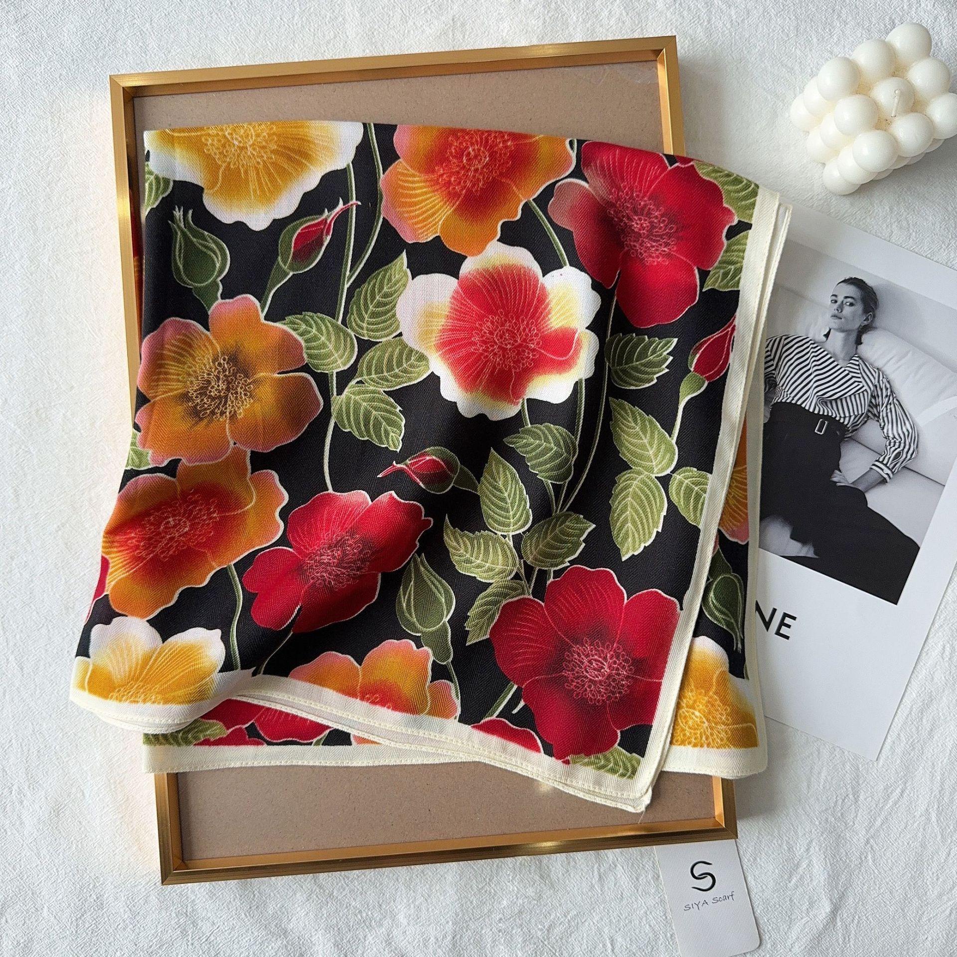 Bufanda de algodón con diseño de espiga, cuadrada, elegante y decorativa, con estampado de espiga, para proteger el cuello, disponible en stock.