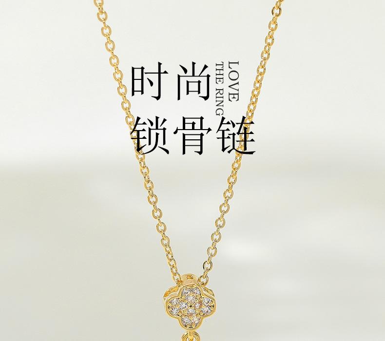 Collar Popular de Trébol de Cuatro Hojas Ins Moda Trendy Colgante Elegante Diseño Nicho Cadena Clavícula Cadena de Suéter de Verano para Mujer