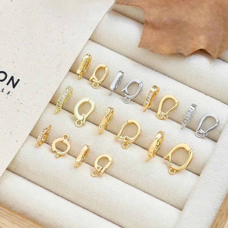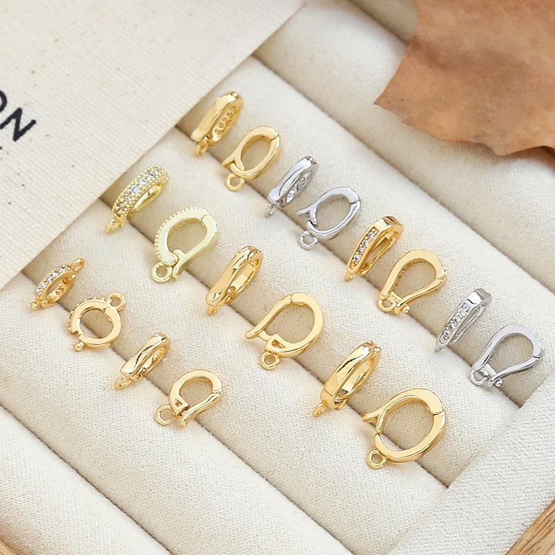 Hebilla universal de perla con circonita de color dorado revestida de cobre, para pulseras, collares y accesorios de joyería hechos a mano.