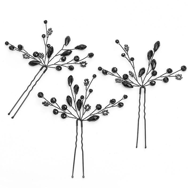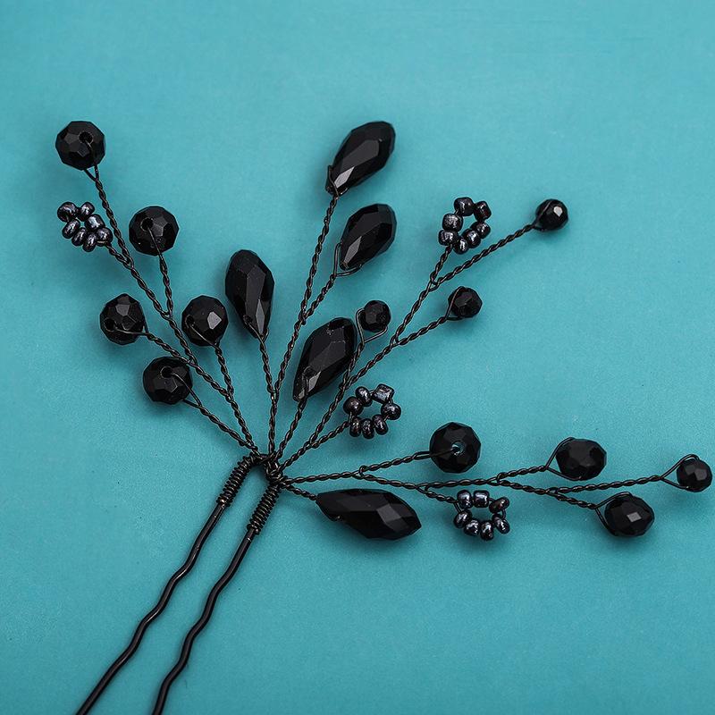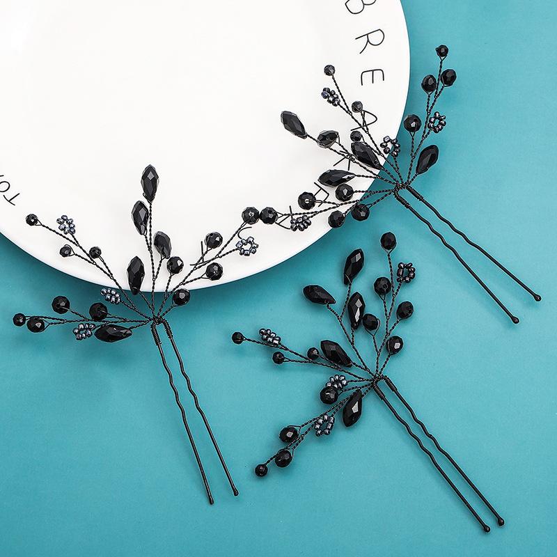 Tocado Nupcial, Horquilla de Cristal Negro Estilo Antiguo Tejida a Mano, Horquilla en Forma de U a la Moda, Accesorios para el Cabello de la Dinastía Han al por Mayor