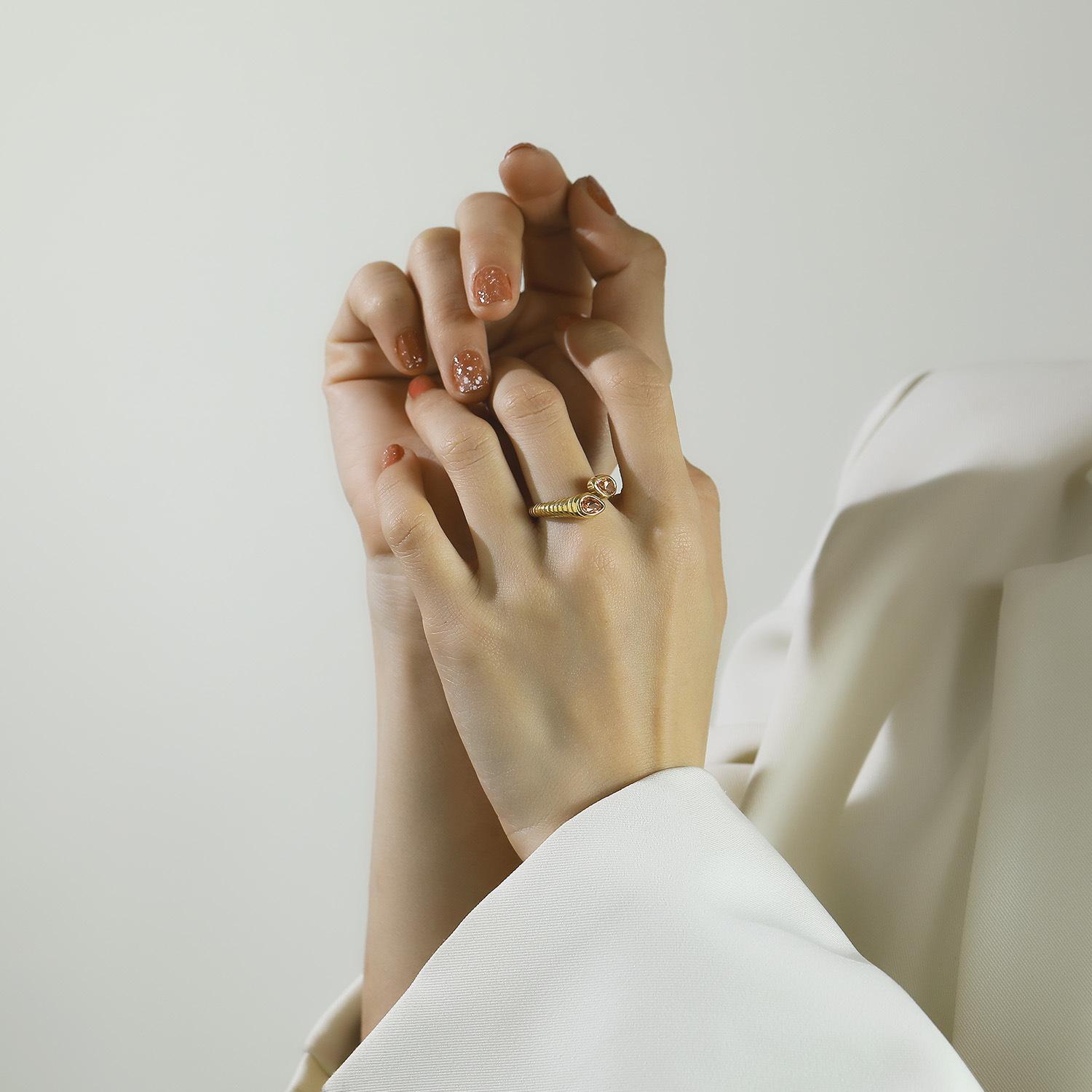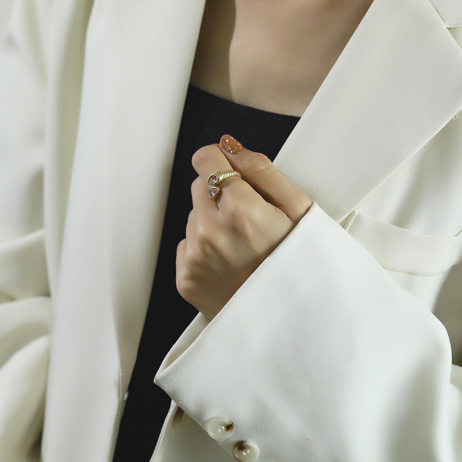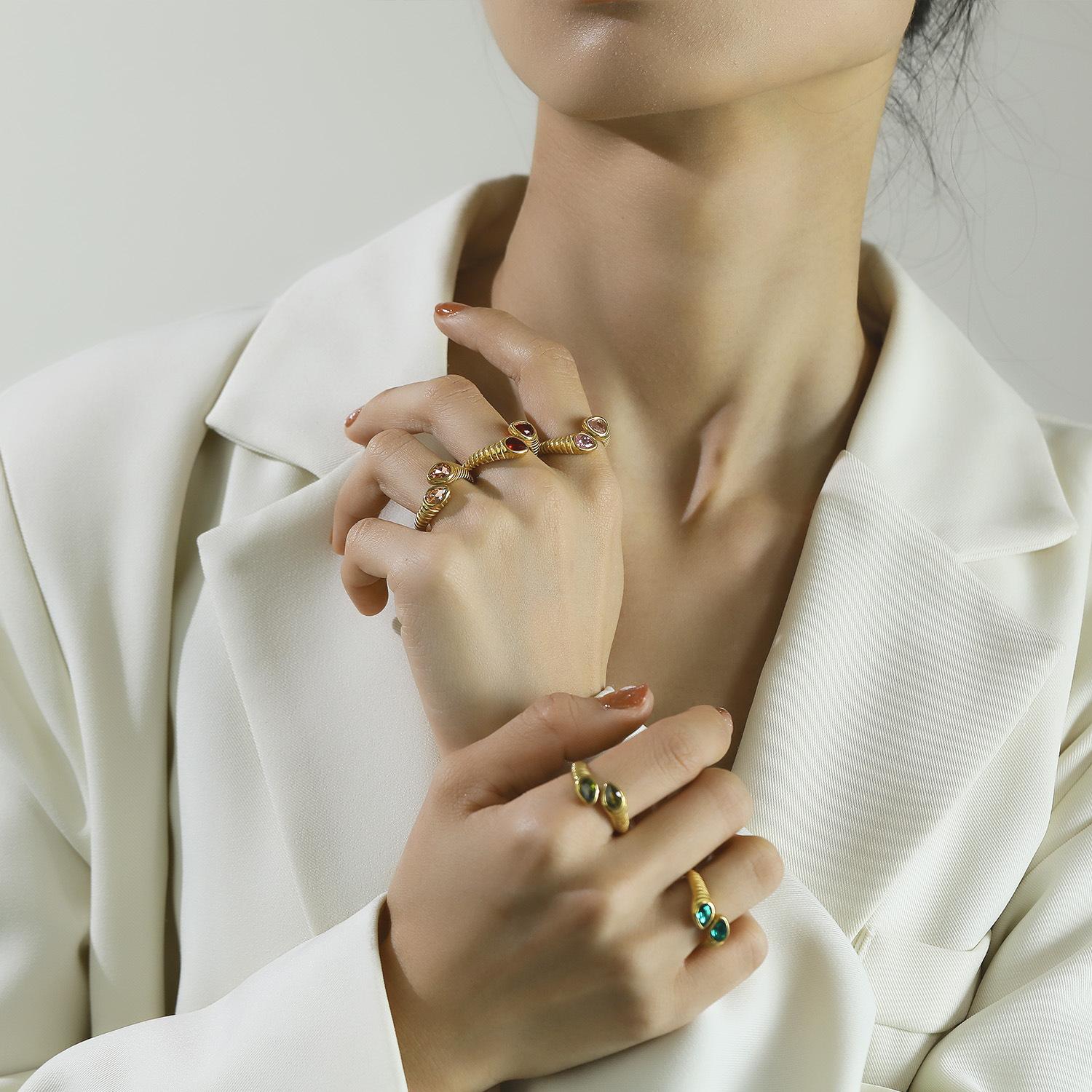 Anillo Europeo y Americano Ins Nicho Retro Roscado Zircón Anillo para Mujer de Alta Gama Elegante Simple Oro de 18K