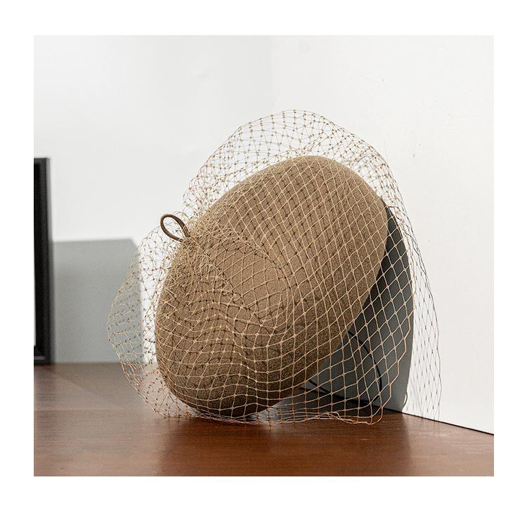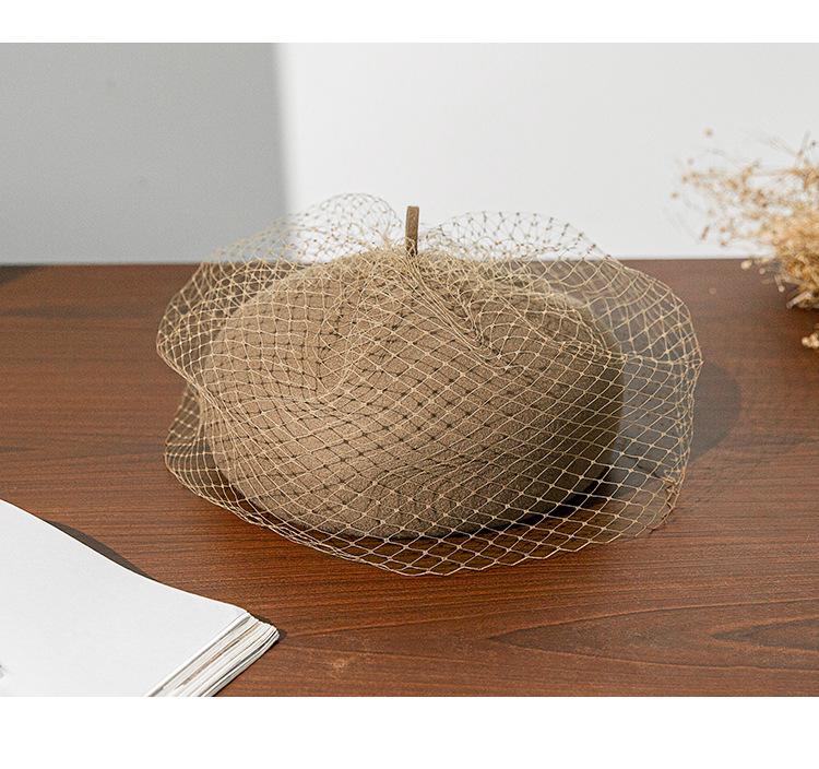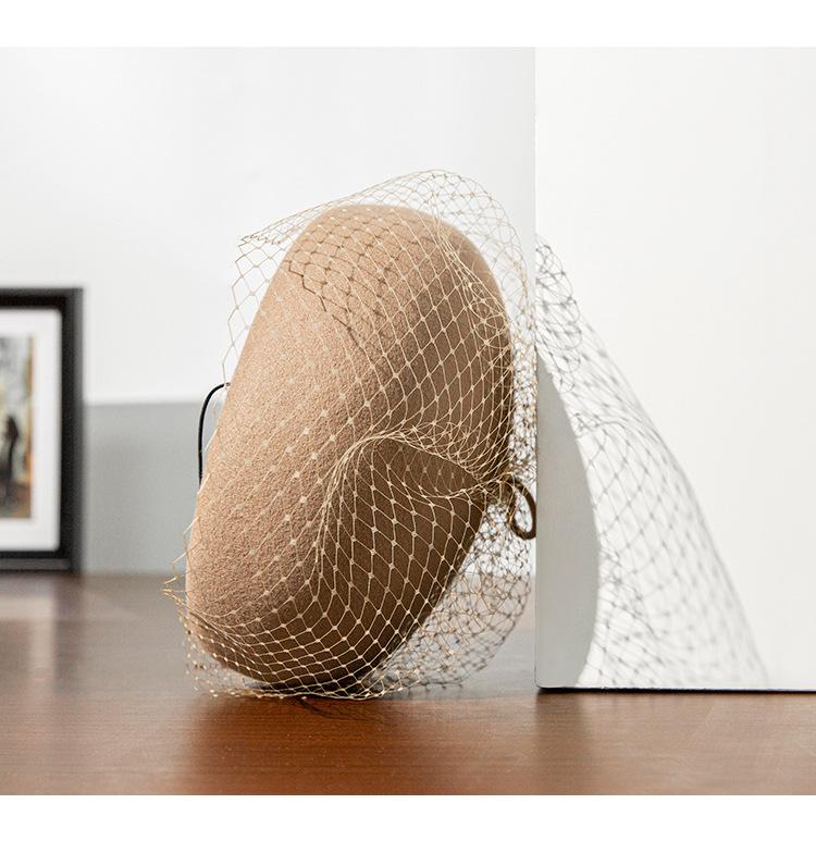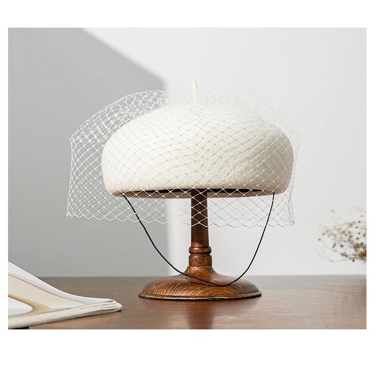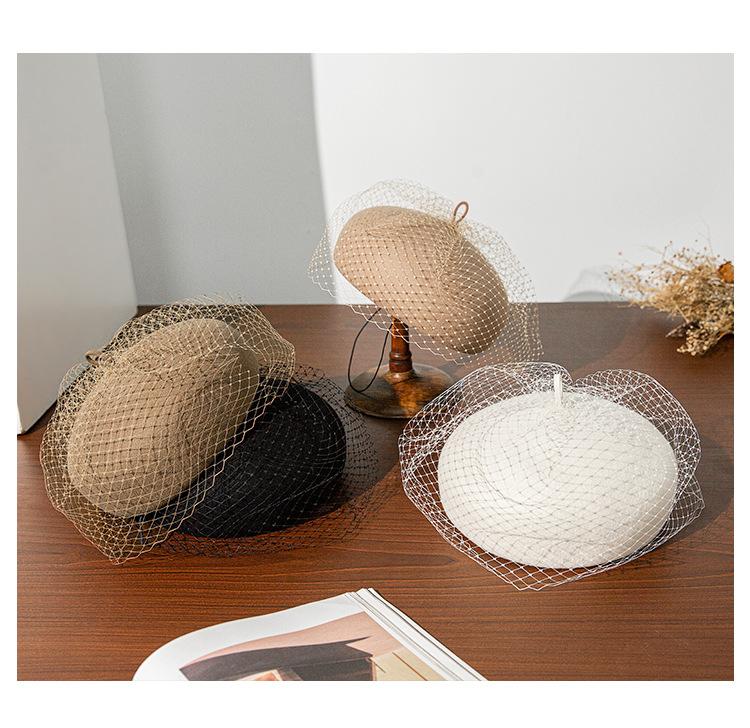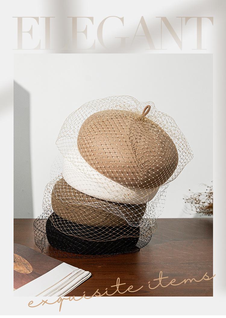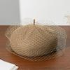 Boina Nueva 2025 para Mujer Otoño e Invierno Cálida Color Sólido Elegante Más Fácil de Combinar Sombrero Decoración de Malla