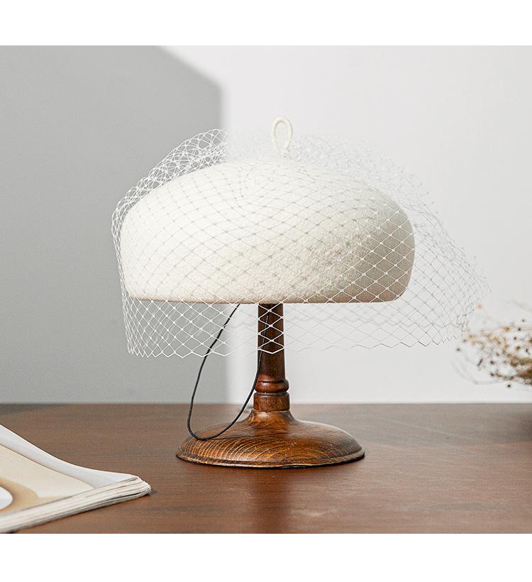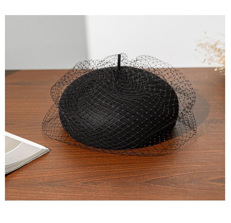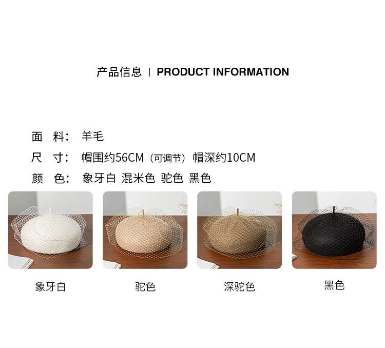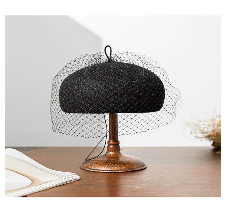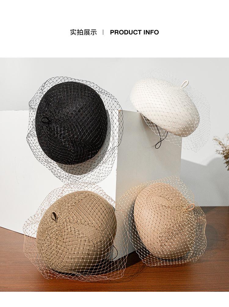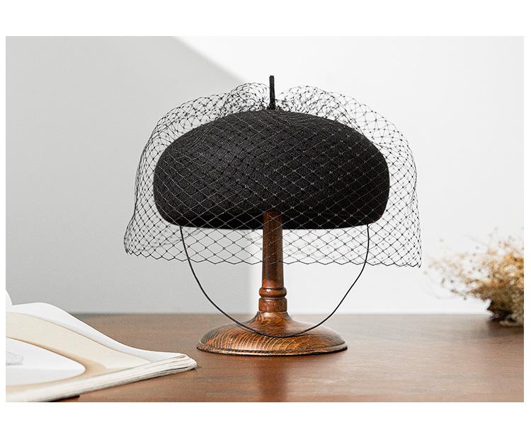 Boina Nueva 2025 para Mujer Otoño e Invierno Cálida Color Sólido Elegante Más Fácil de Combinar Sombrero Decoración de Malla