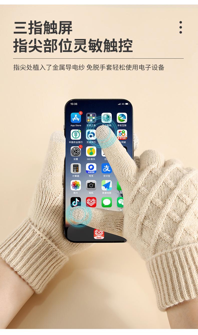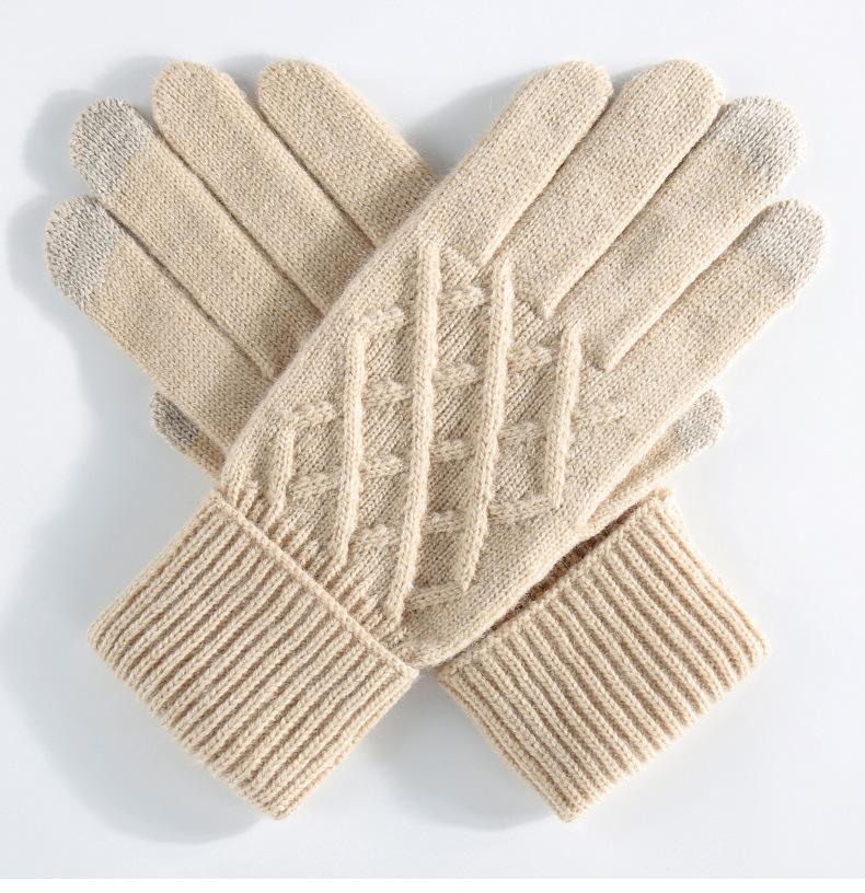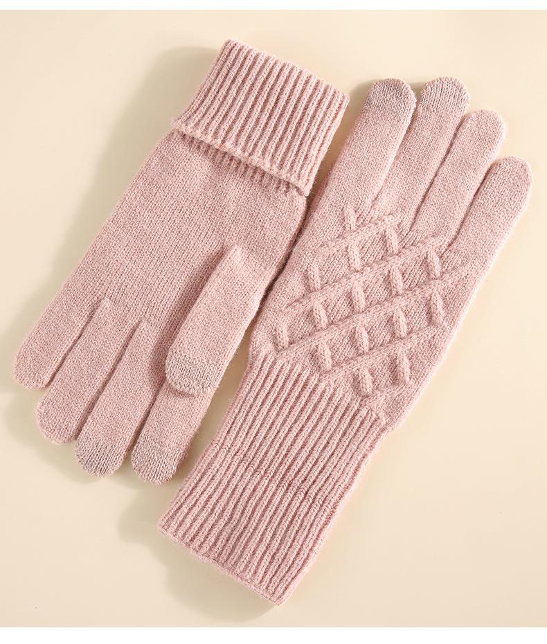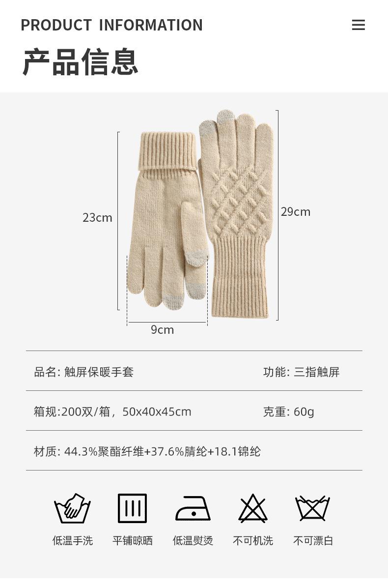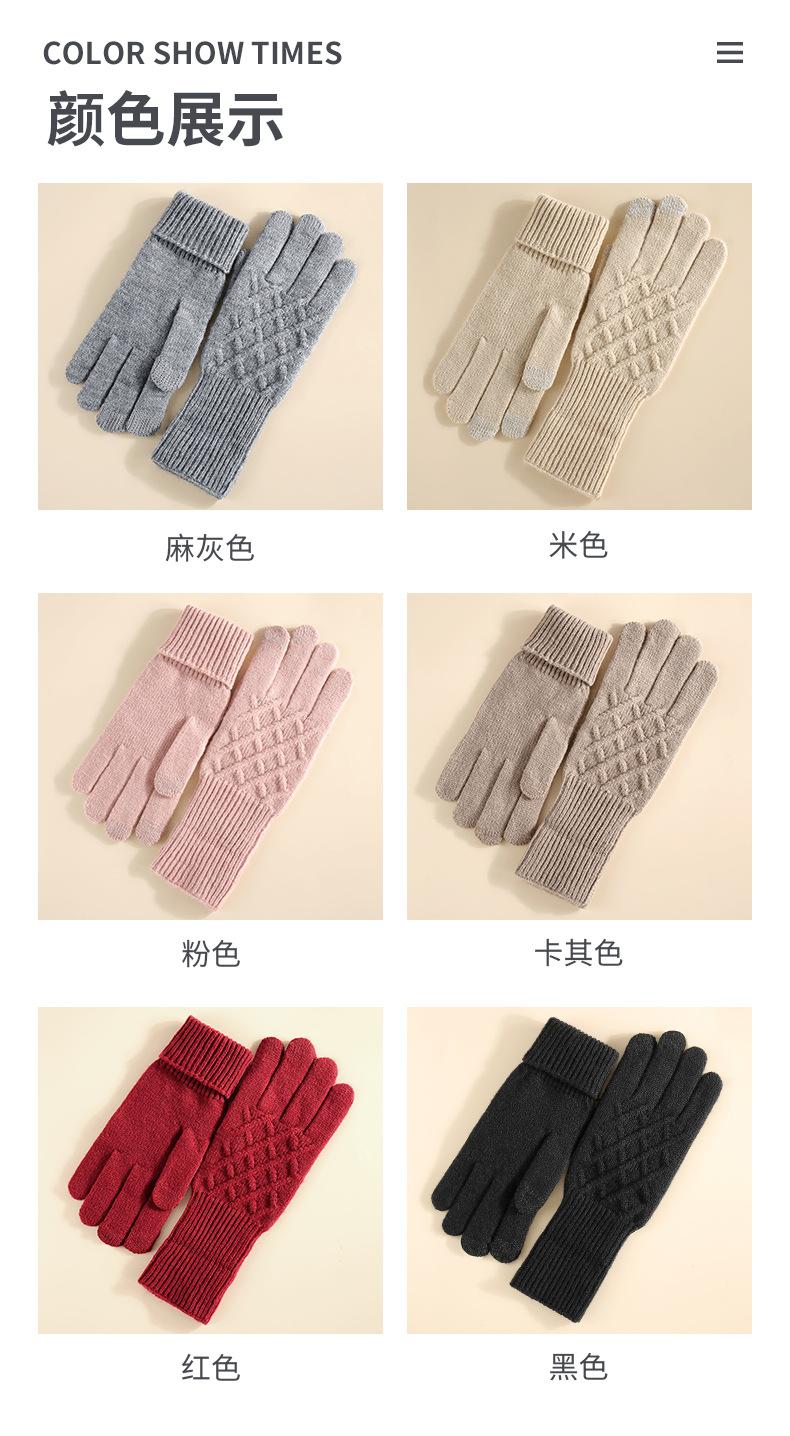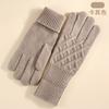 Guantes de Punto Transfronterizos Nuevos 2024, Guantes Cálidos de Color Sólido para Mujer para Otoño e Invierno de Lana para Exteriores con Pantalla Táctil de Tres Dedos para Adulto a Prueba de Frío
