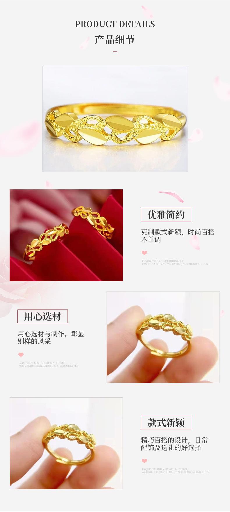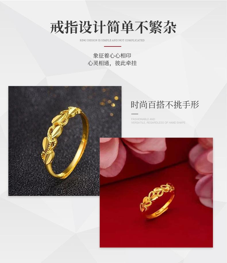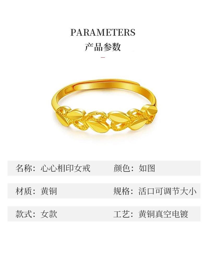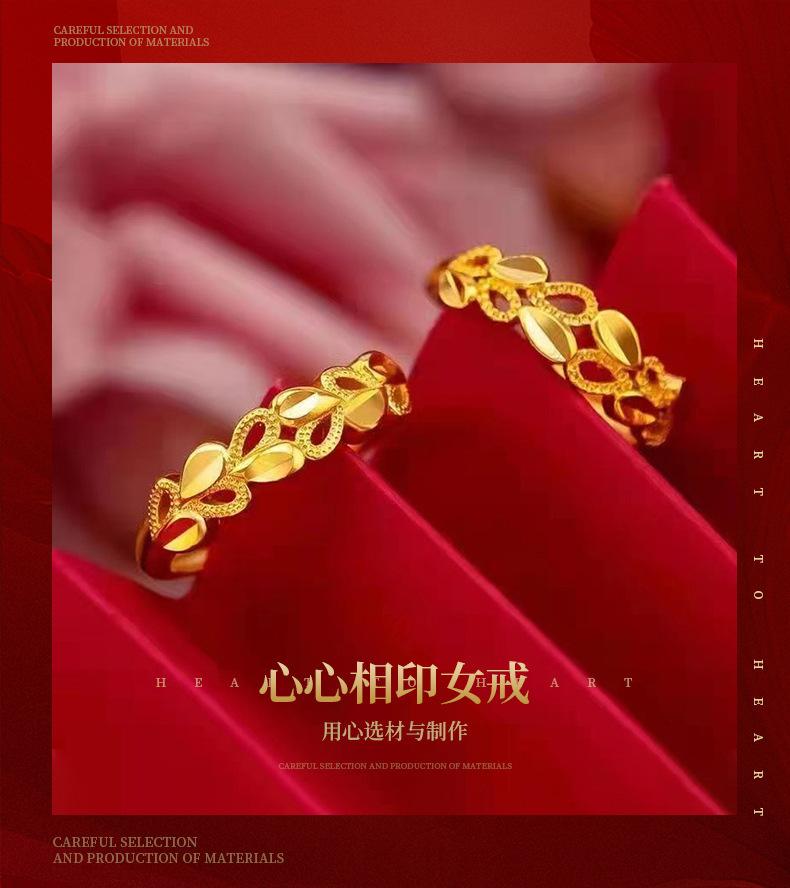 Anillo de corazón a corazón de aleación de cobre con espiga de trigo para mujer, avanzado, oro arena de Vietnam, anillo abierto de nicho, anillo dorado para el dedo índice