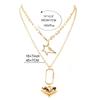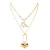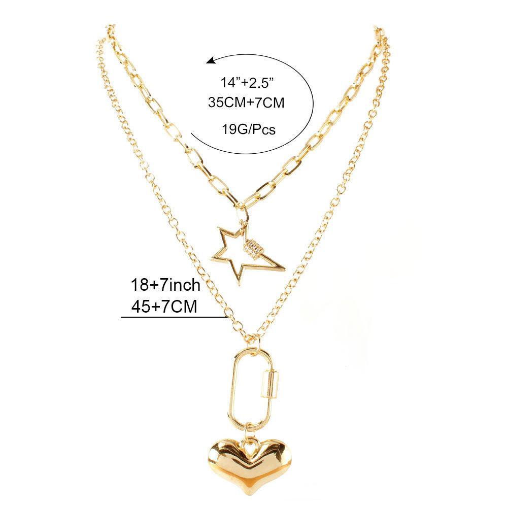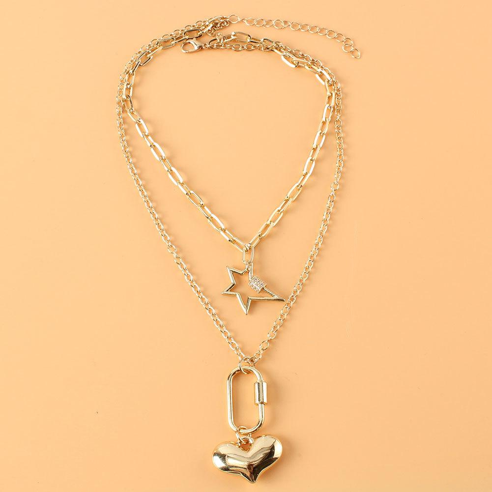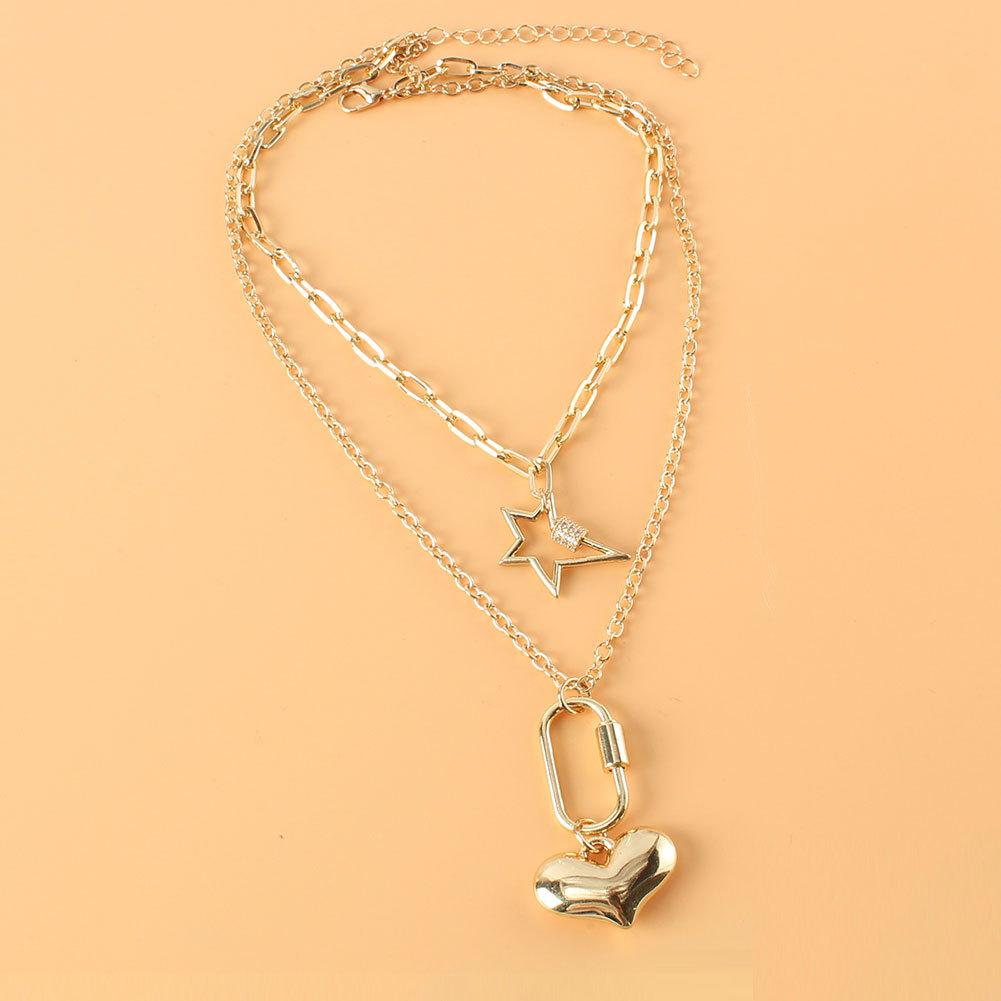 Collar multicapa de estilo frío europeo y americano, creativo, retro, simple, de aleación, con colgante en forma de corazón, joyería con mosquetón 17470