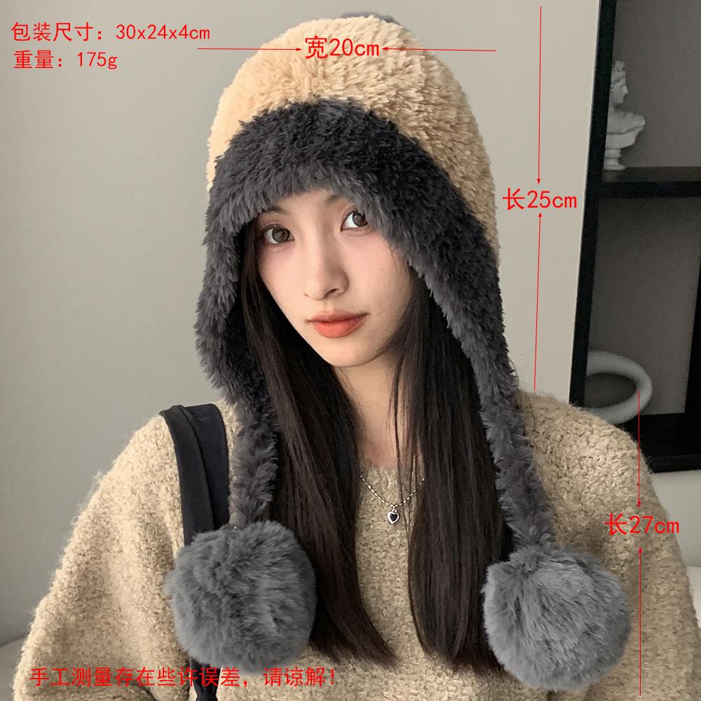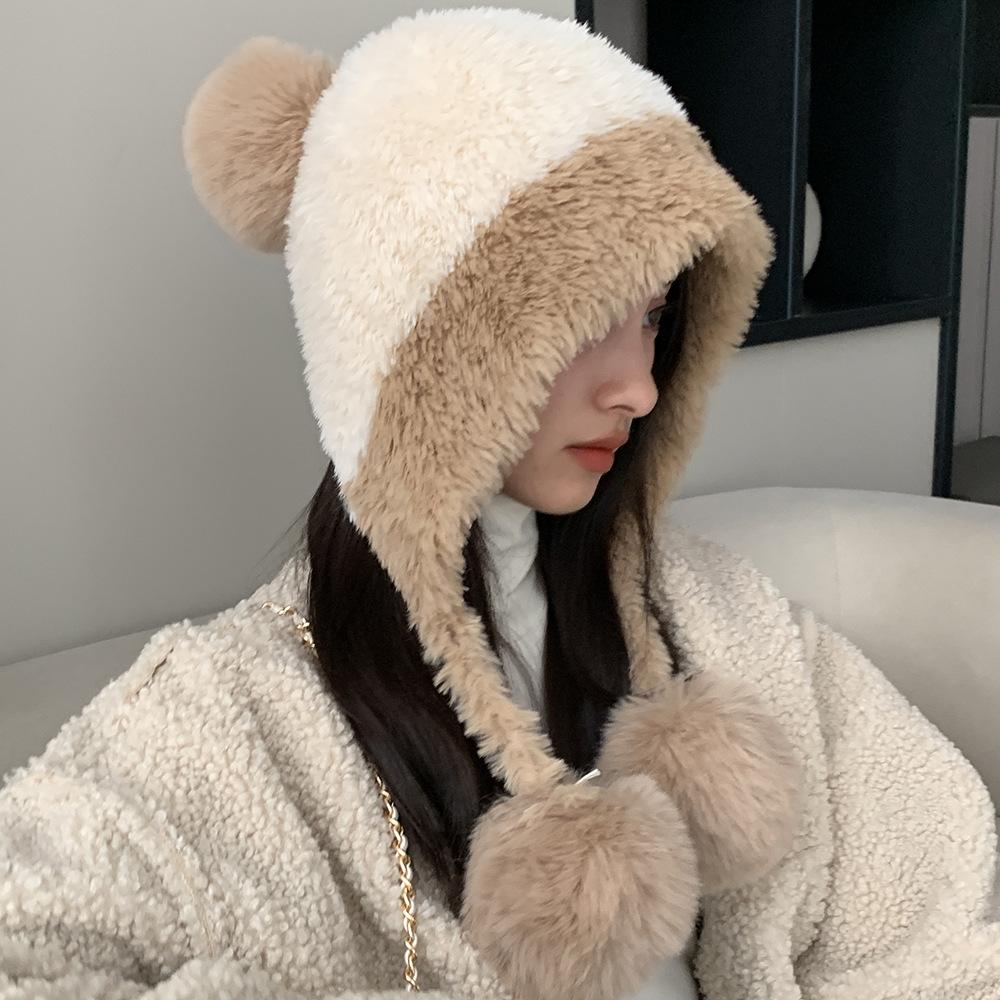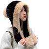 Gorro de invierno a prueba de frío, bonito gorro de peluche con orejeras y bola colgante, gorro de montar a prueba de frío y viento, gorro de cabeza grande para niños