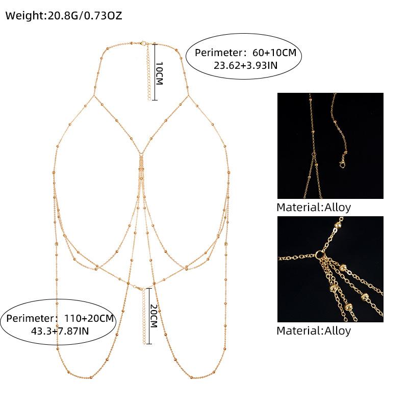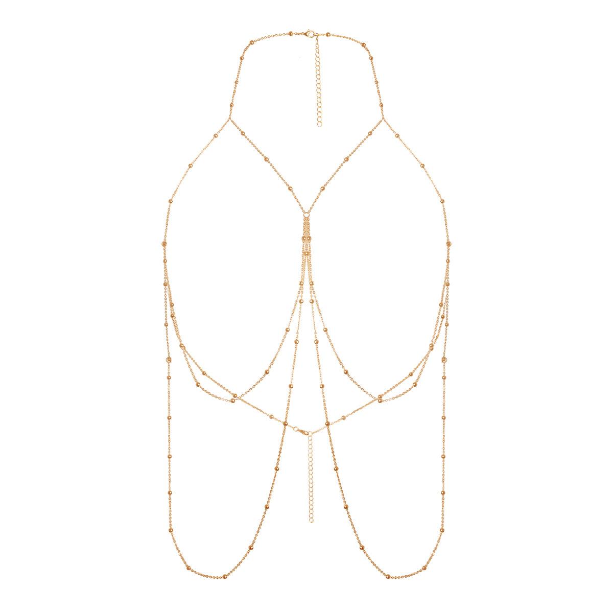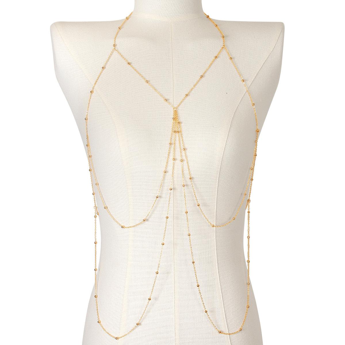Cadena para el cuerpo de bikini, joyería transfronteriza europea y americana, joyería de playa, cadena para el cuerpo con borlas multicapa sexy, cadena para el pecho para mujer