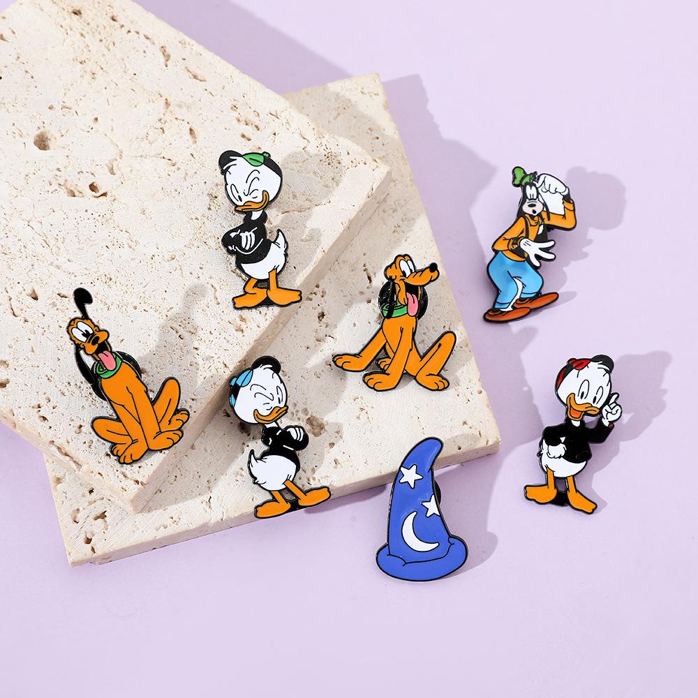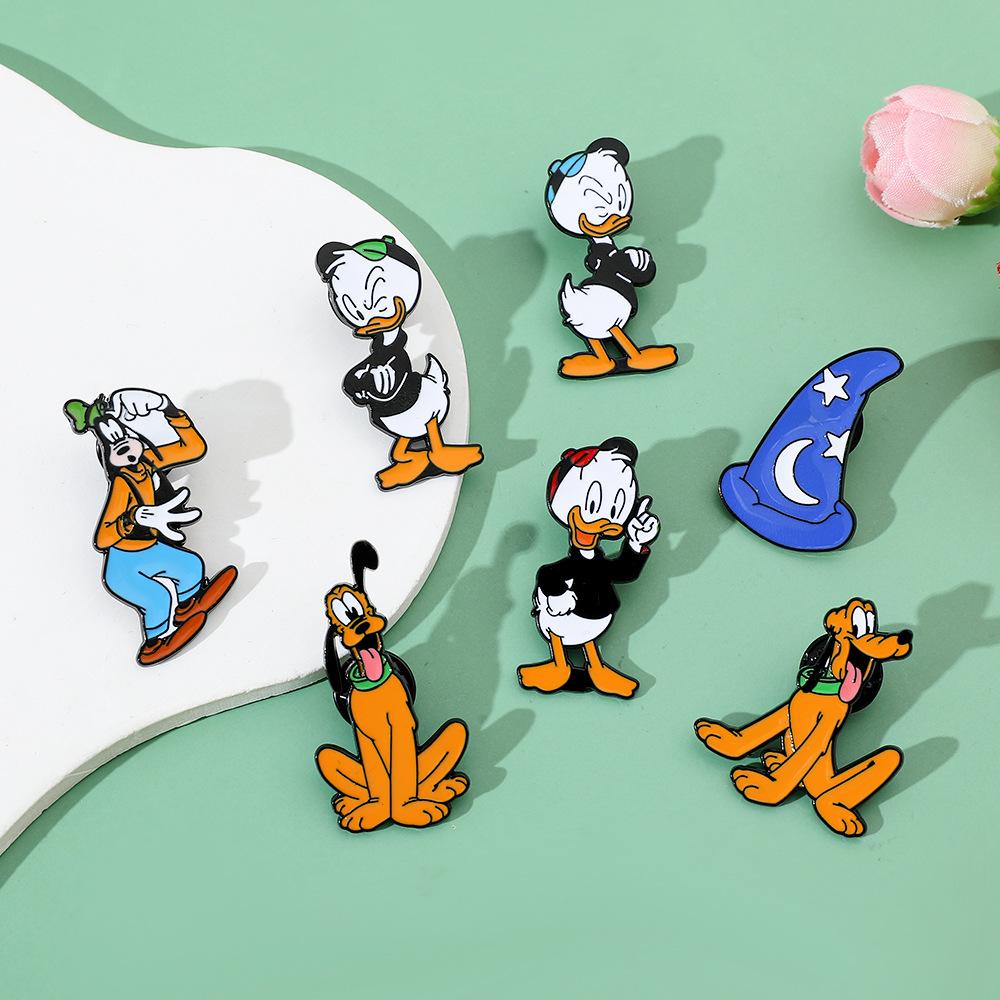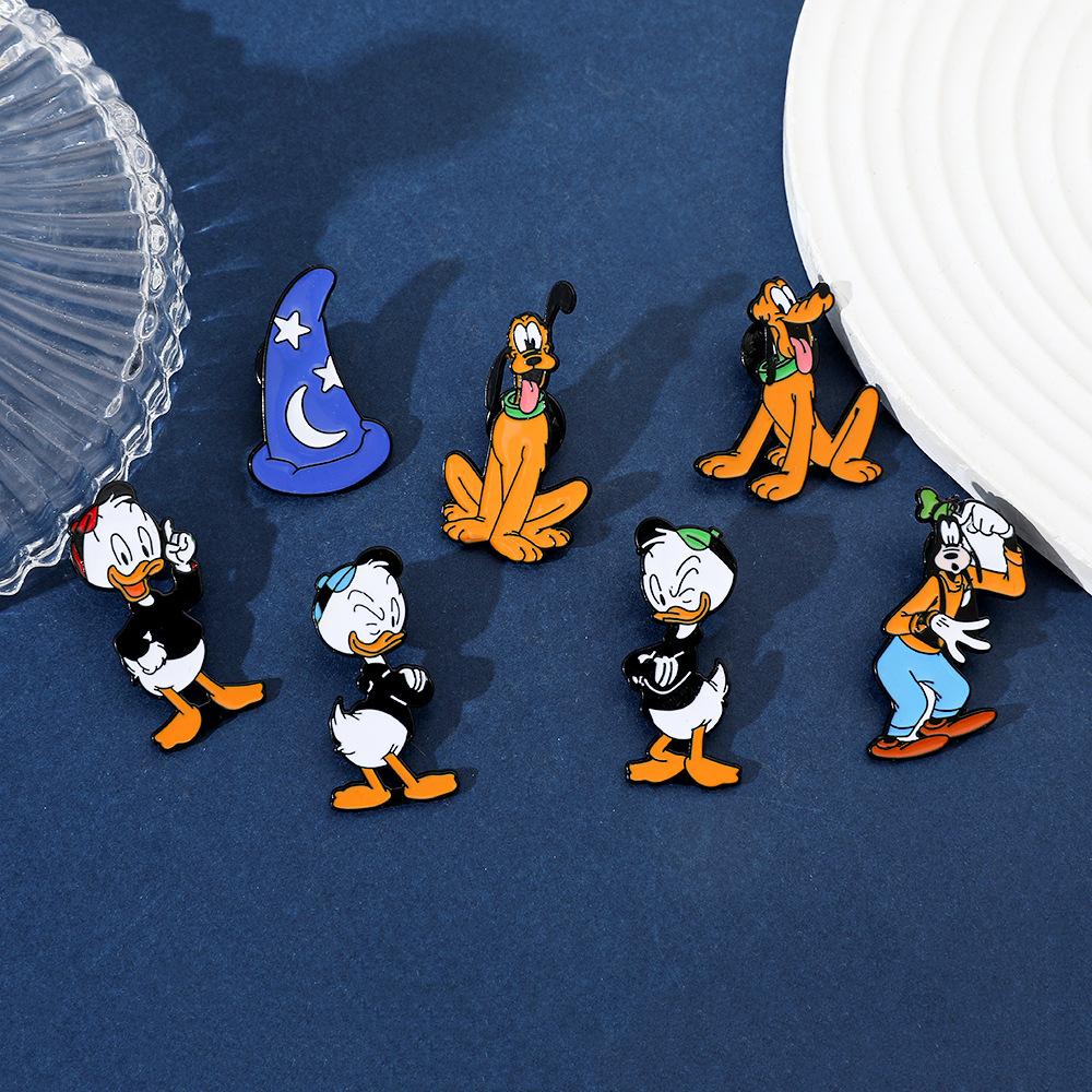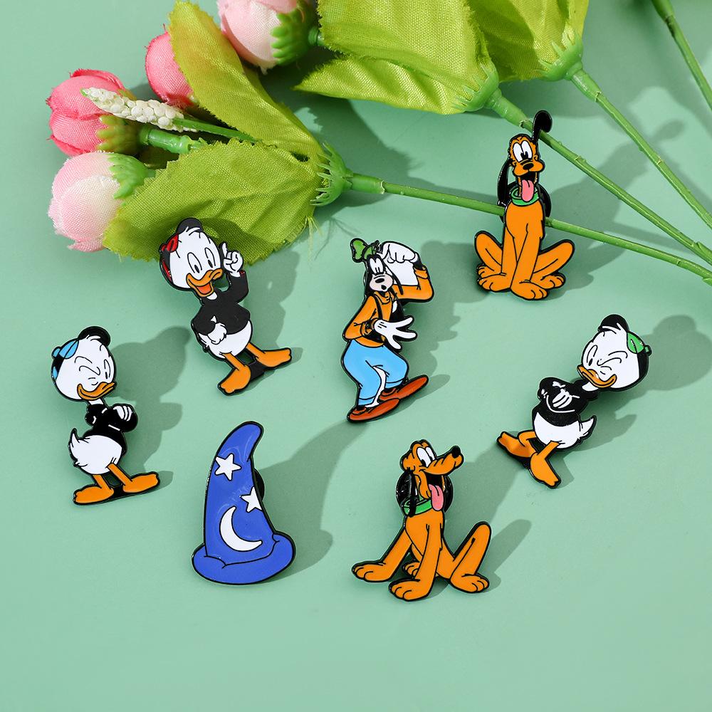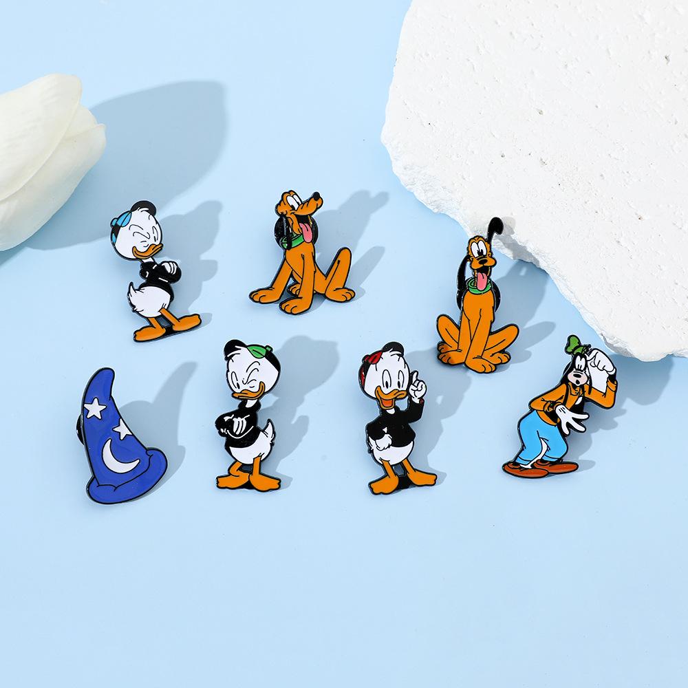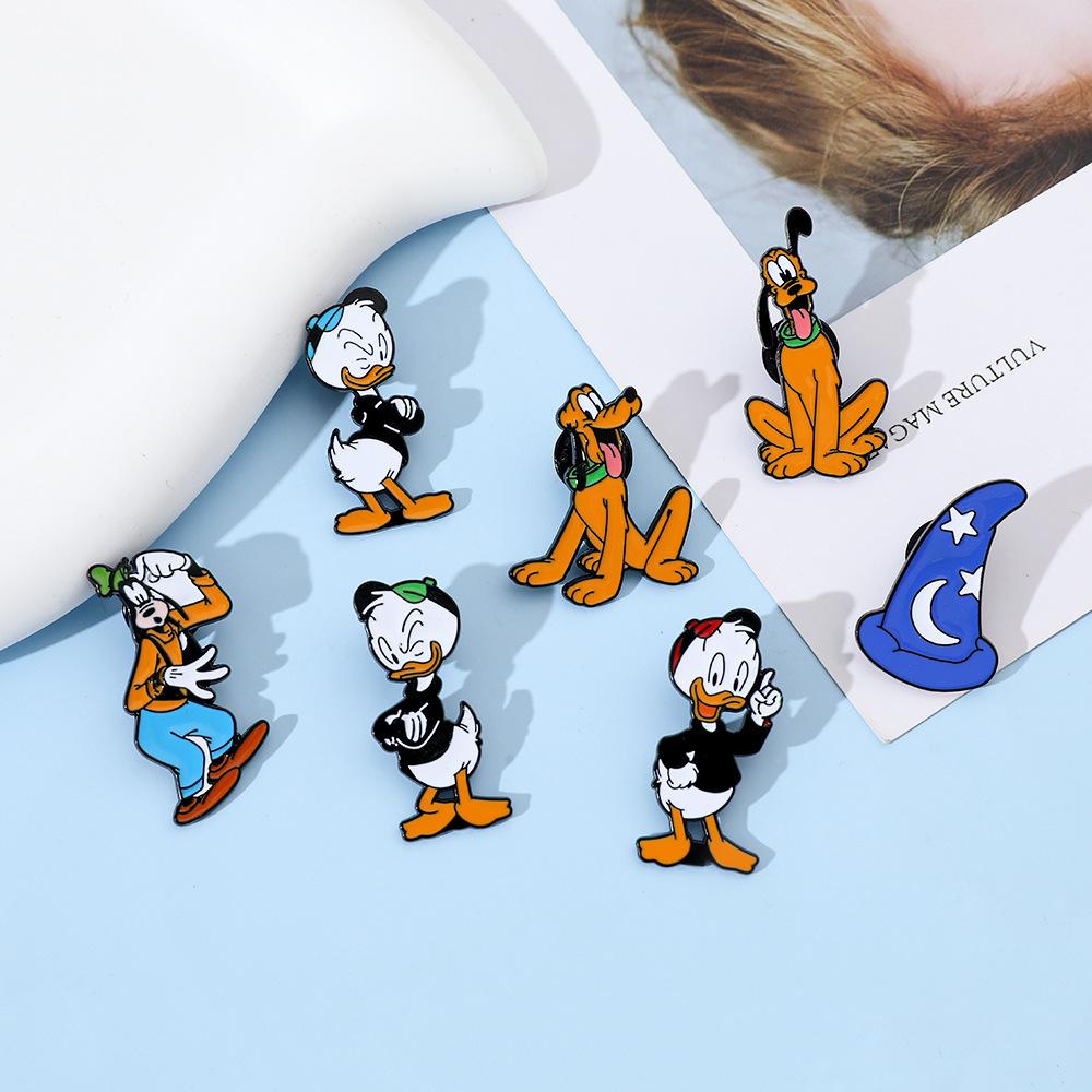 Broche de aleación con forma de gota de aceite y diseño de perro tonto con insignia de metal de pato Donald, personaje de dibujos animados europeo y americano