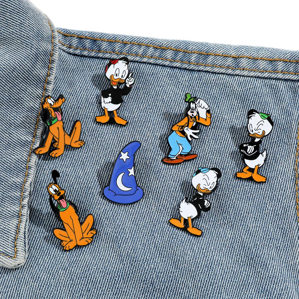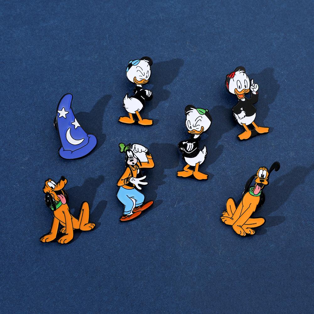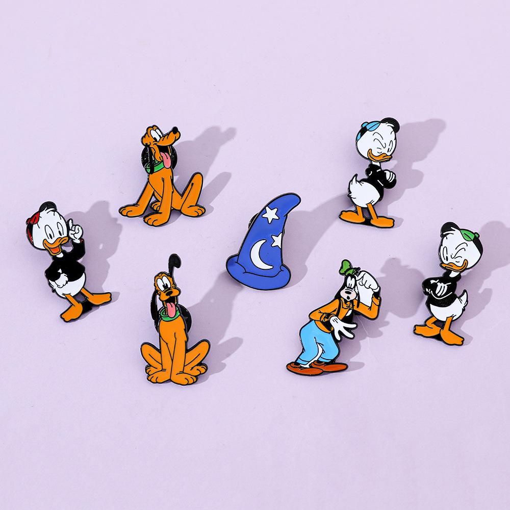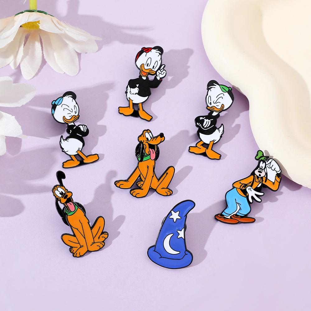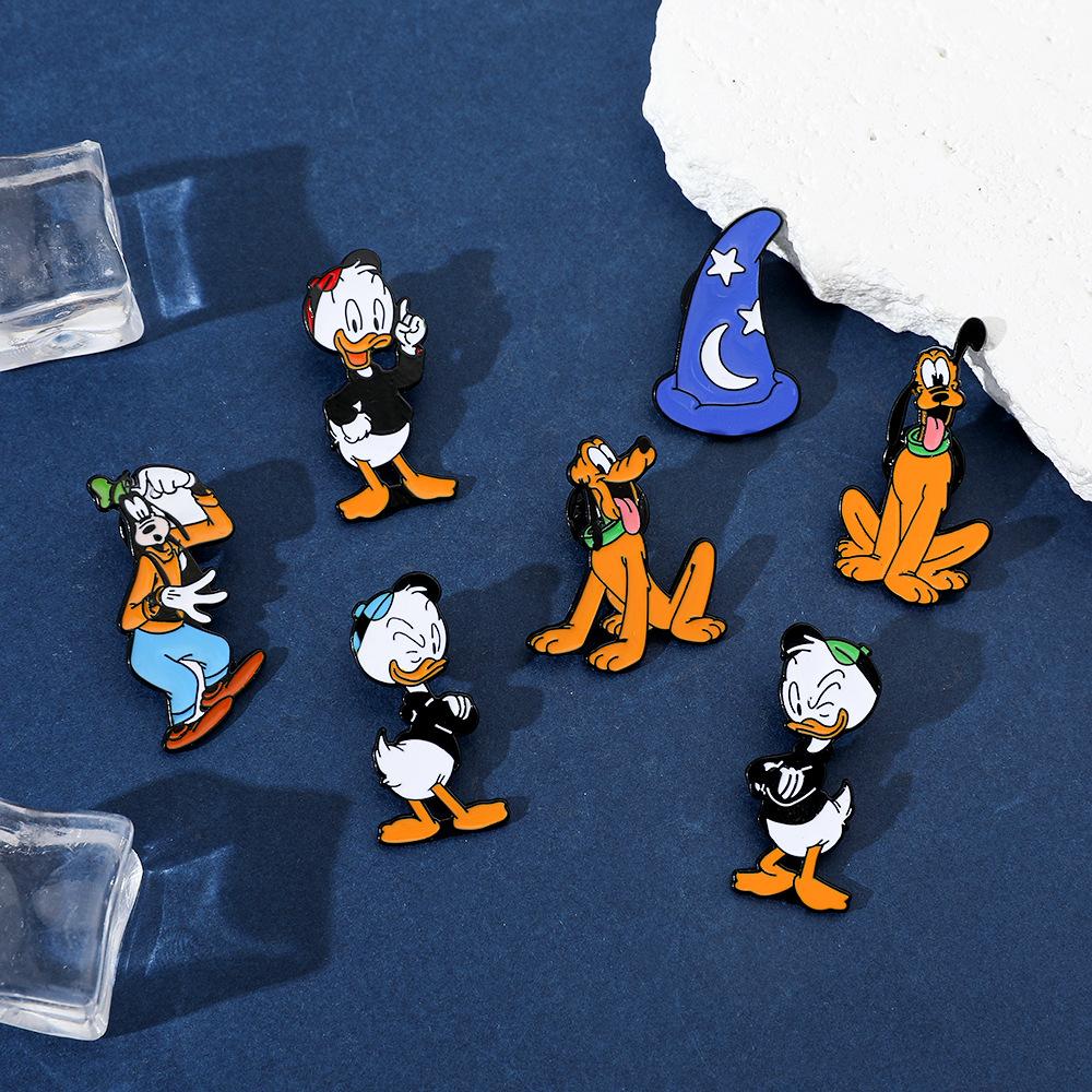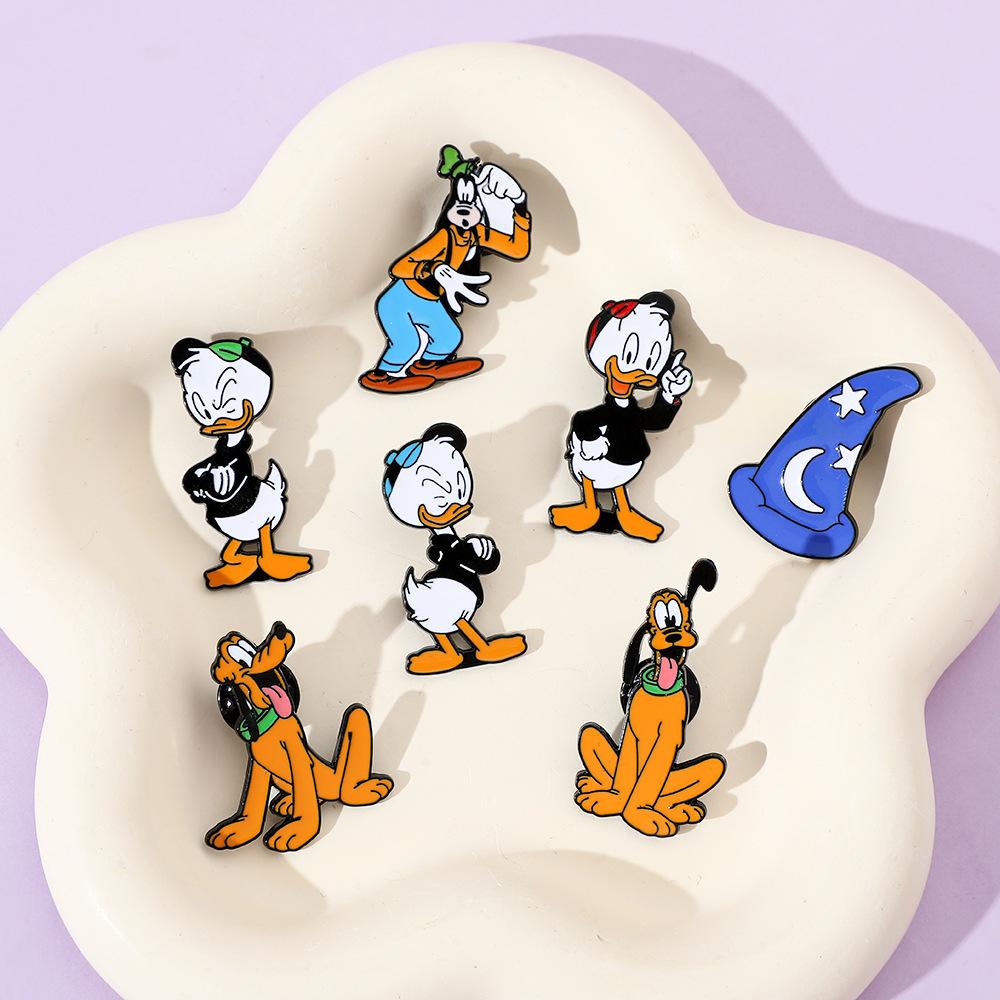 Broche de aleación con forma de gota de aceite y diseño de perro tonto con insignia de metal de pato Donald, personaje de dibujos animados europeo y americano