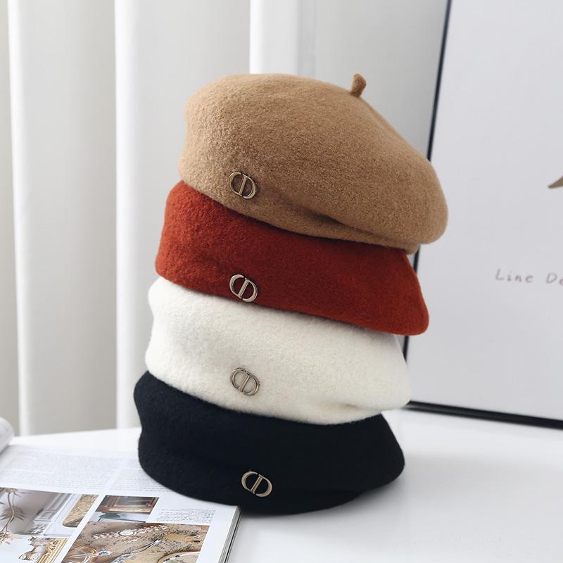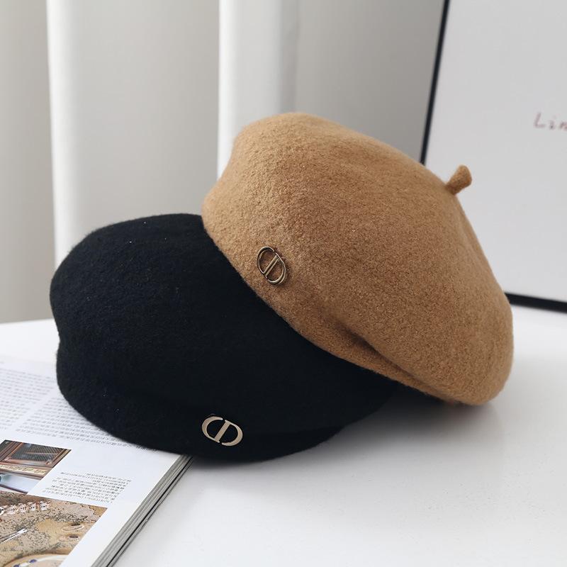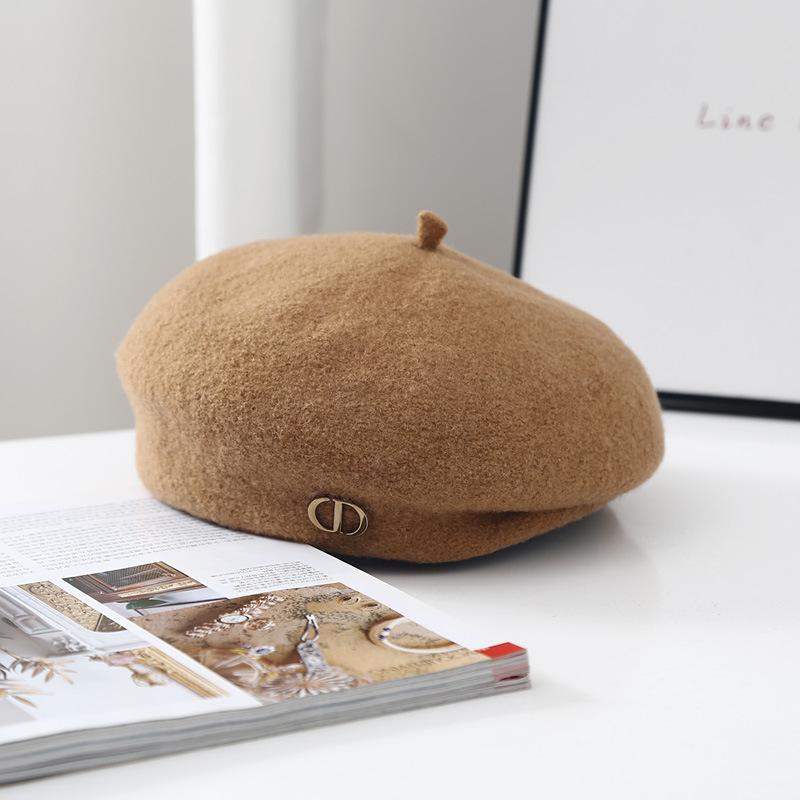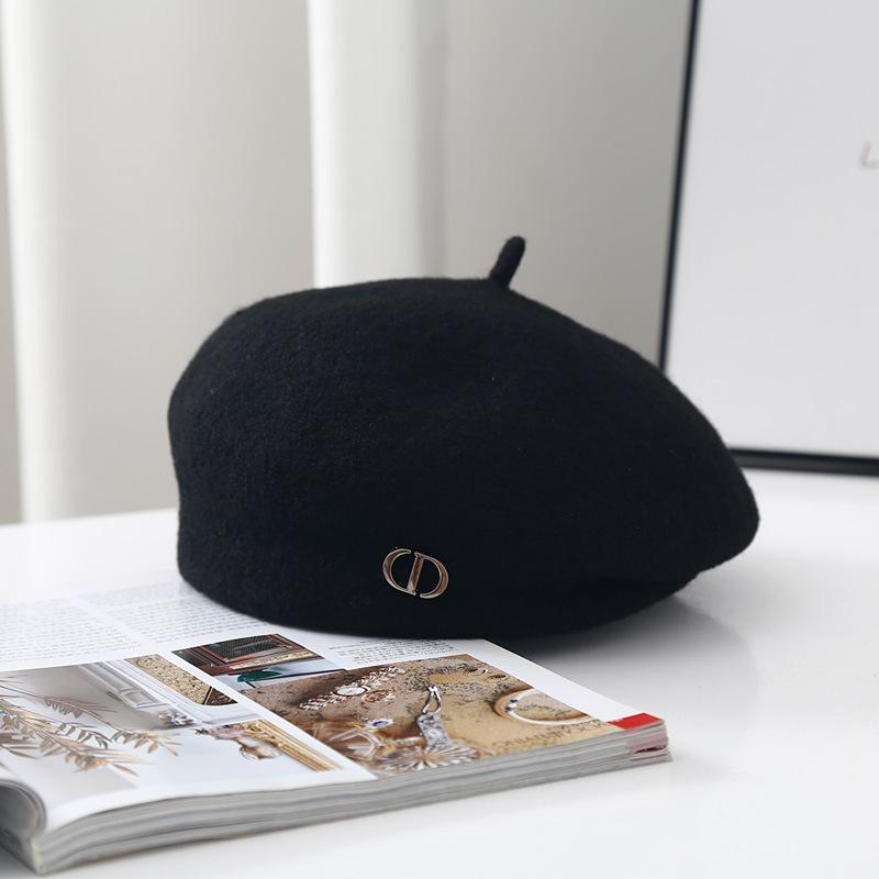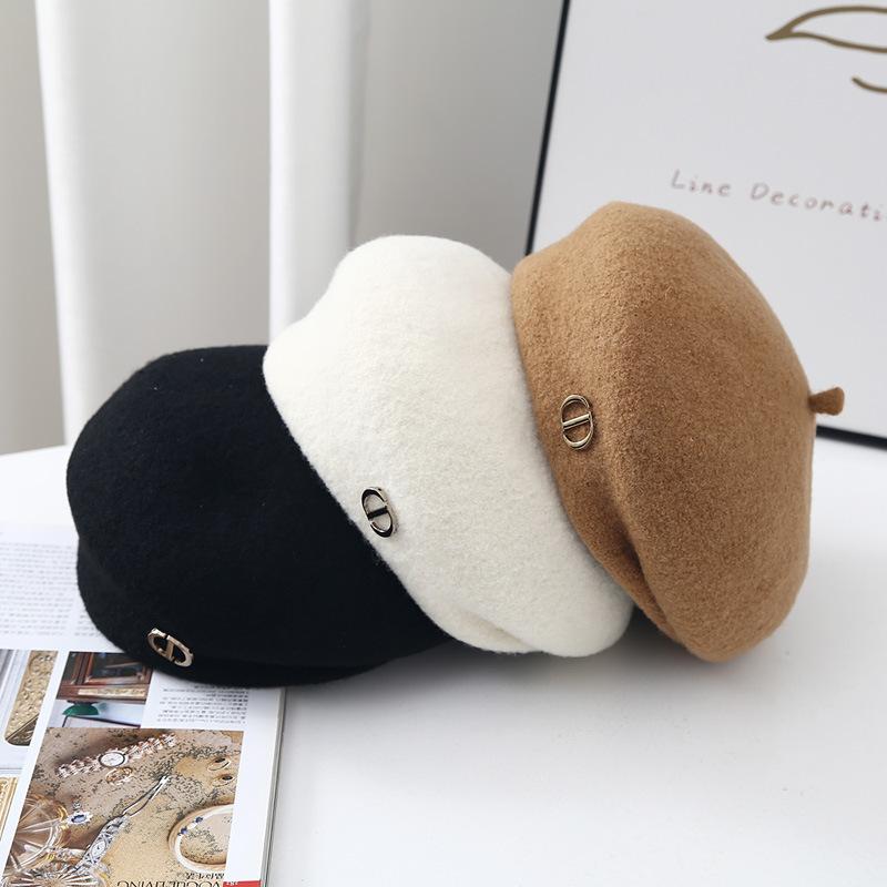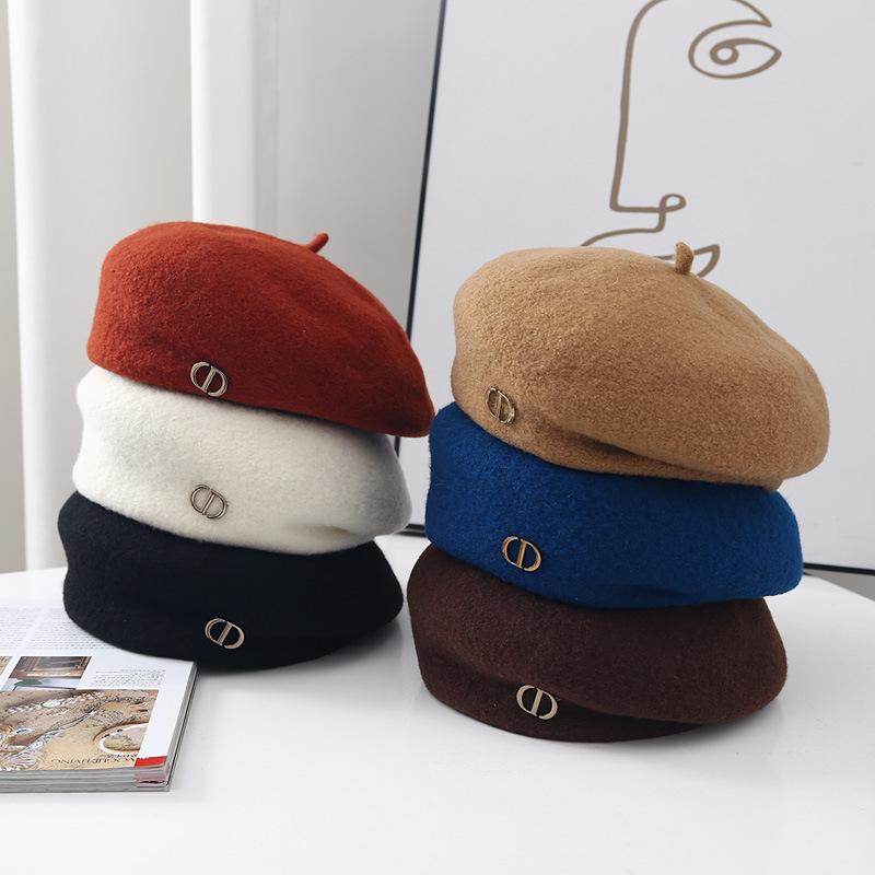 Boina de lana de moda de estilo coreano para mujer, otoño e invierno, versátil, con aspecto de cara pequeña, estilo retro, pintor artístico, sombrero de calabaza, boina