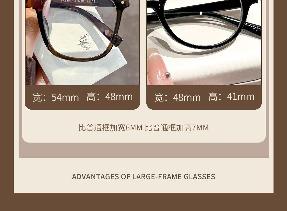 Armazón Especial para Mujer para Caras Grandes, Cara Pequeña 83017 Gafas de Montura Grande, Armazón TR Cuadrado y Redondo de Gama Alta, Miopía Danyang