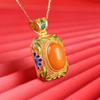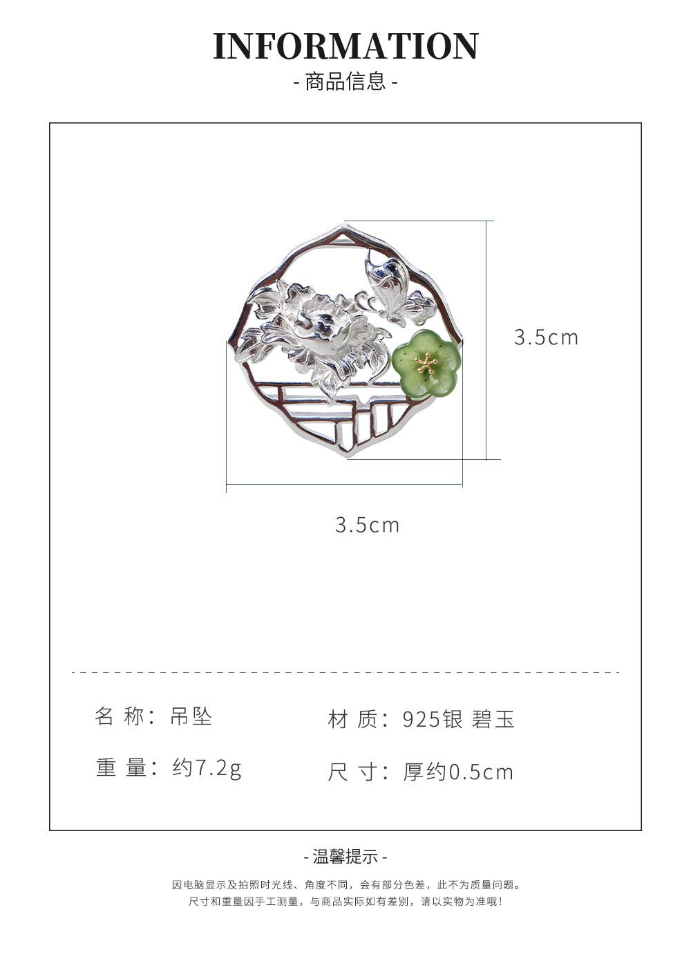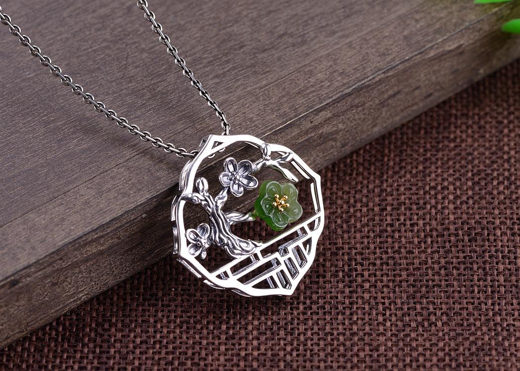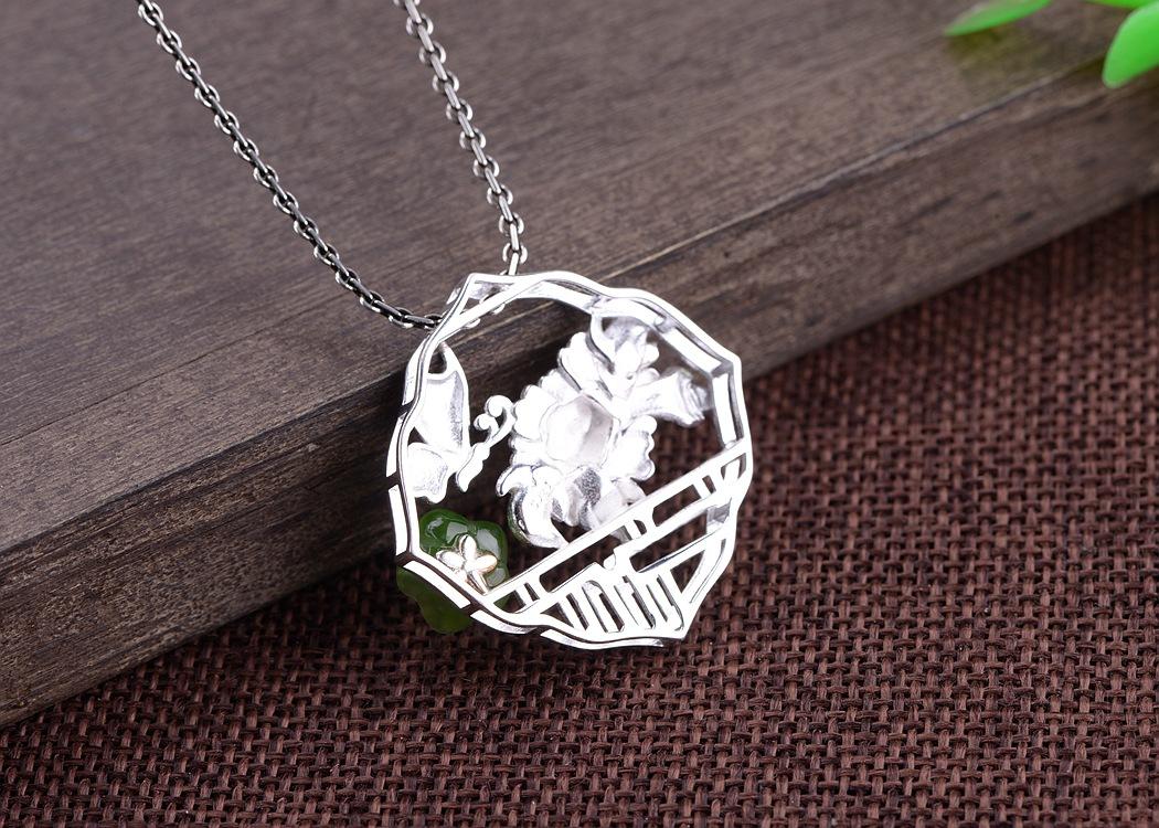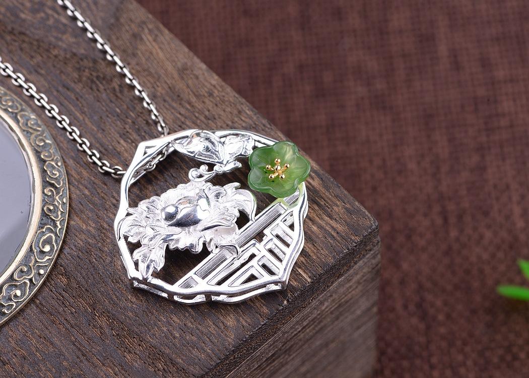 Colgante de plata S925 con diseño de peonía étnica y flor de jaspe de Golden Deer King para mujer