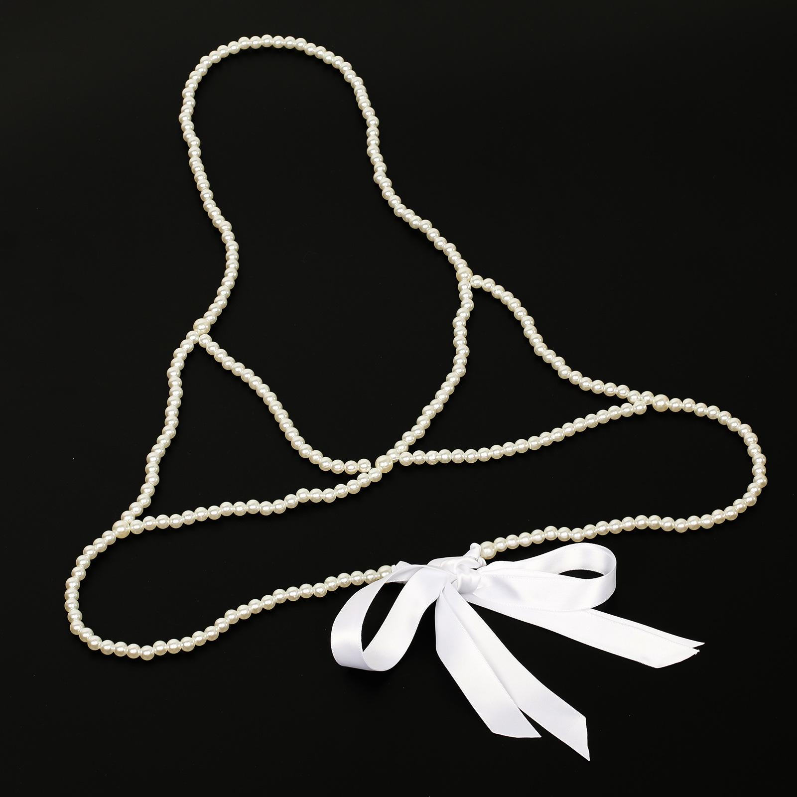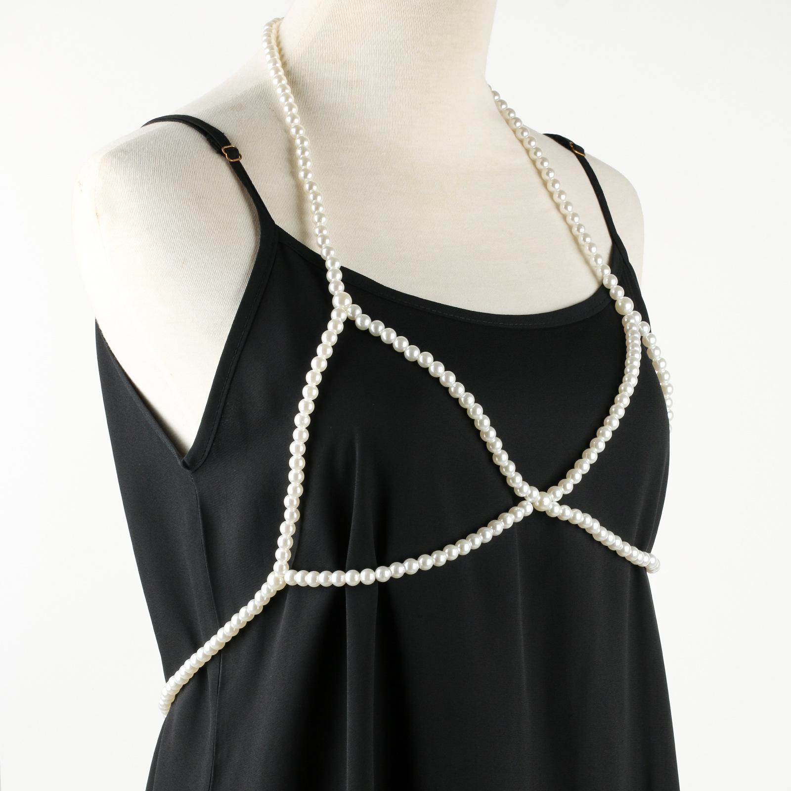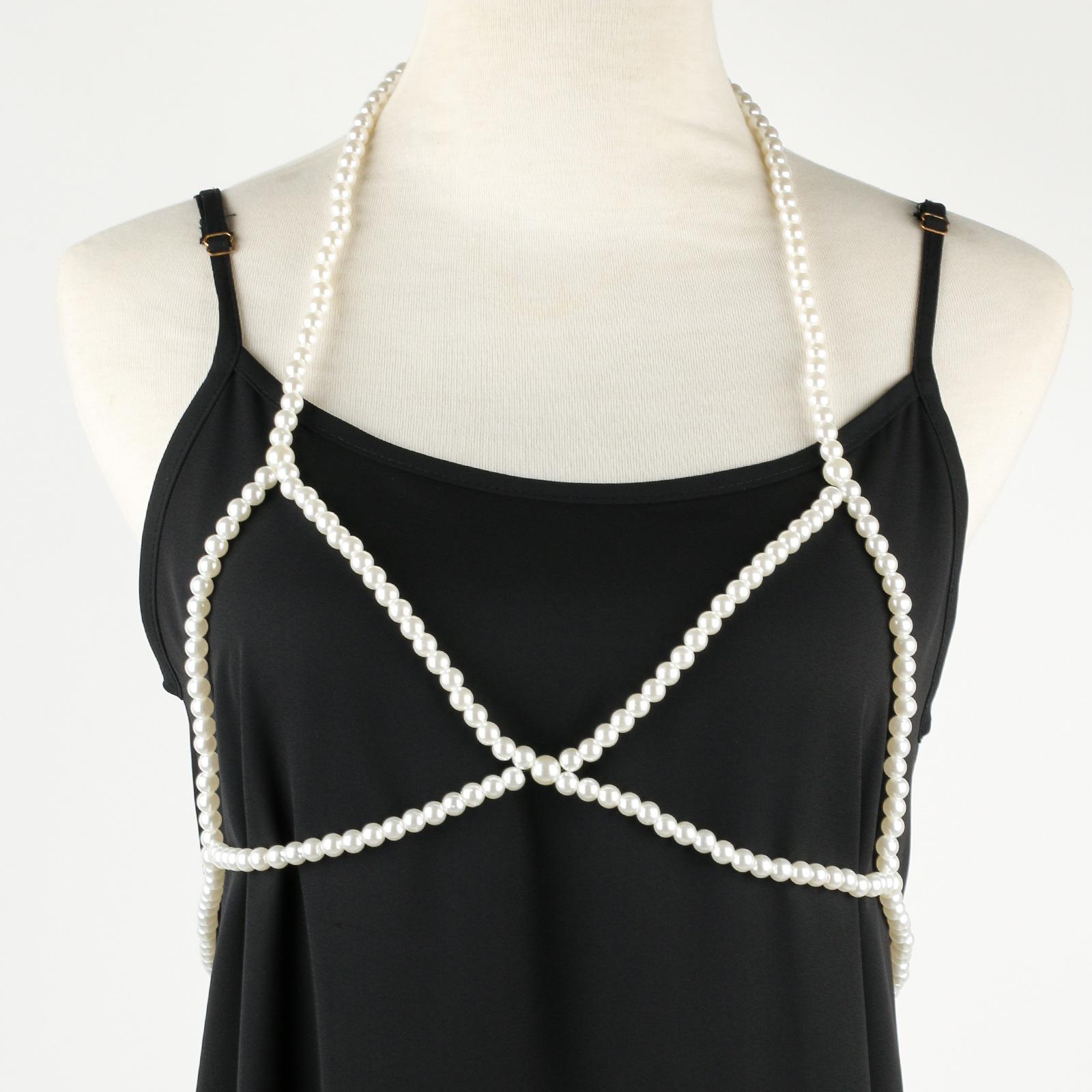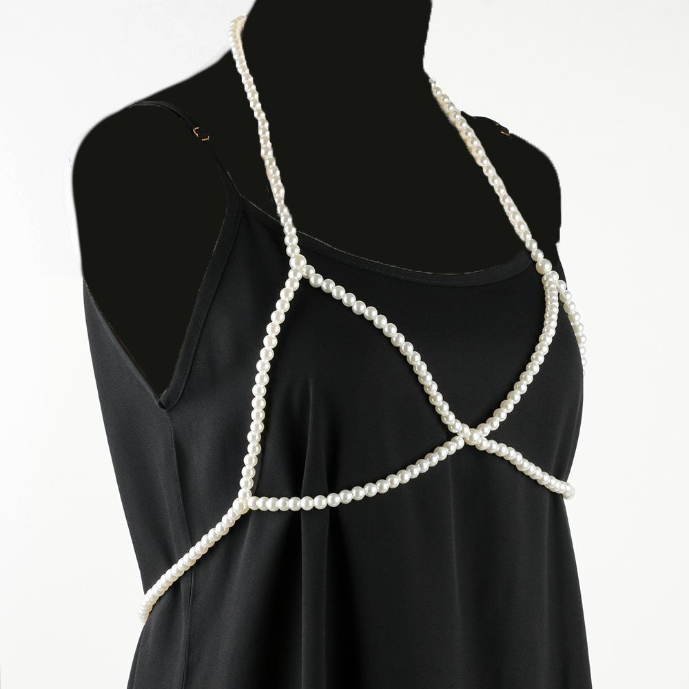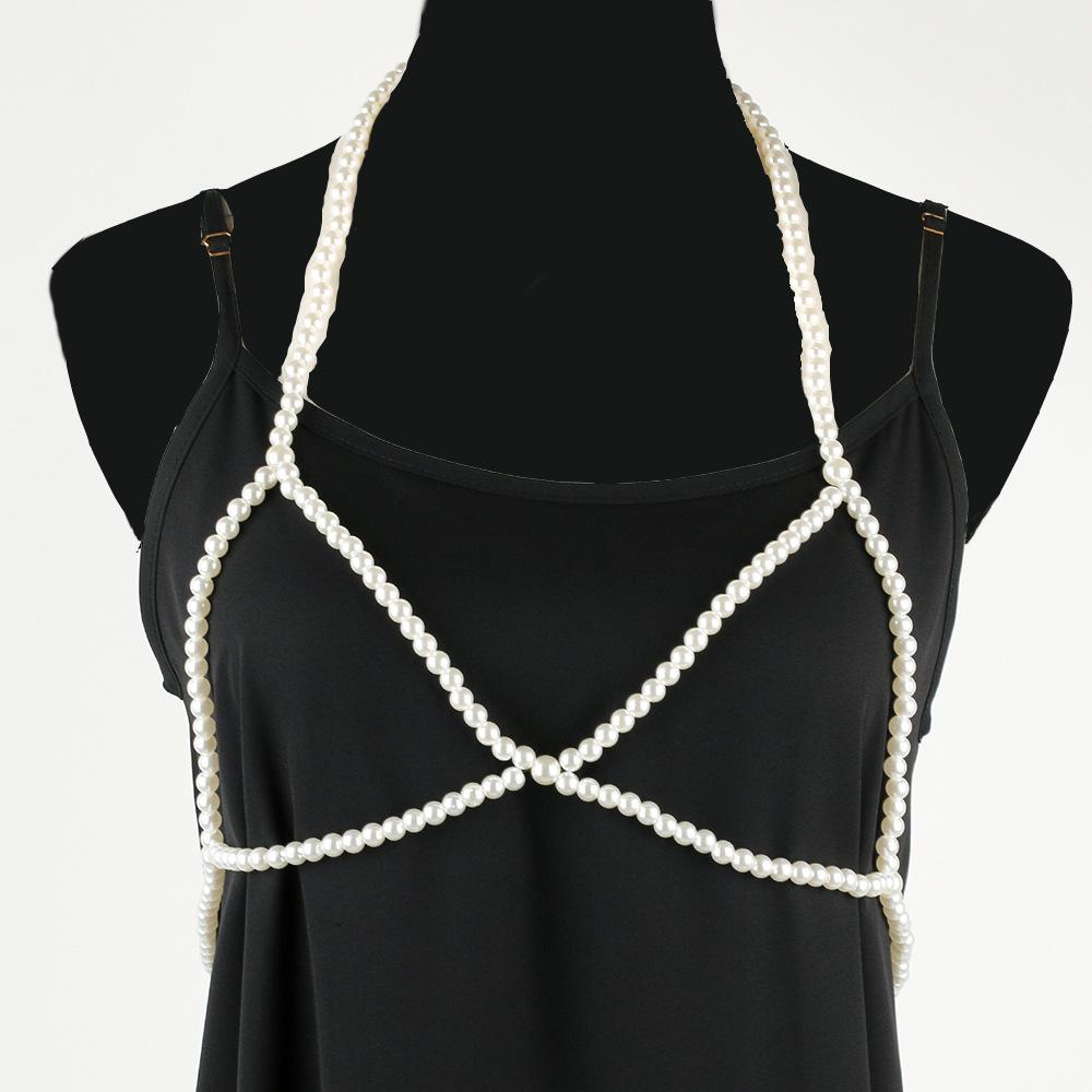 Cadena de pecho sexy europea y americana con perlas de imitación, cadena de ropa interior, cadena corporal de moda transfronteriza, cadena de bikini para mujer, sujetador.