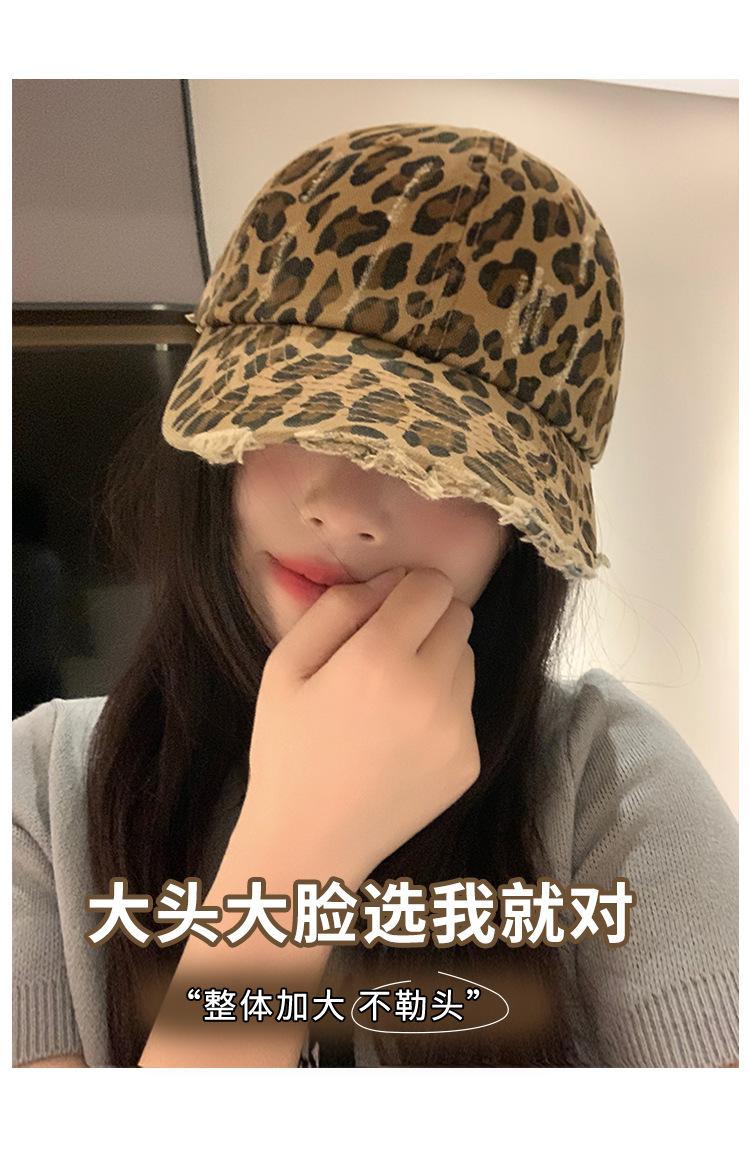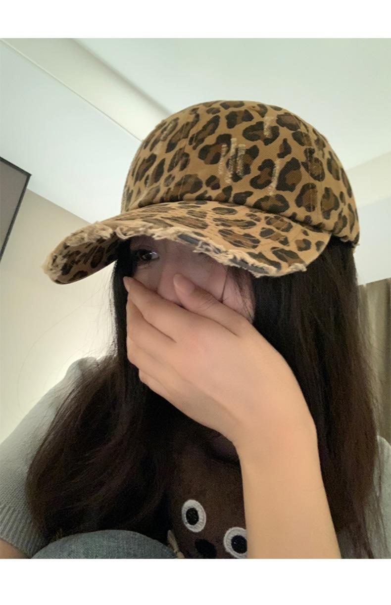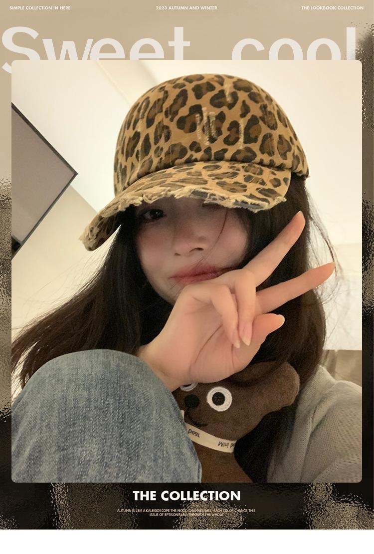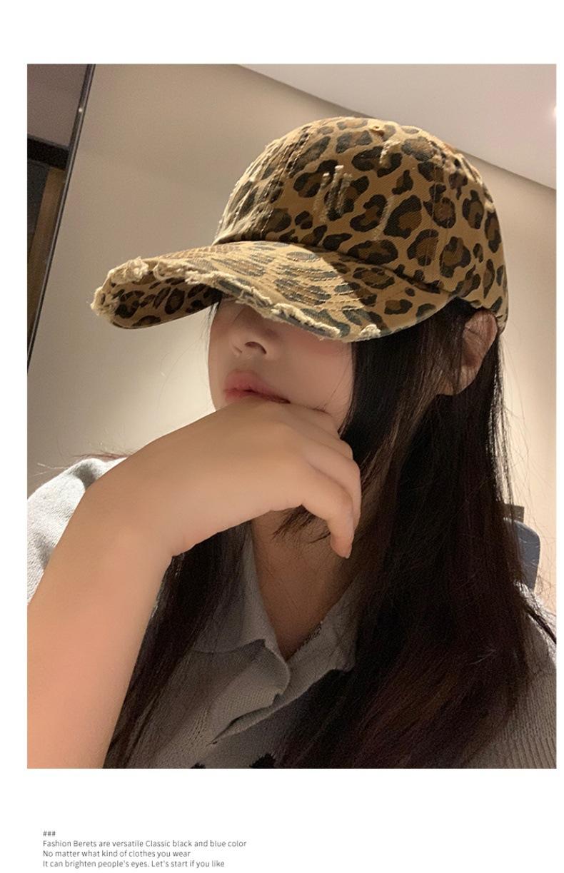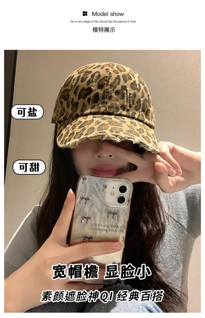Gorra de Béisbol Retro Estilo Americano Estampado de Leopardo Vieja Niños Primavera y Verano Lijado Top Suave Y2K Rostro Pequeño Ins Gorra Chica Caliente