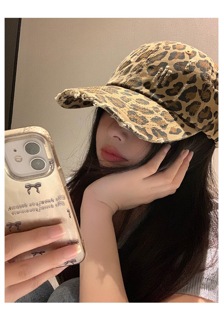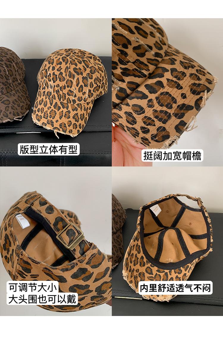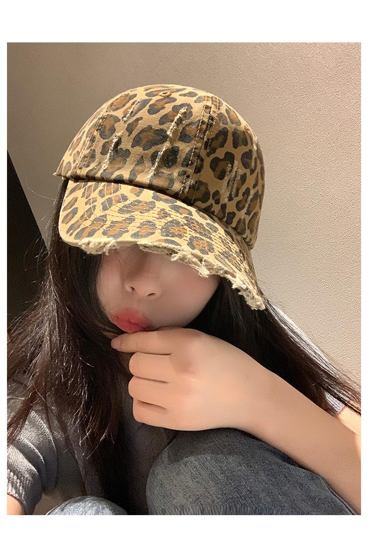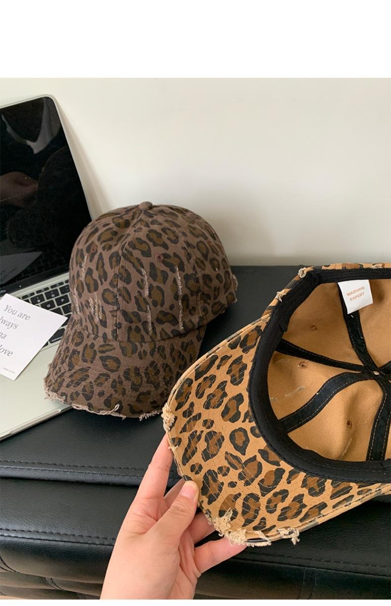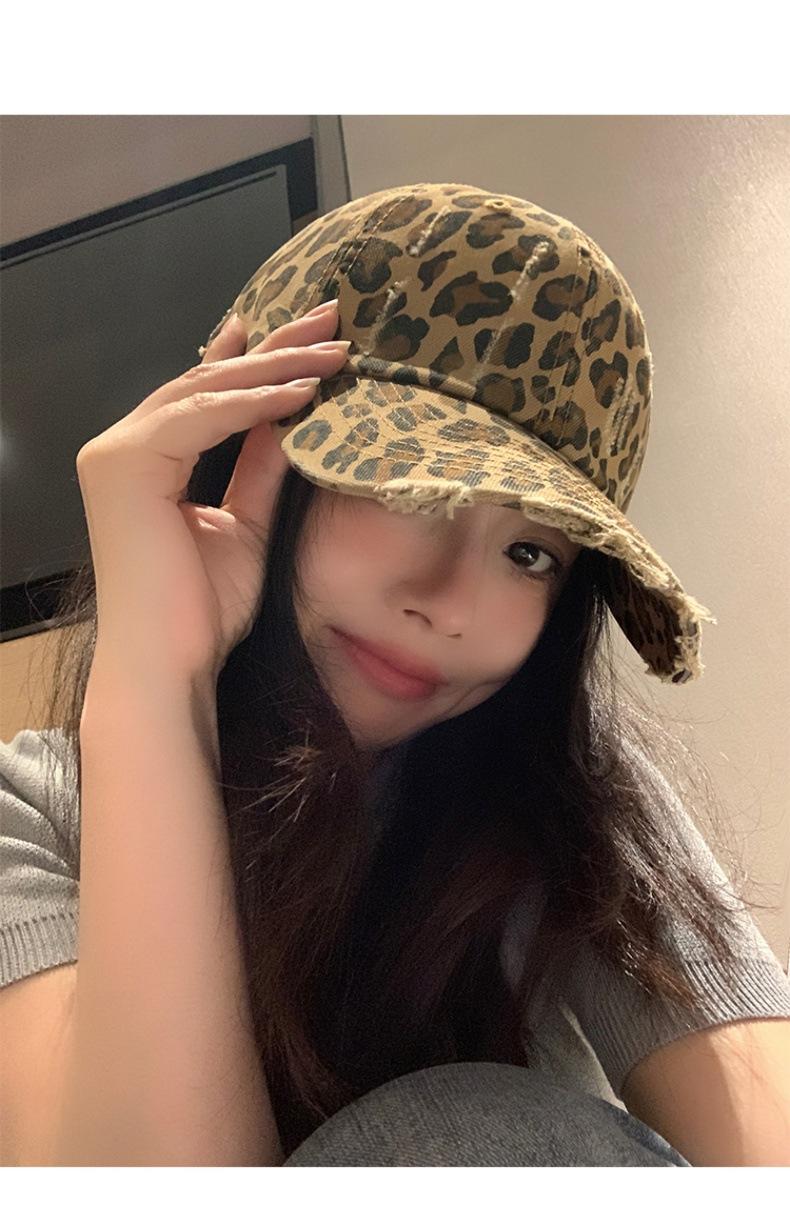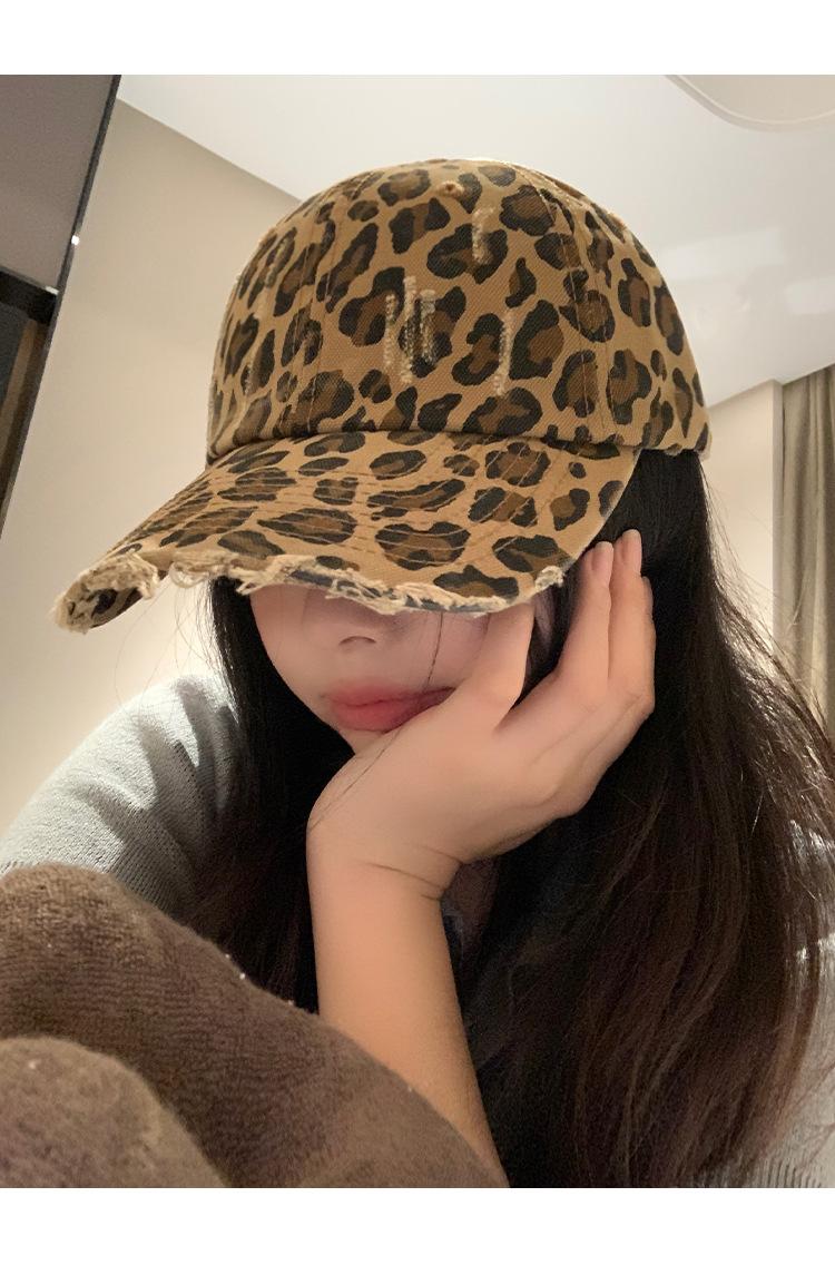 Gorra de Béisbol Retro Estilo Americano Estampado de Leopardo Vieja Niños Primavera y Verano Lijado Top Suave Y2K Rostro Pequeño Ins Gorra Chica Caliente