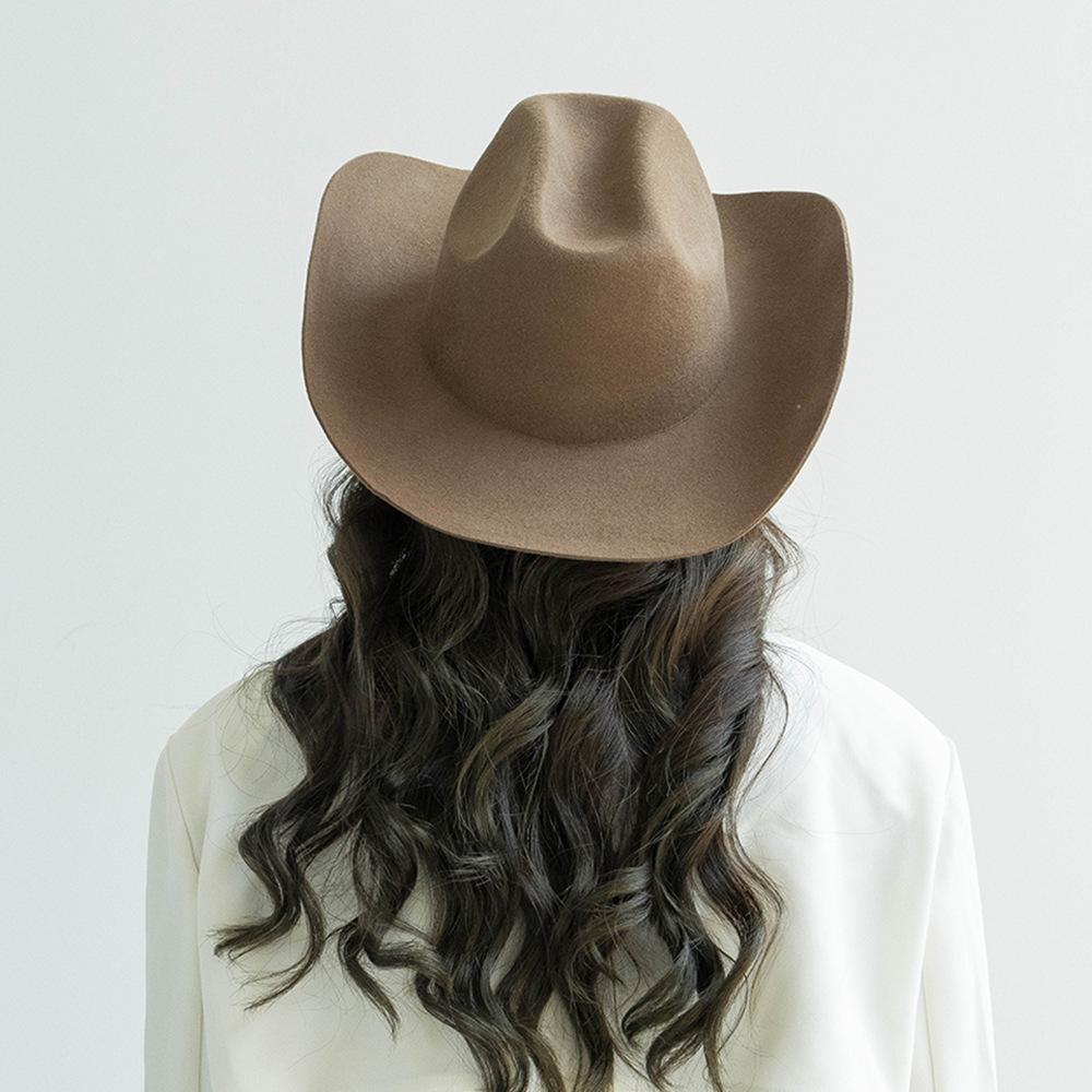 Sombrero de vaquero de fieltro de lana curvo, informal, de nueva moda, para otoño e invierno, estilo cóncavo y cálido, resistente al sol, para exteriores, estilo jazz, estilo europeo y americano.