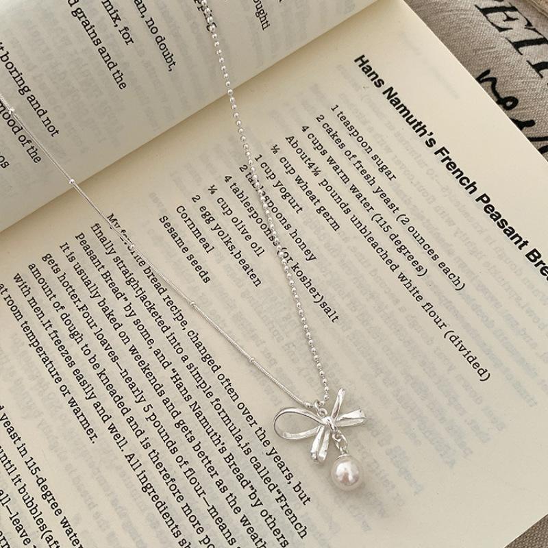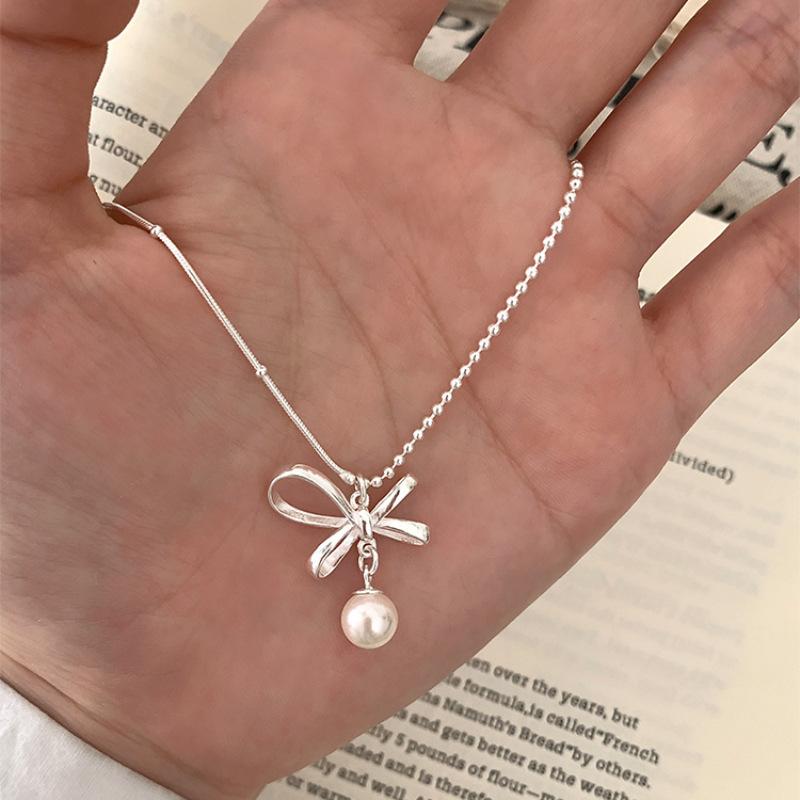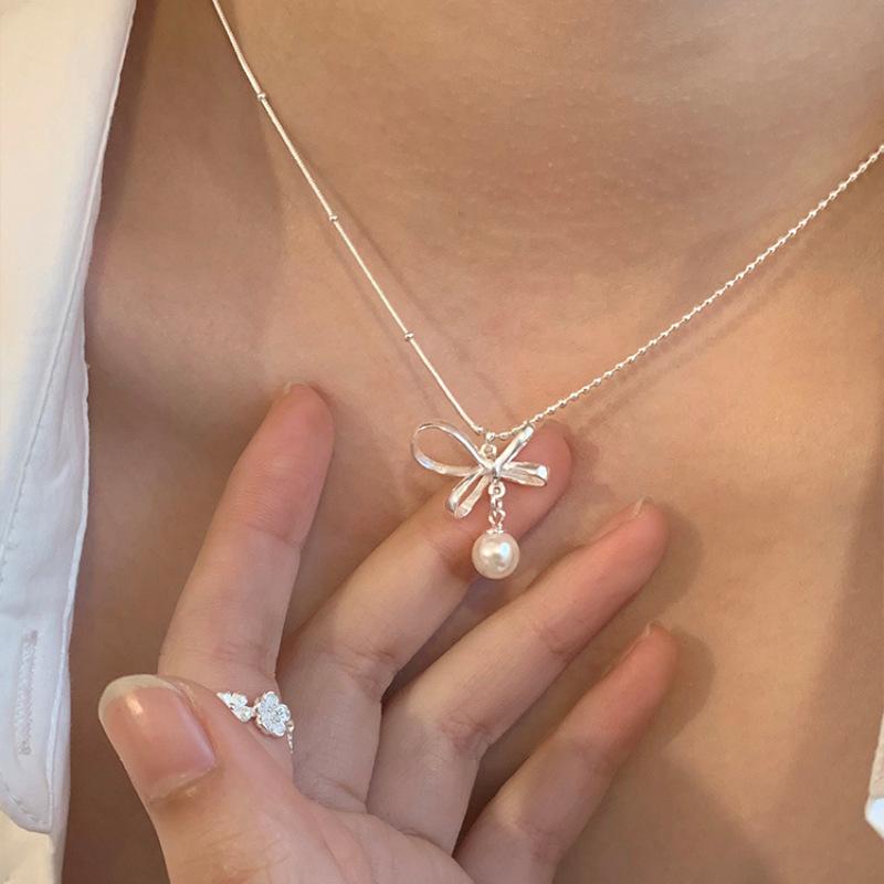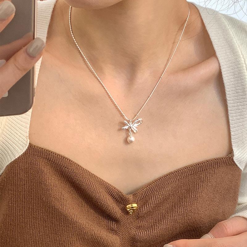 Collar con colgante de perla y lazo para mujer, de verano, ligero, de lujo, de alta gama, combinable con todo, con cadena de clavícula, nuevos accesorios.