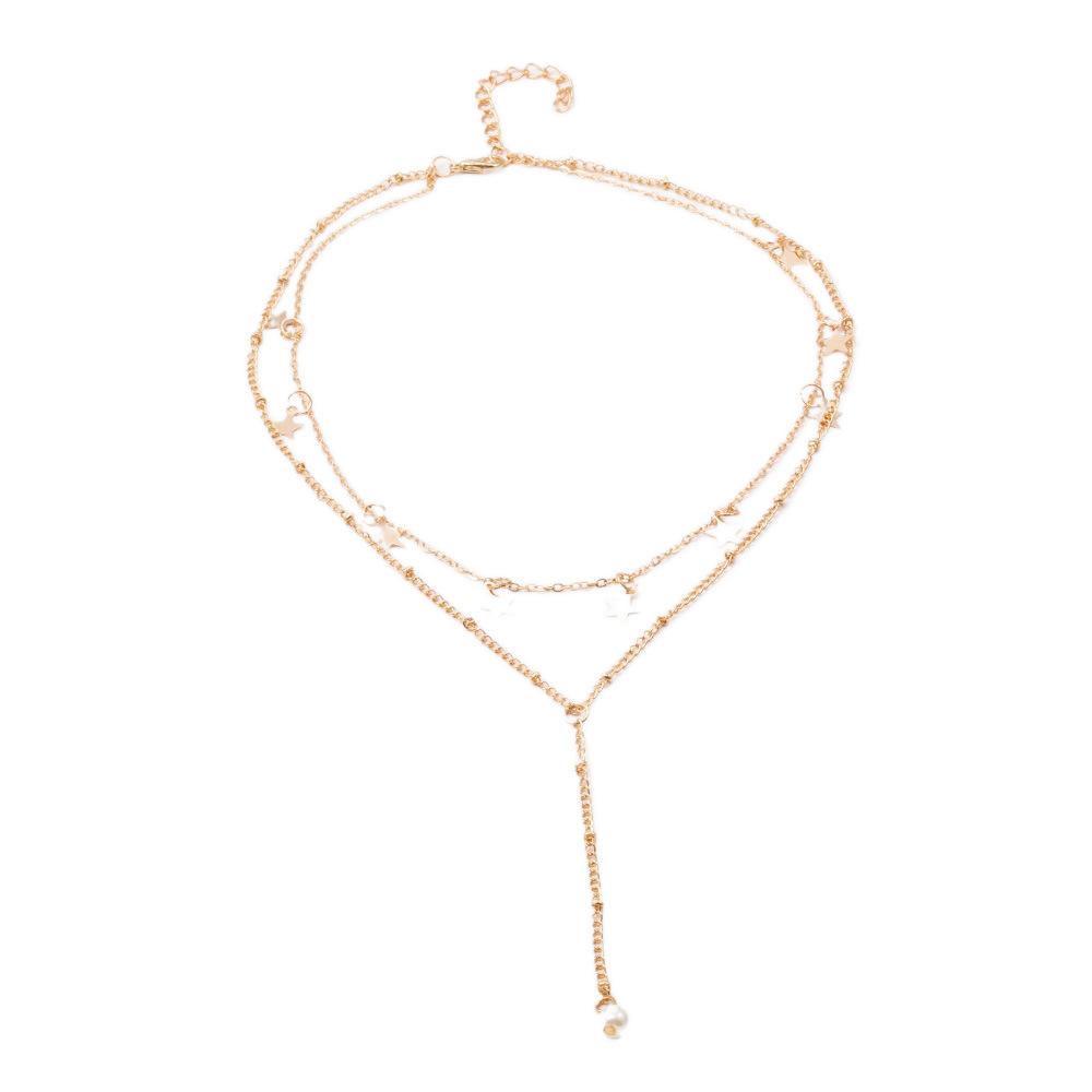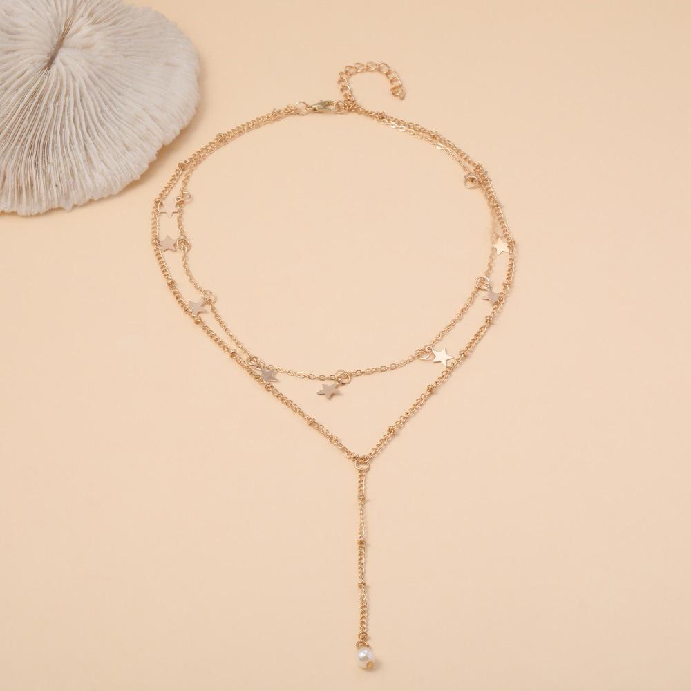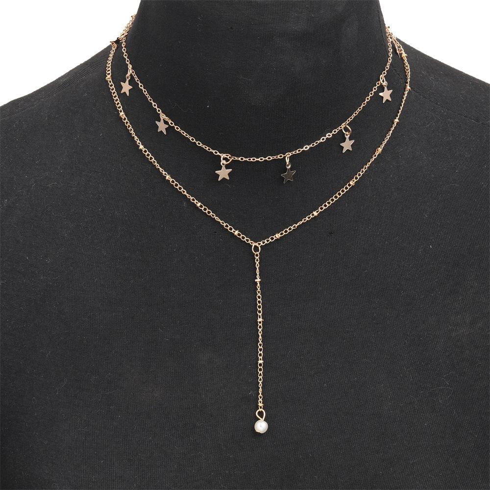 Collar personalizado más vendido en Europa y Estados Unidos, collar de aleación multicapa con disco de estrella simple a la moda, venta directa de fábrica