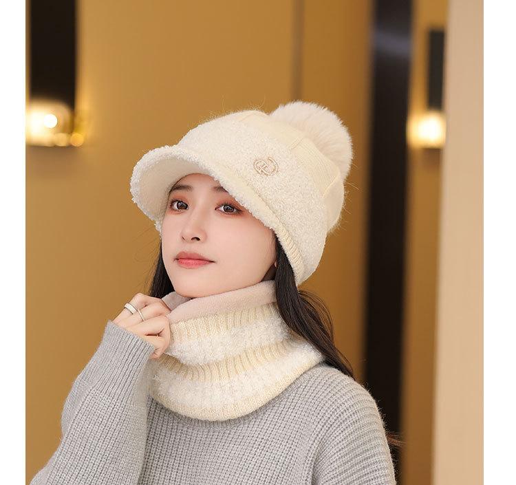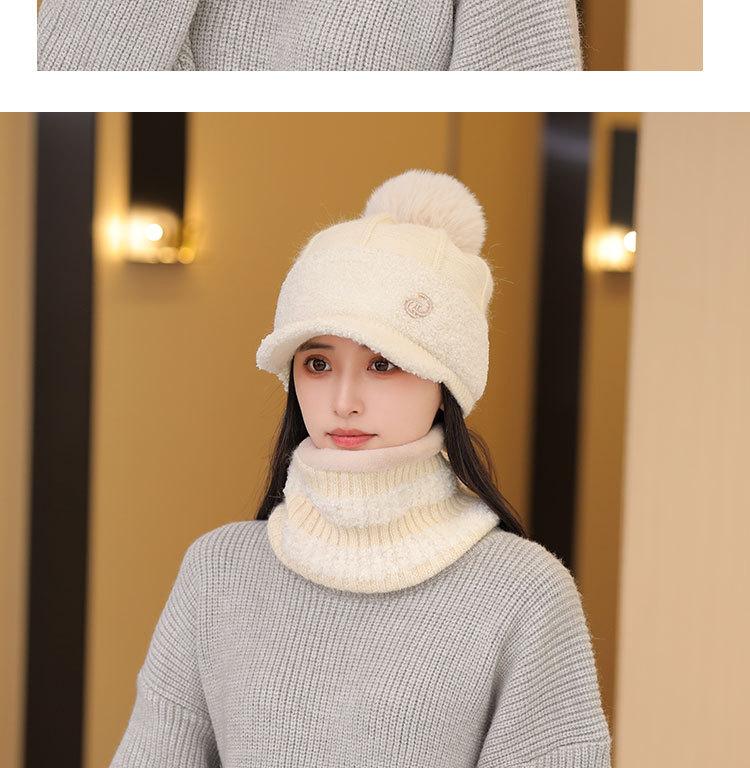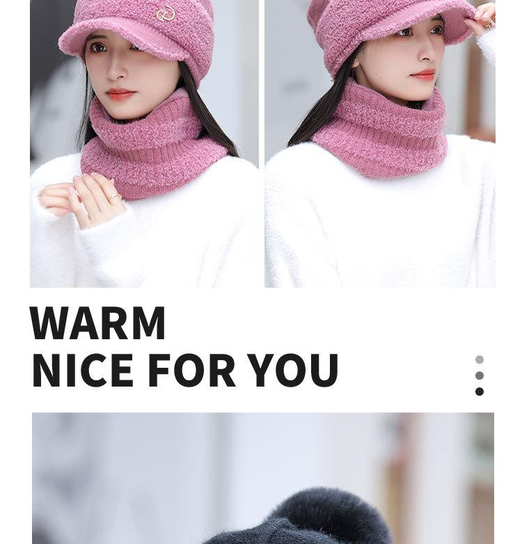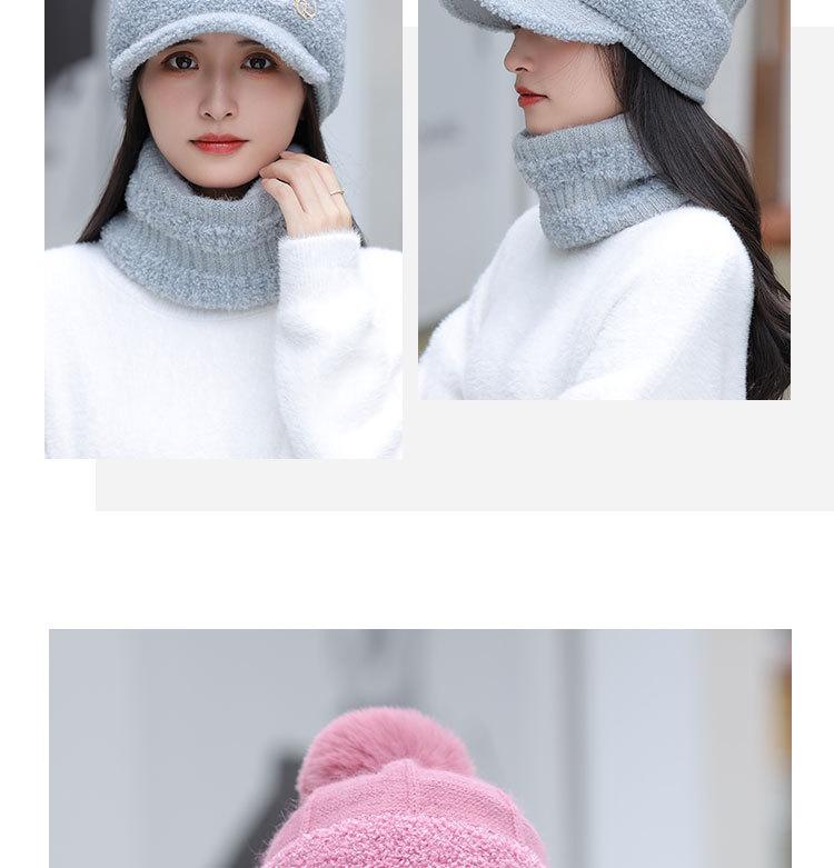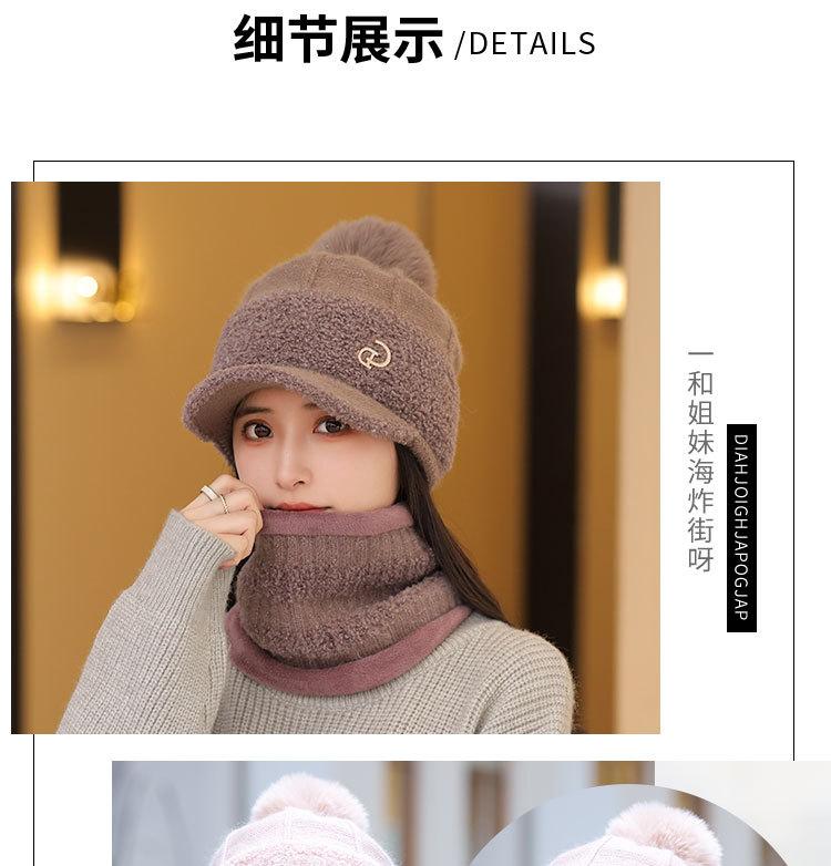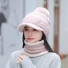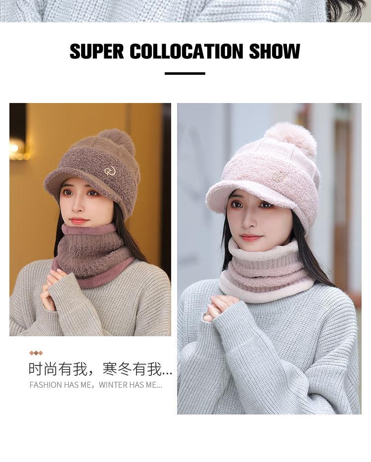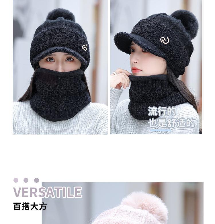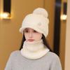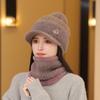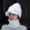 Gorro de lana de punto cálido para mujer, gorro con forro polar para el cuello, gorro coreano negro resistente al frío, para otoño e invierno.