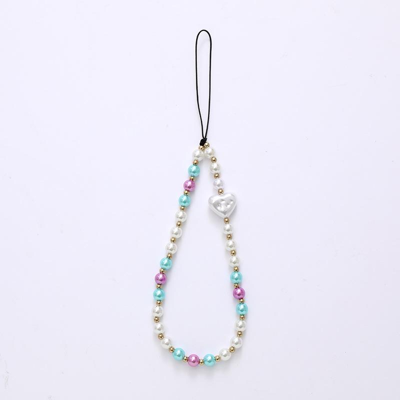 Venta directa de fábrica, superventas, cadena antipérdida para teléfono móvil con cuentas de arcoíris y amor, cordón de perlas DIY.