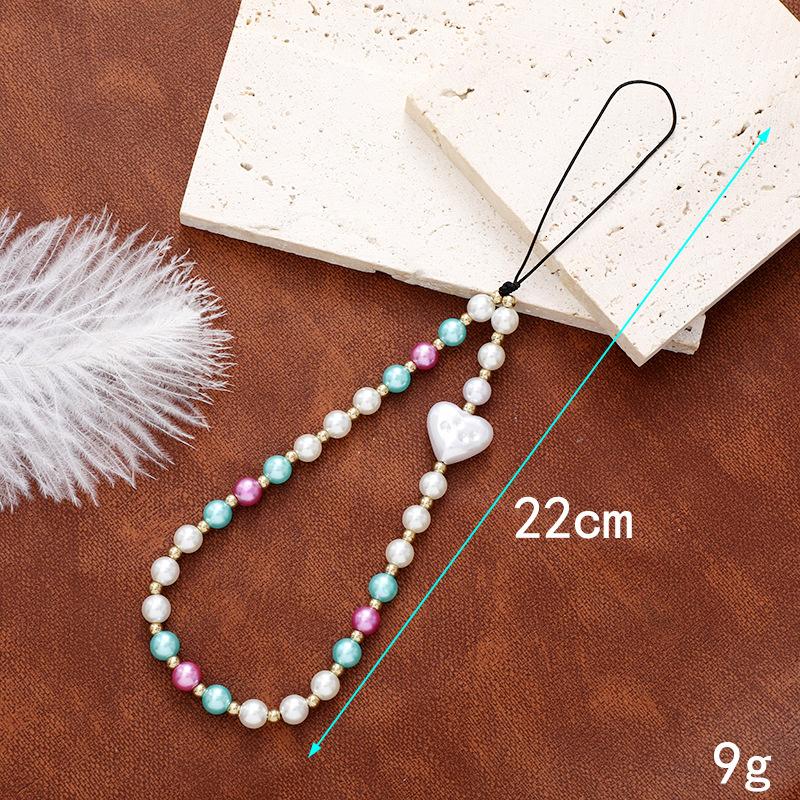 Cadena para teléfono móvil con forma de corazón y lazo de perlas, estilo creativo y moderno, versátil y hecha a mano con colgante mixto de cuentas.