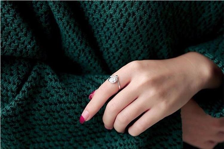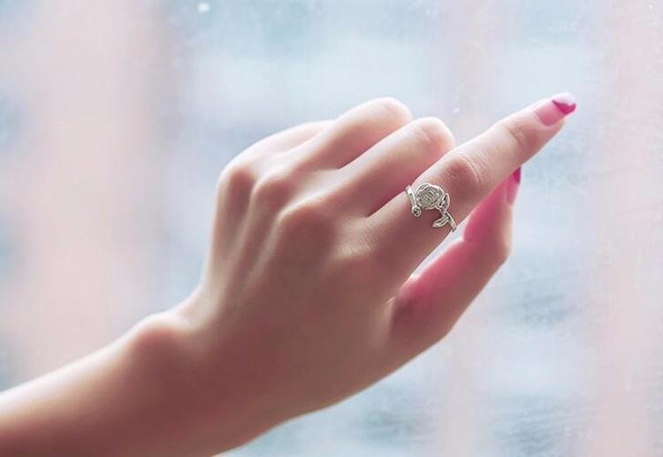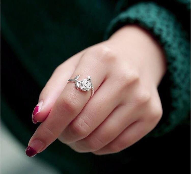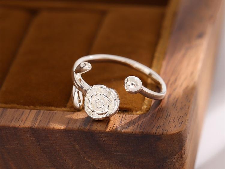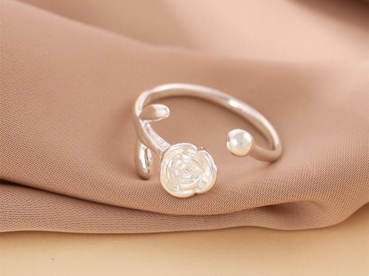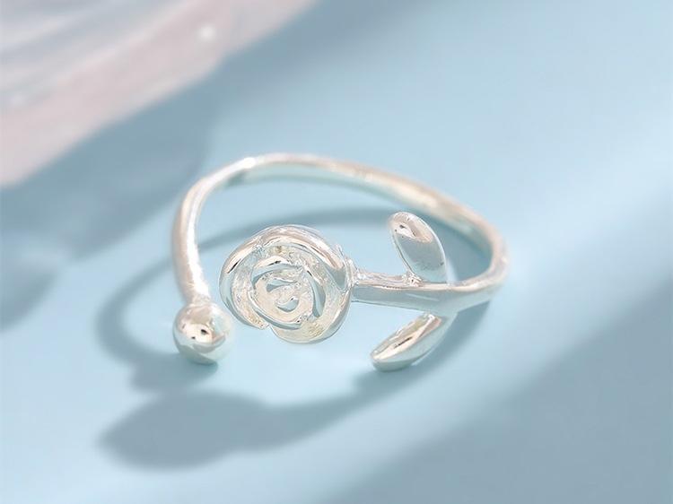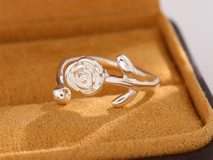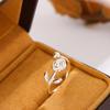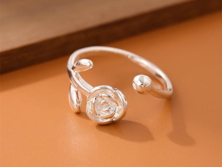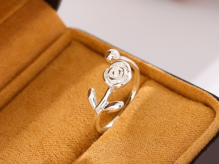 Moda Elegante Rosa Flor Hojas Flor Simple Anillo Abierto Mujeres Venta al por Mayor