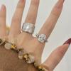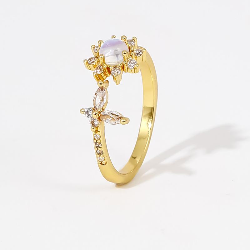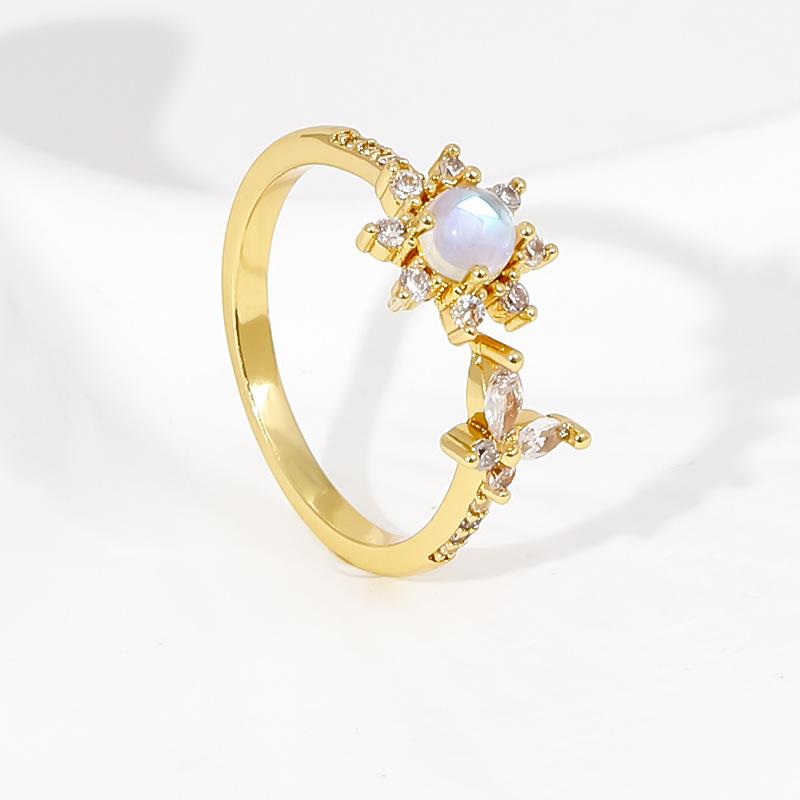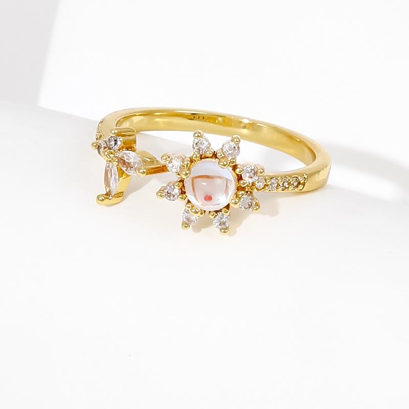 Moda Nuevo Cobre Micro-incrustado Zircón Diseño Creativo de Flor Anillo Abierto Estilo INS Anillo Personalizado Versátil para Mujer