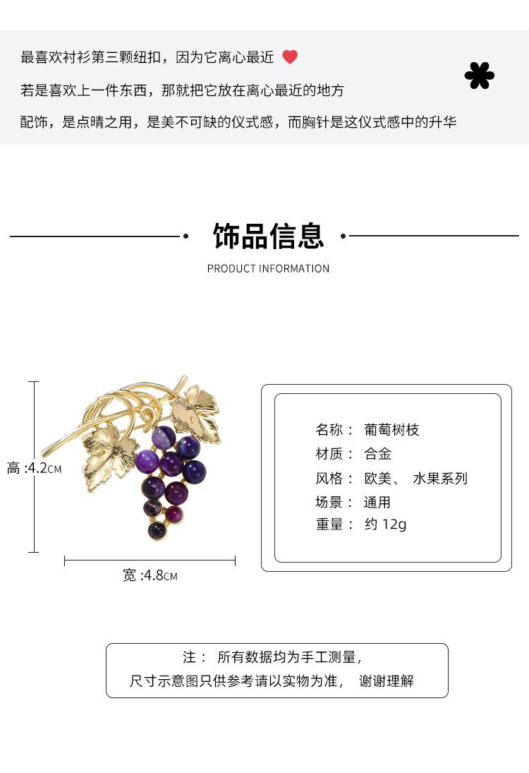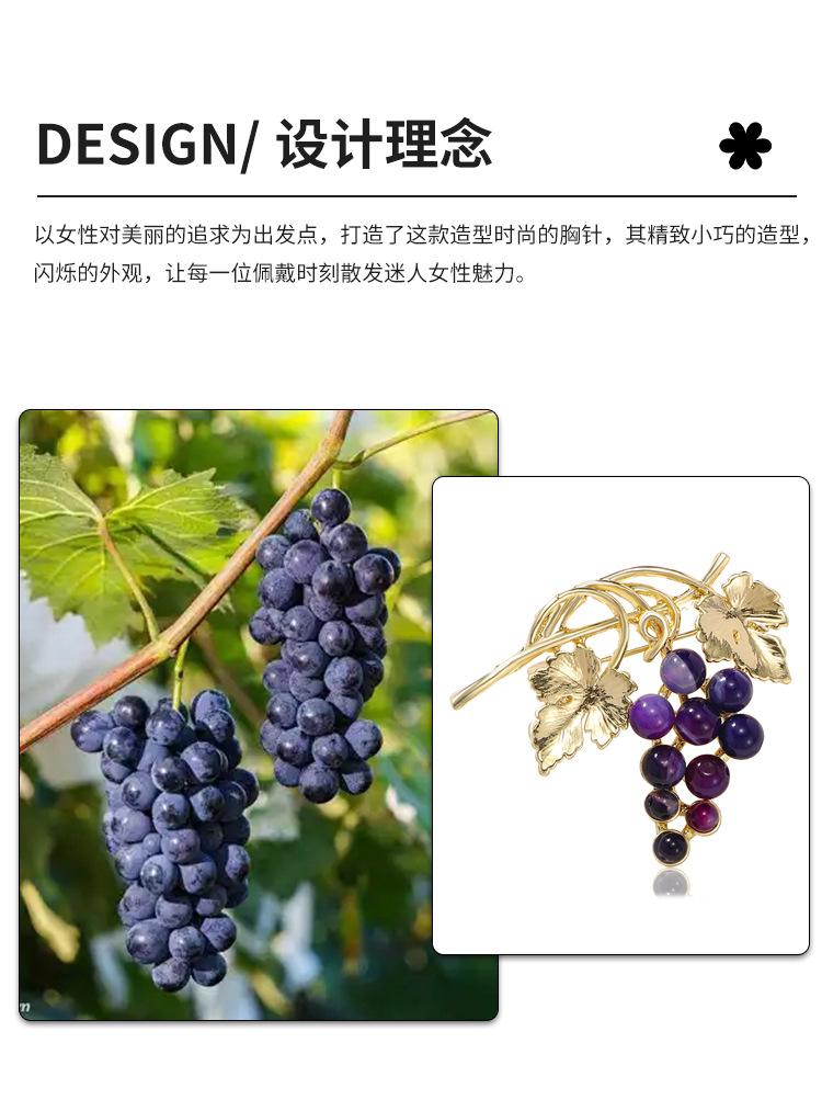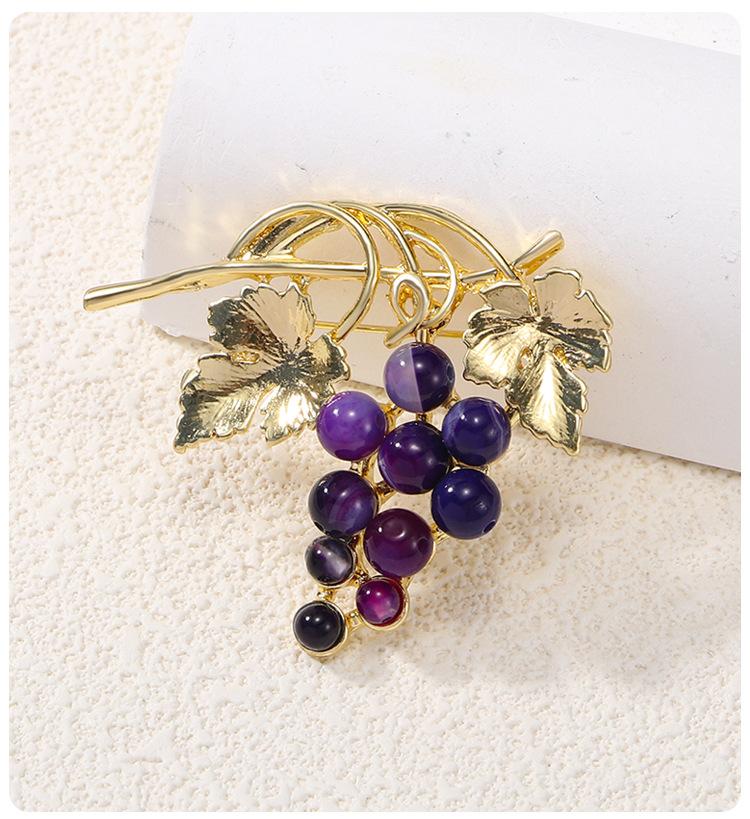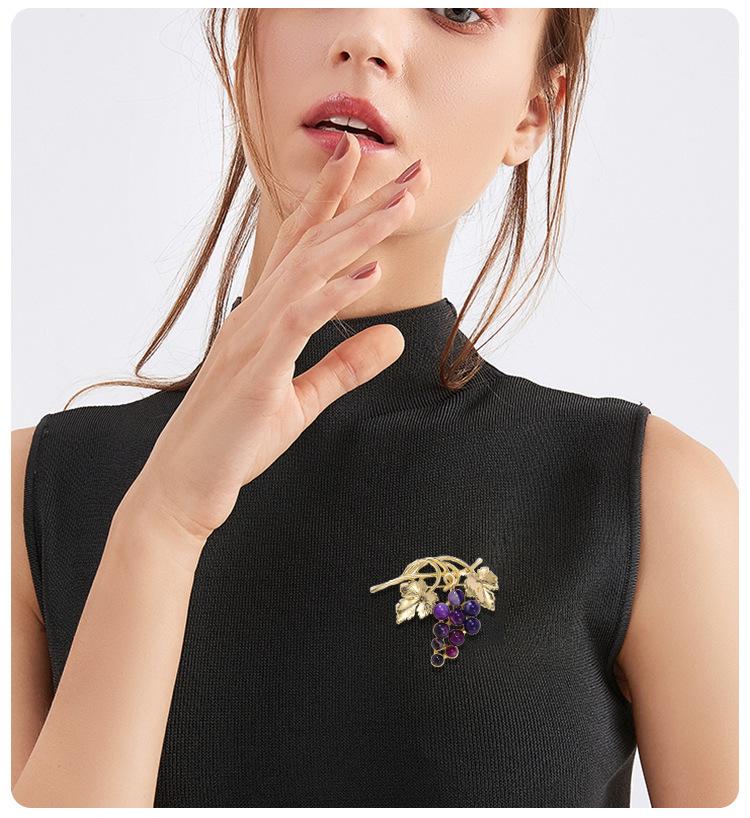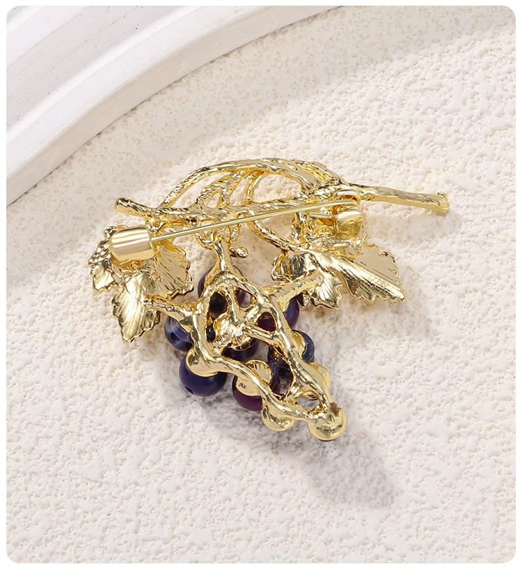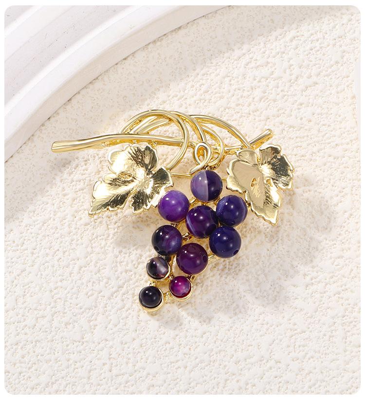 Broche de fruta de moda europea y americana, temperamento de aleación de alta gama, ramillete de uva morada, accesorios de ropa, pin