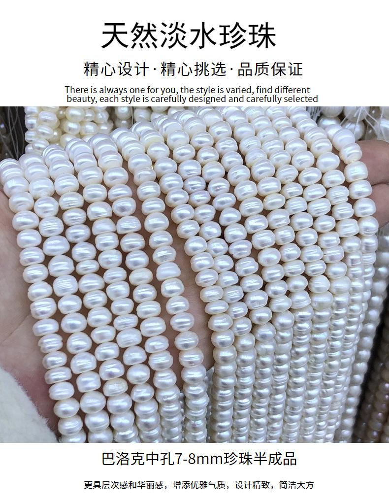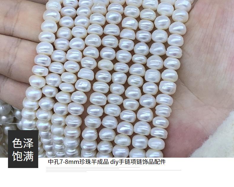 Perlas Naturales de Agua Dulce Barrocas Agujero Medio 7-8mm Perla Semiterminada DIY Pulsera Collar Accesorios de Joyería