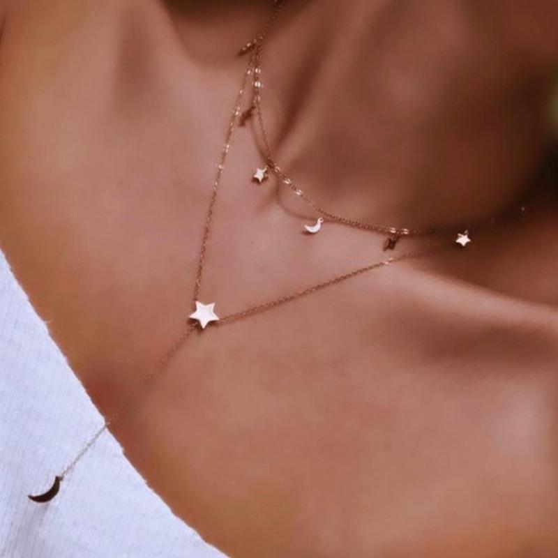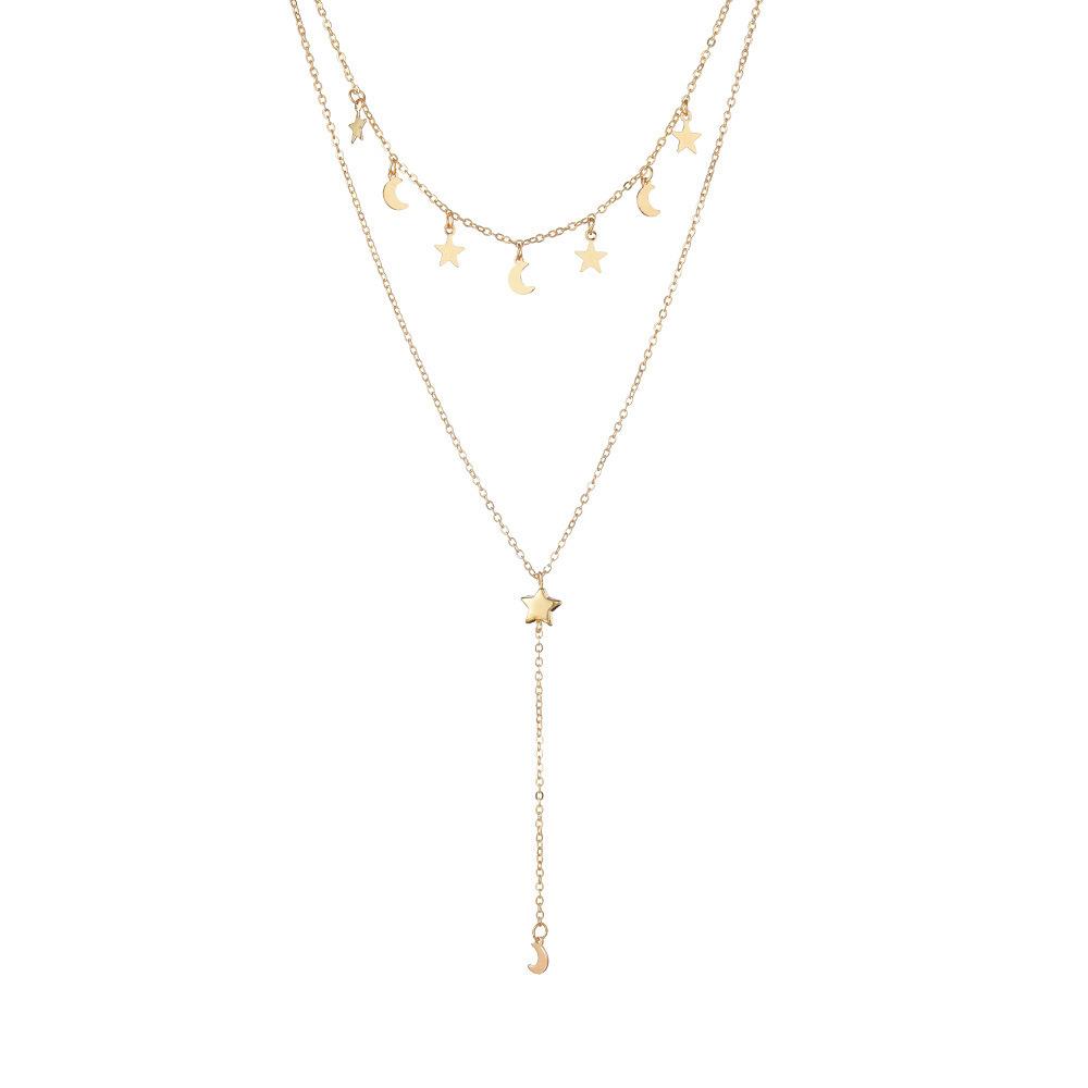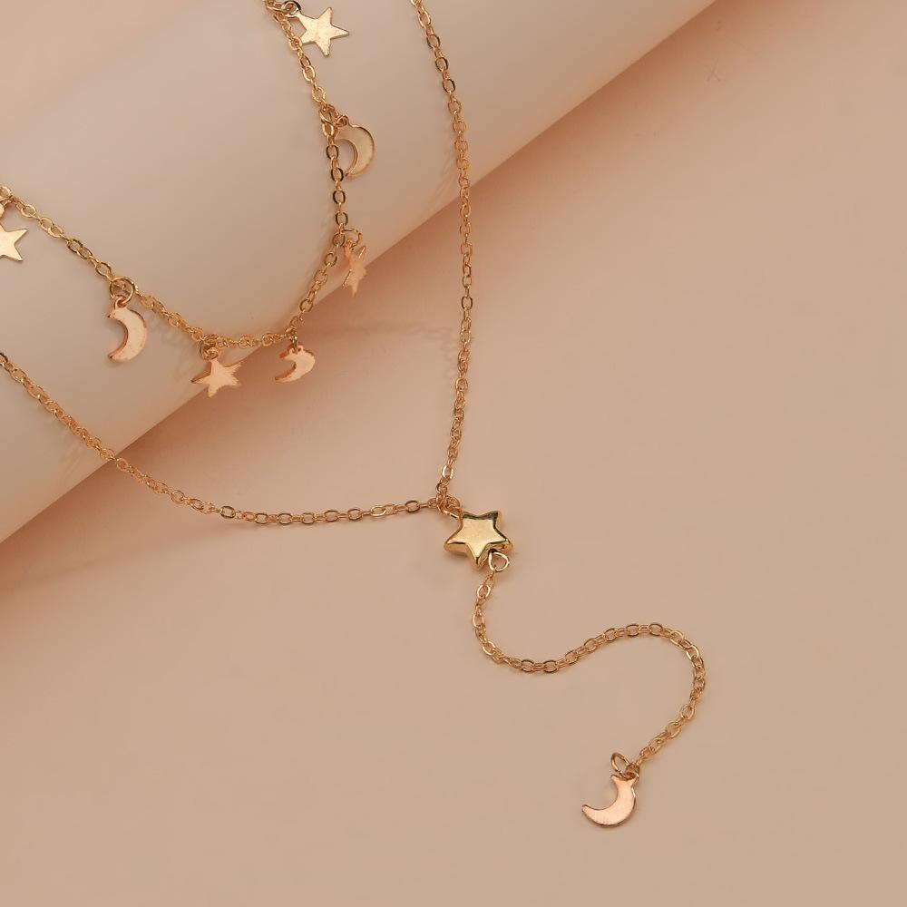 Nuevo collar con colgante multicapa de luna y estrella bohemia de joyería transfronteriza, collar largo personalizado de metal para mujer