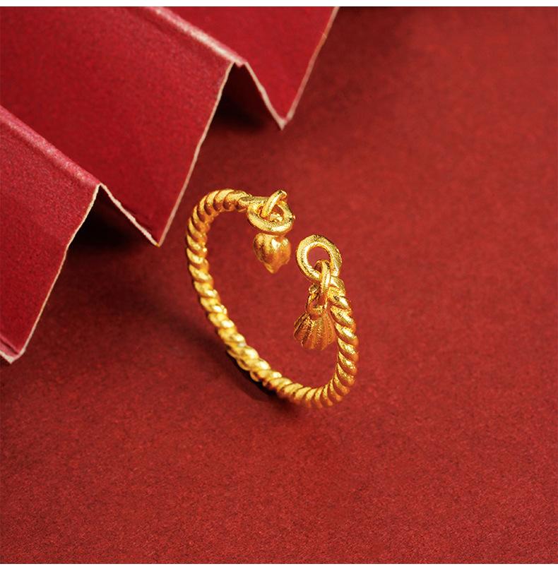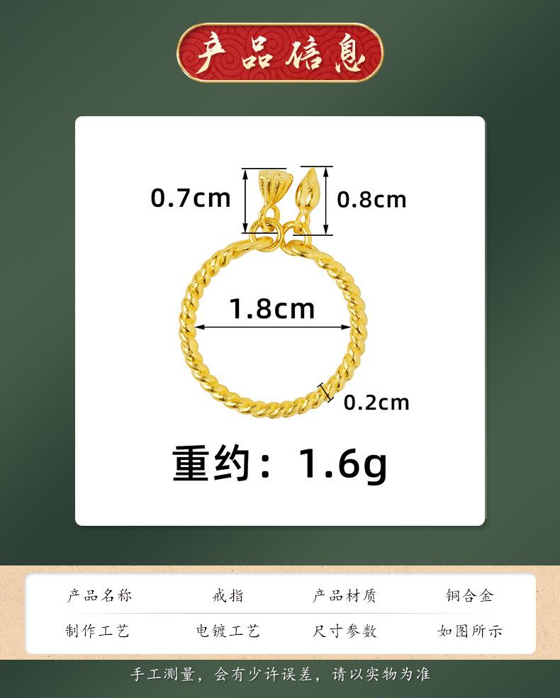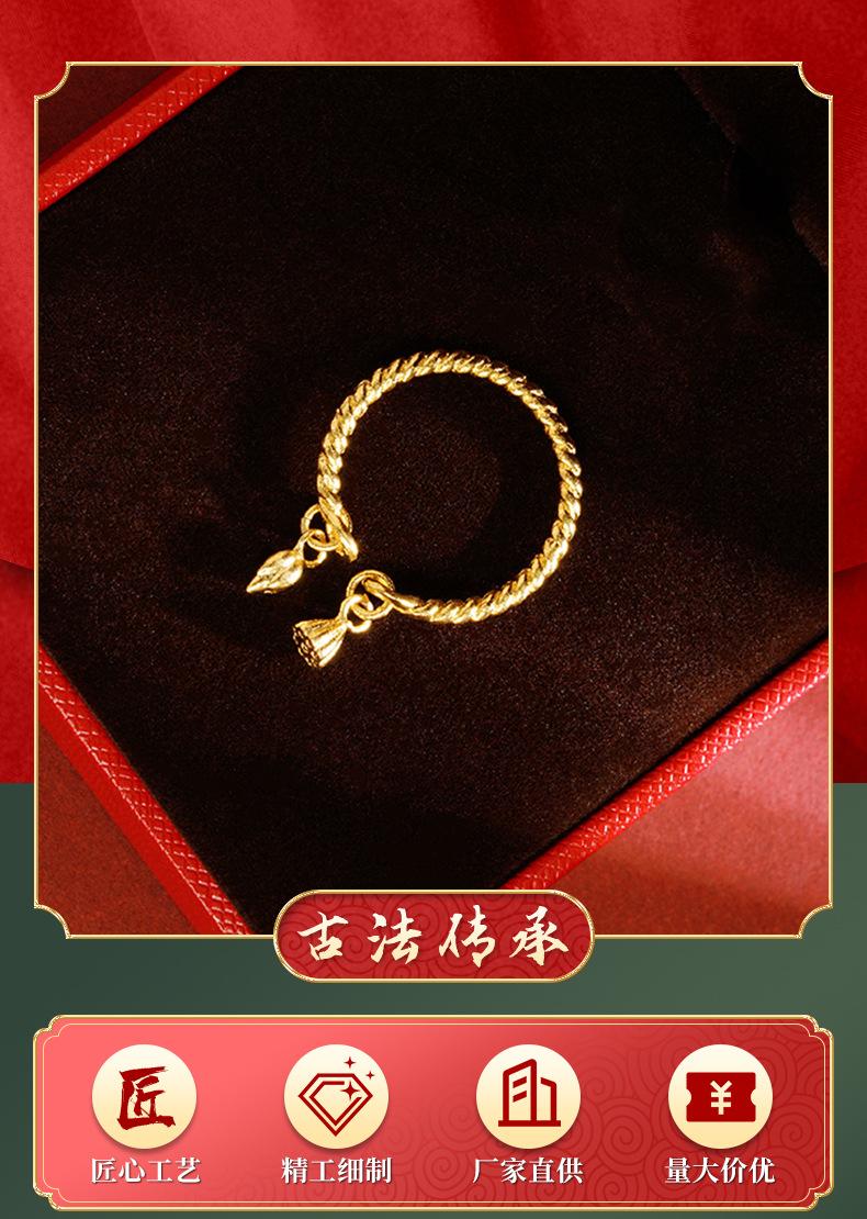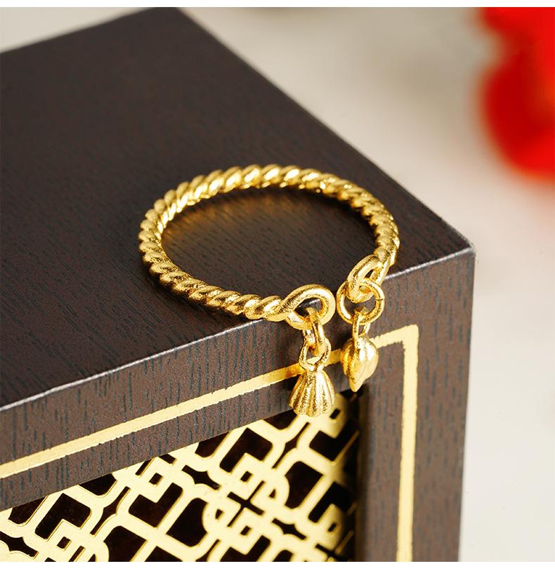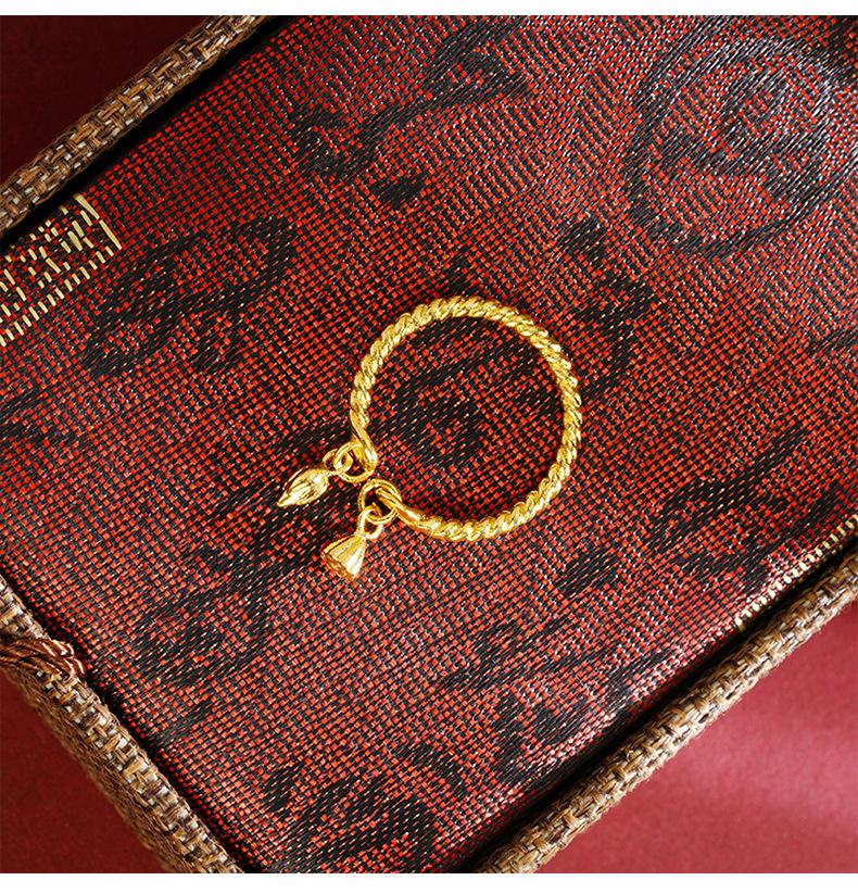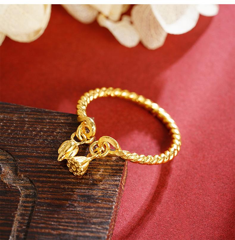 Nuevo anillo de loto de nudo retorcido de artesanía de oro arena antigua para mujer, anillo abierto, cobre chapado en oro, accesorios al por mayor de Yiwu