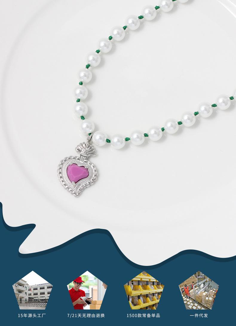 Collar de perlas para mujer, combinable con todo, estilo veraniego, diseño de nicho, colgante en forma de corazón, cadena de clavícula de alta gama con explosión transfronteriza.