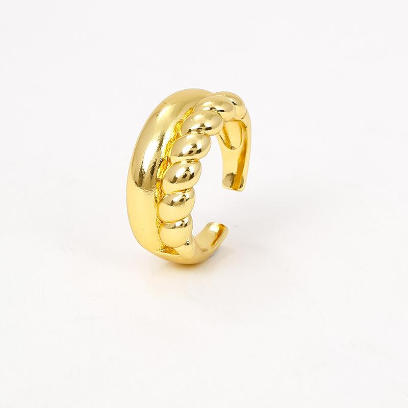 Anillo transfronterizo de diseño nuevo y creativo, geométrico, de doble capa, retorcido, de apertura suave, cobre chapado en oro real, personalidad, anillo simple