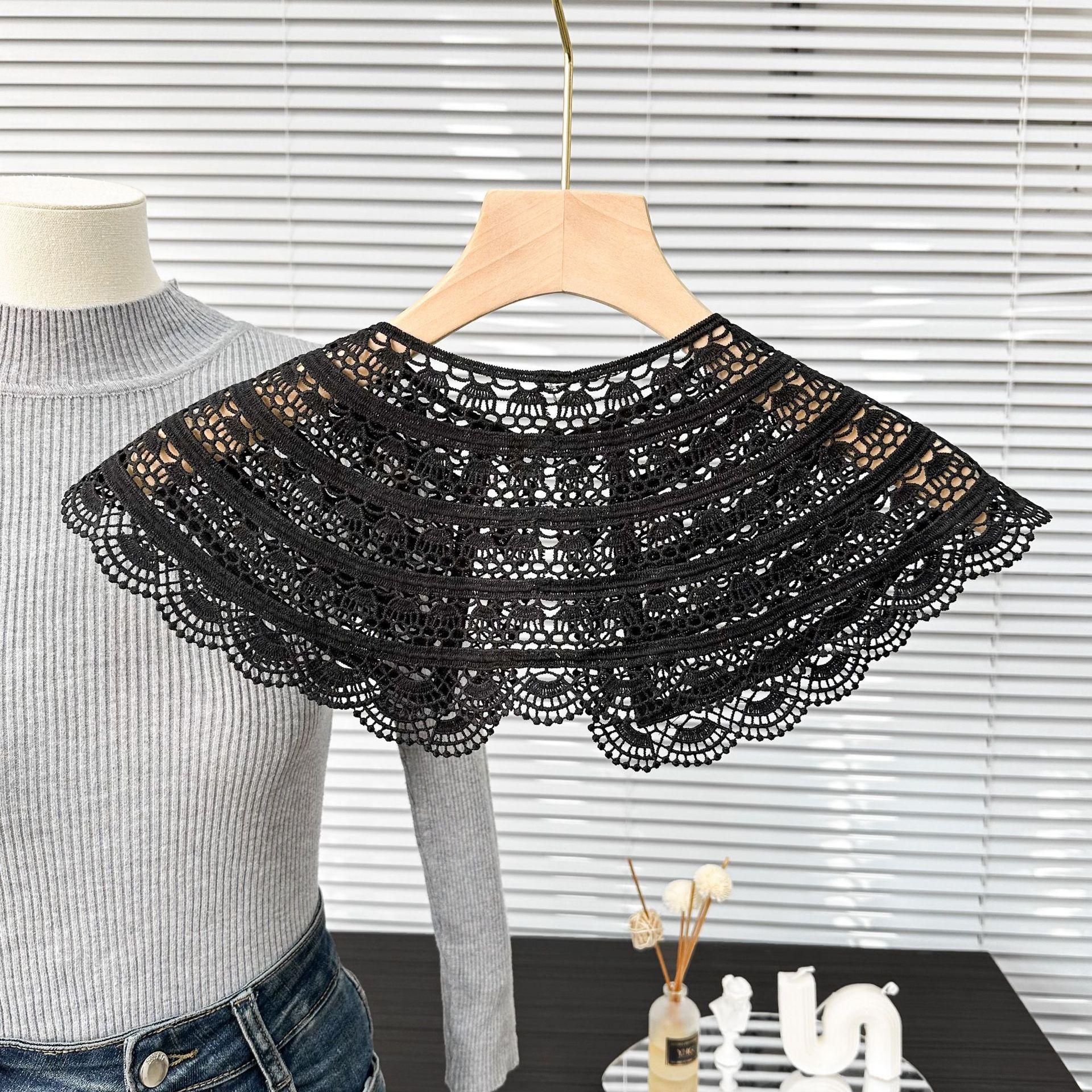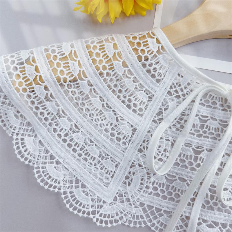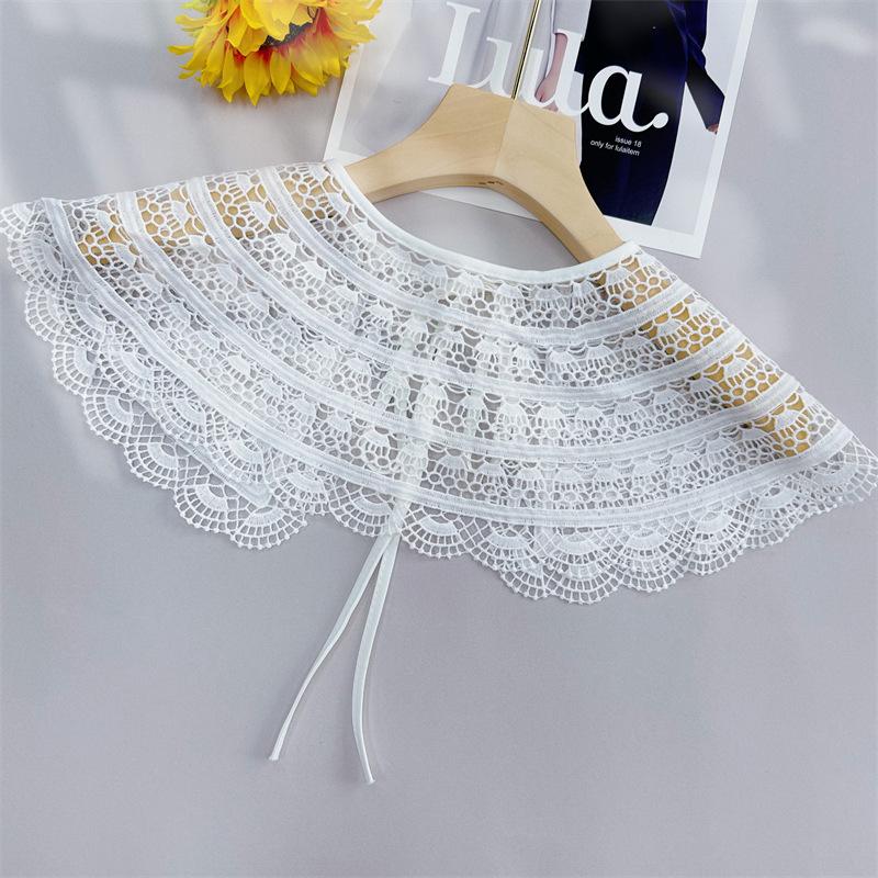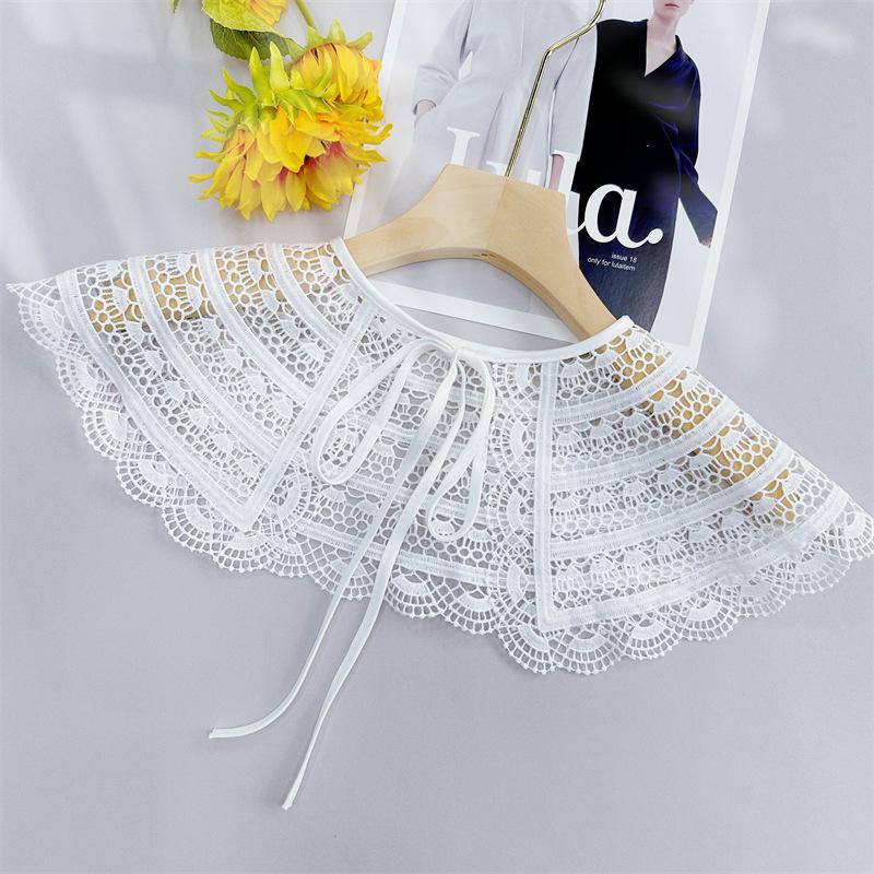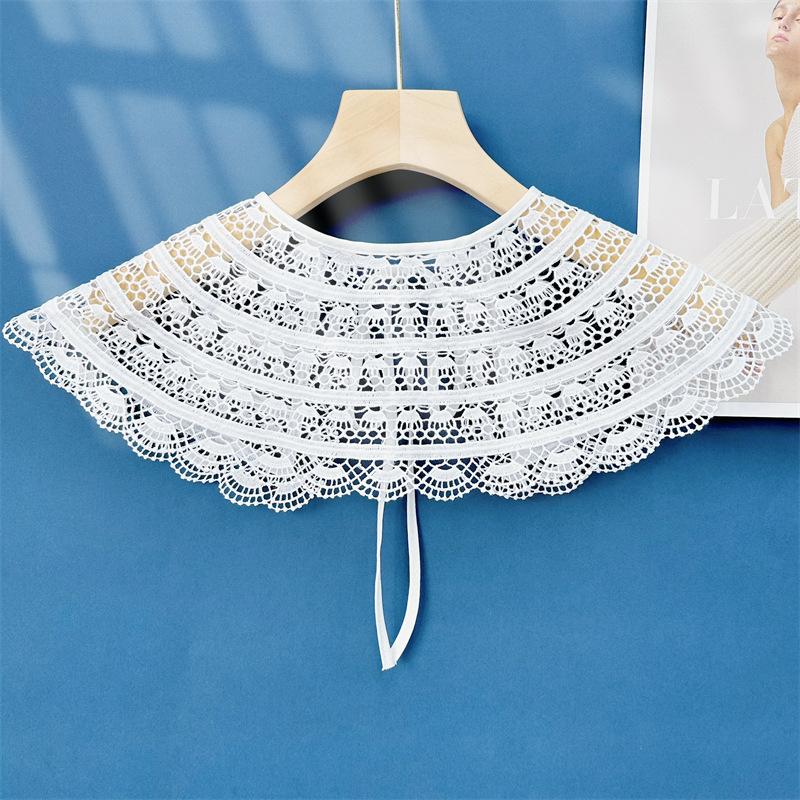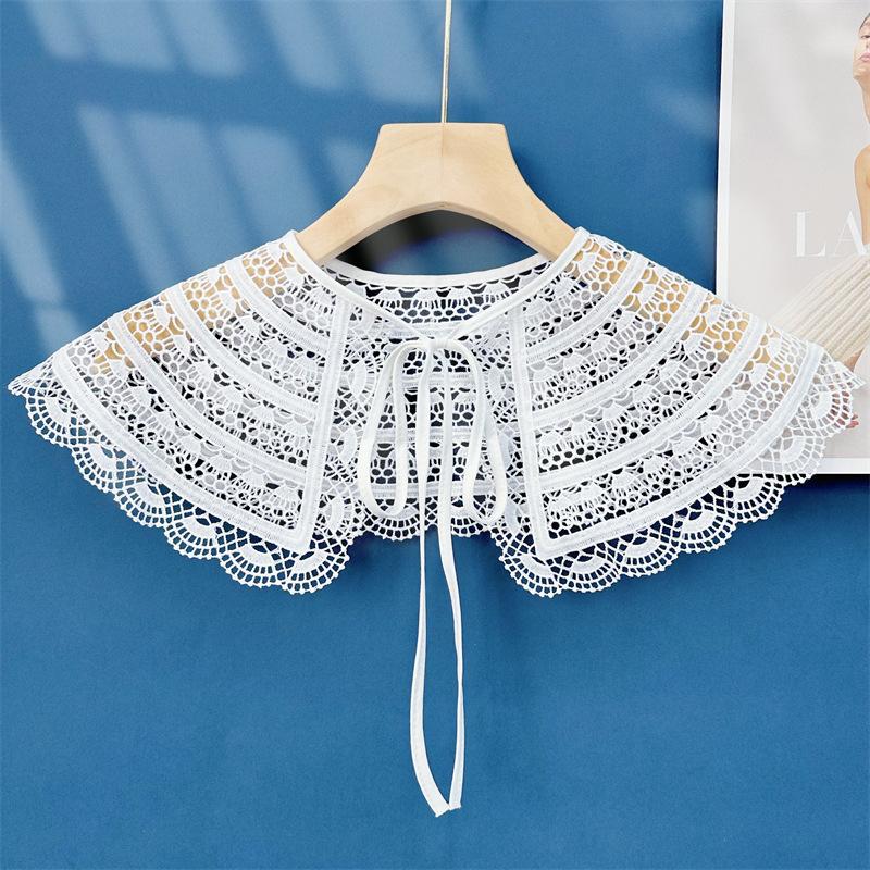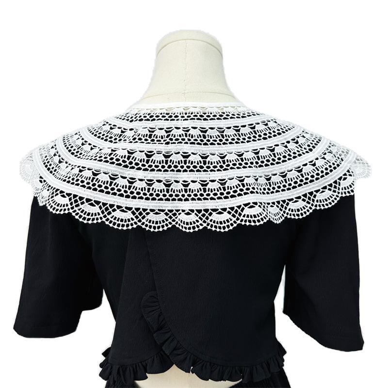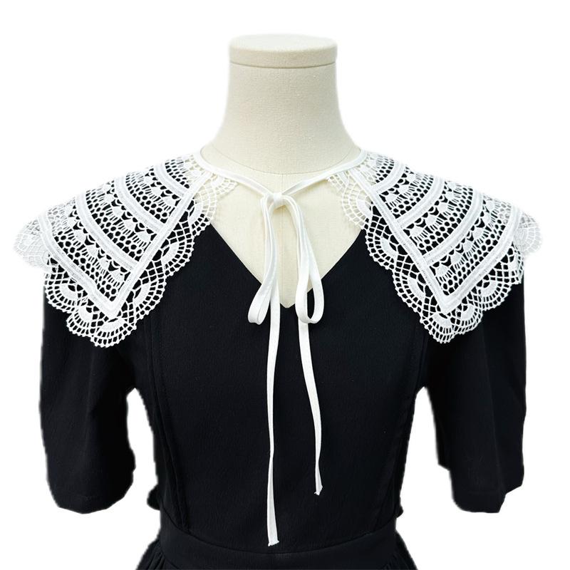 Nueva Blusa de Encaje Floral con Lazo y Cuello Ondulado Calado Estilo Pequeño Fragante Ropa de Mujer con Cuello Falso Dulce