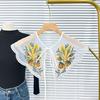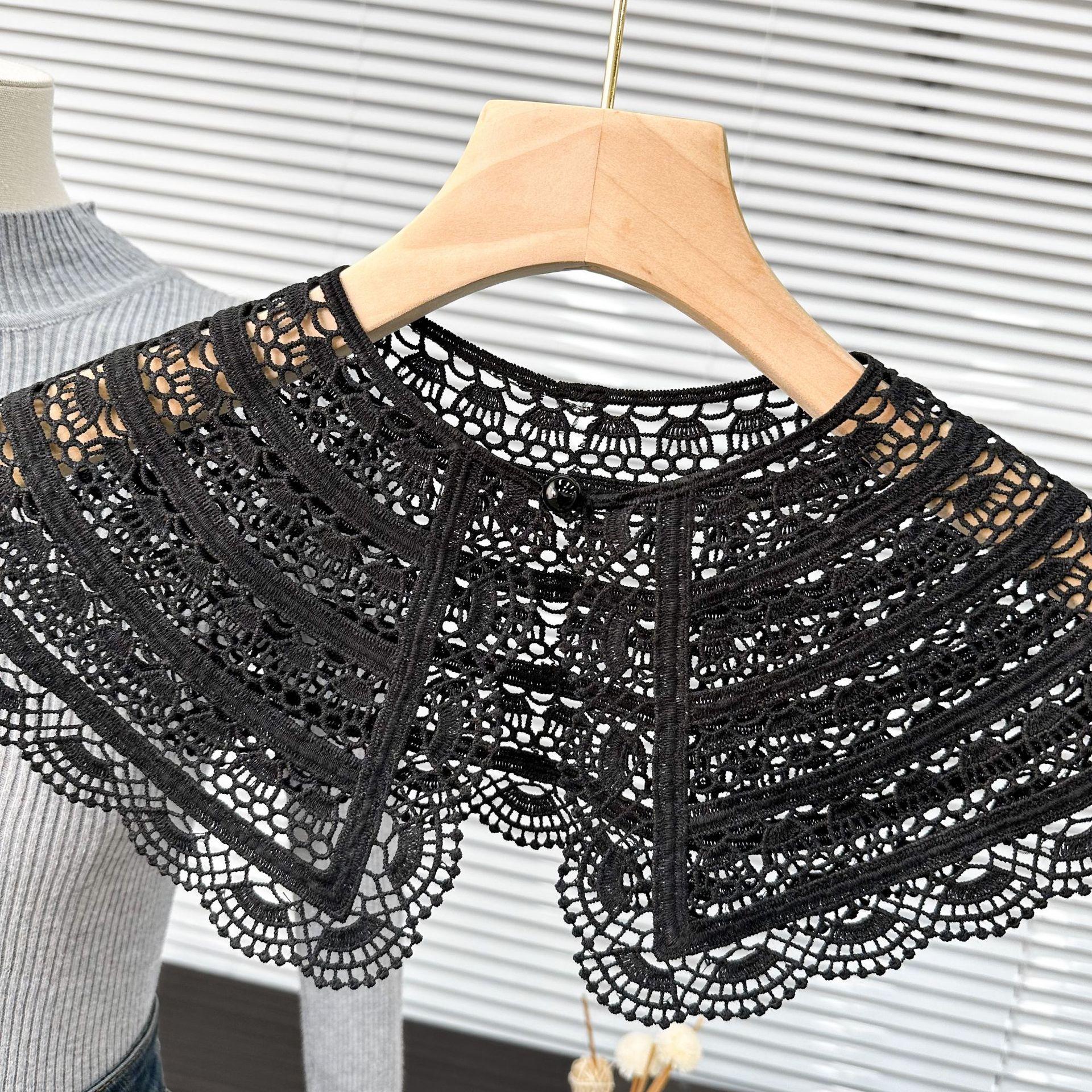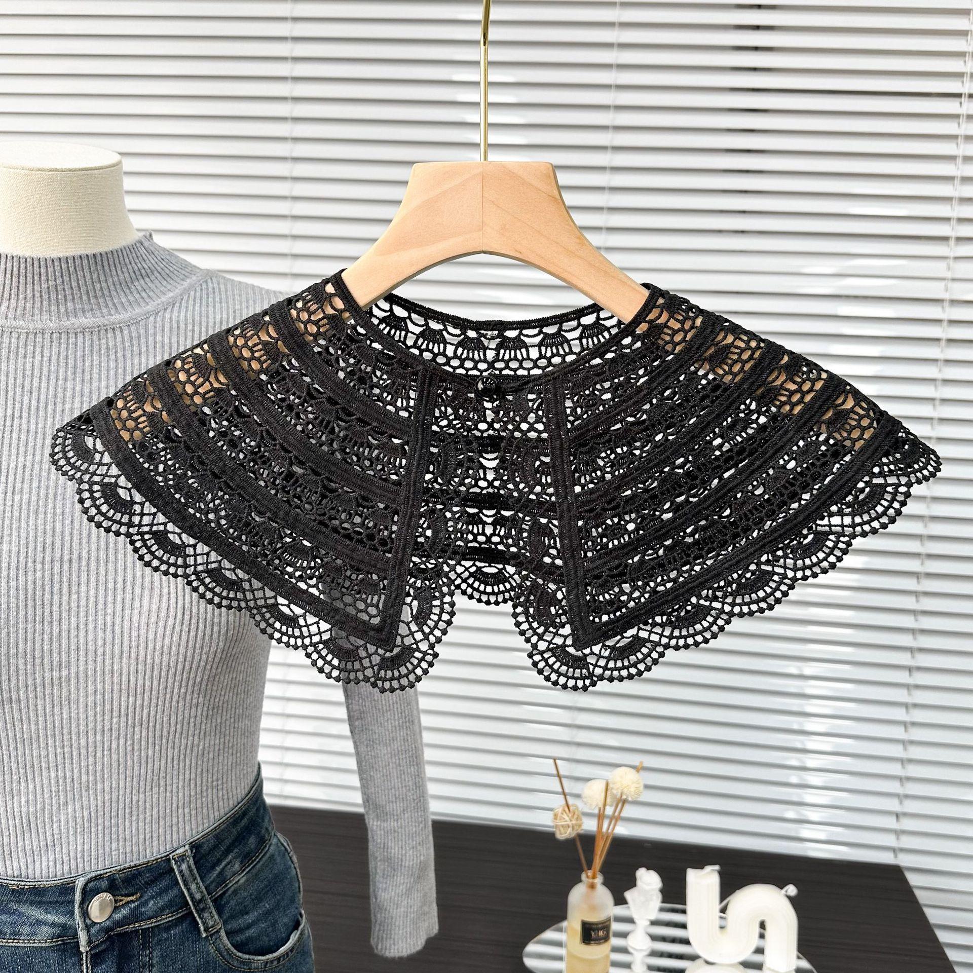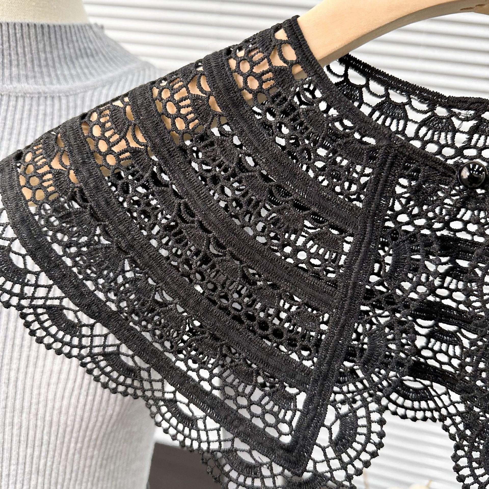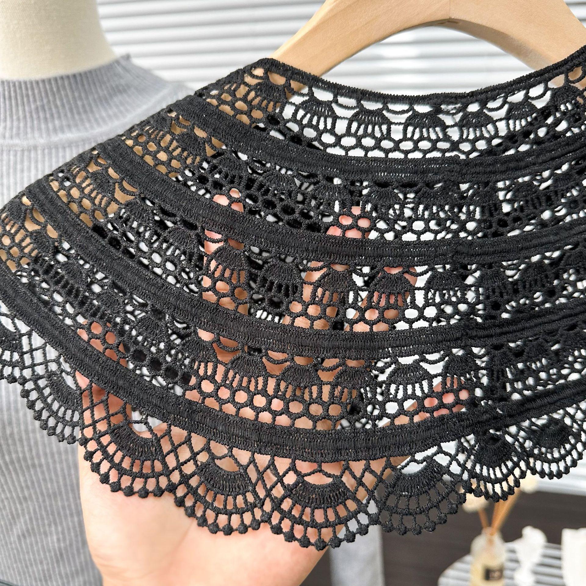 Nueva Blusa de Encaje Floral con Lazo y Cuello Ondulado Calado Estilo Pequeño Fragante Ropa de Mujer con Cuello Falso Dulce