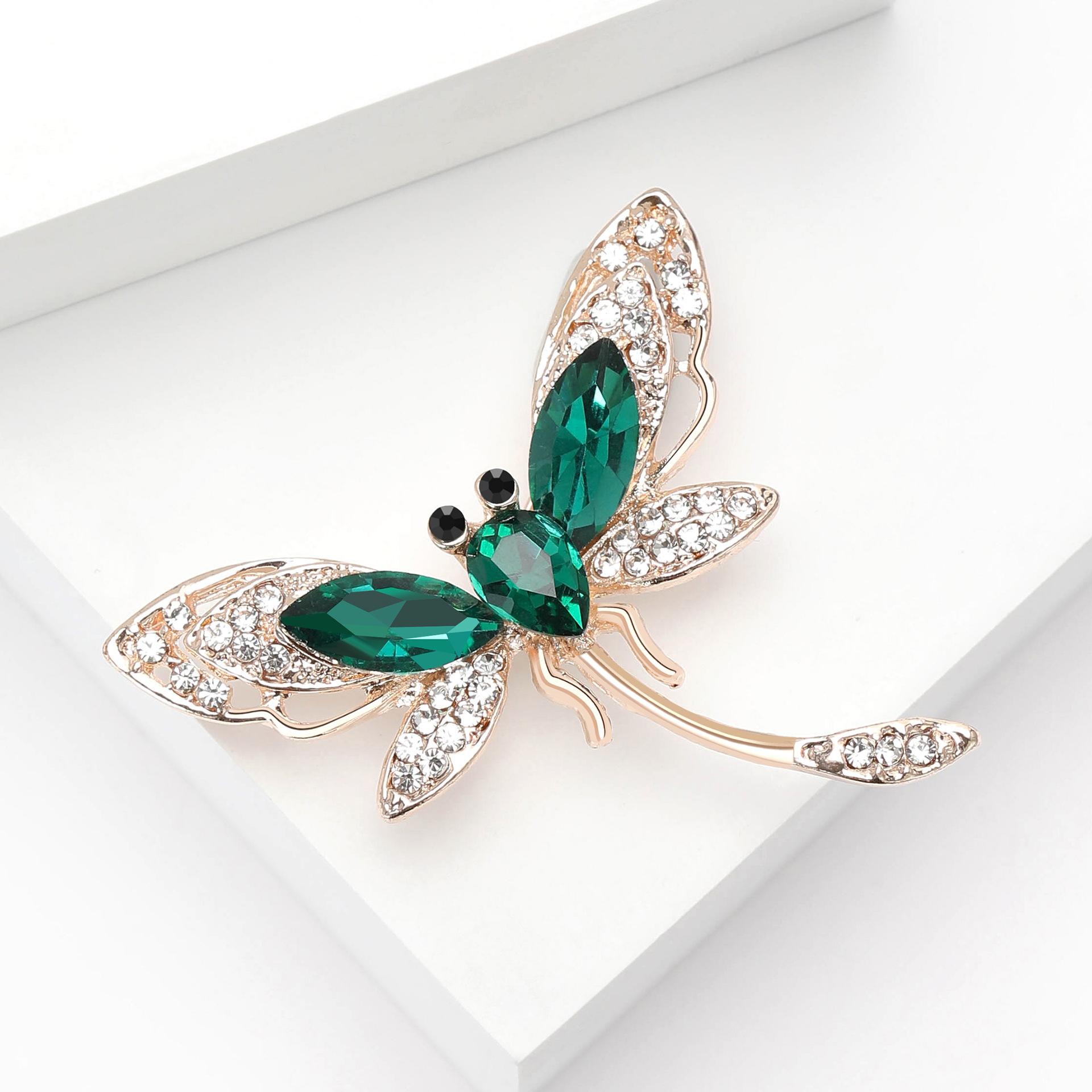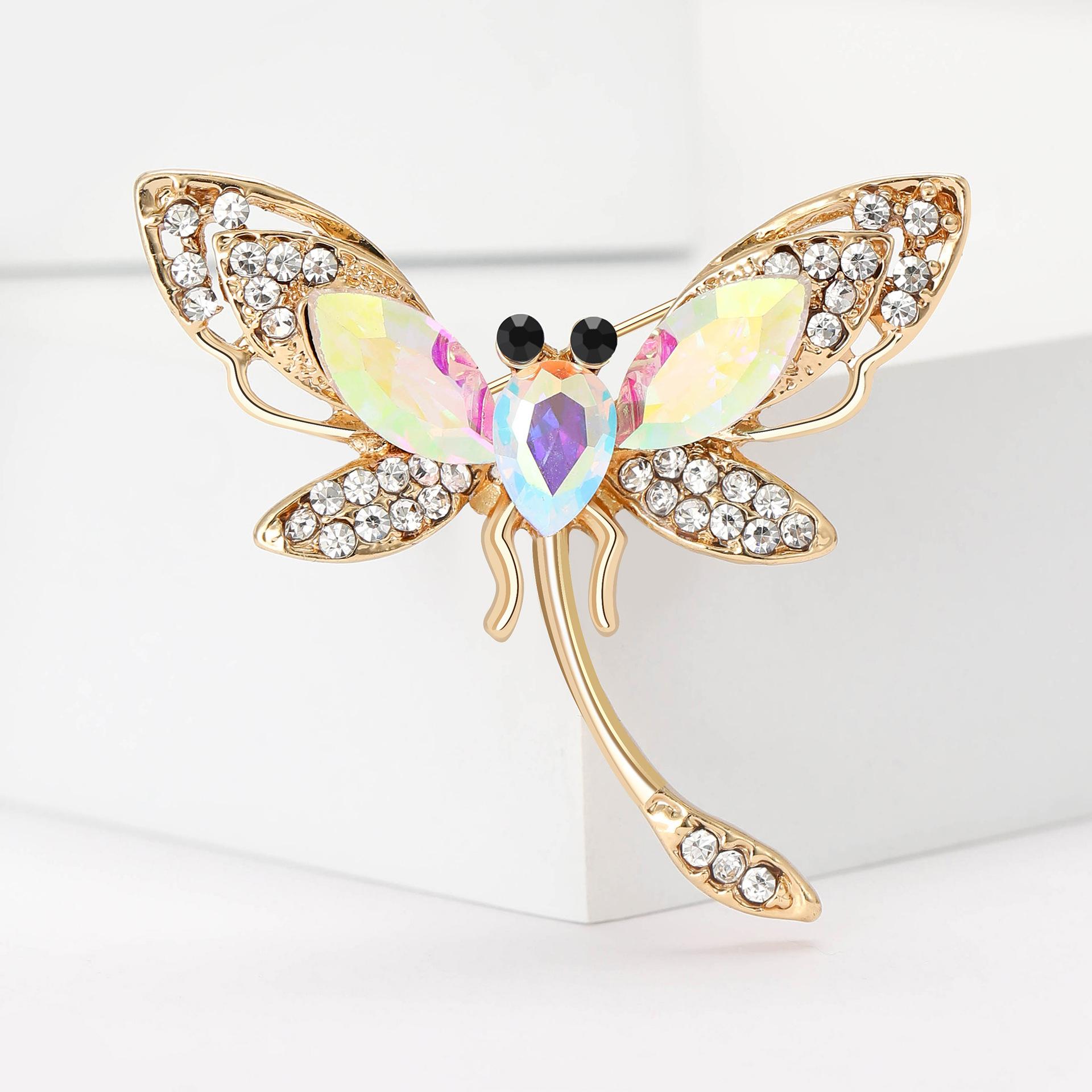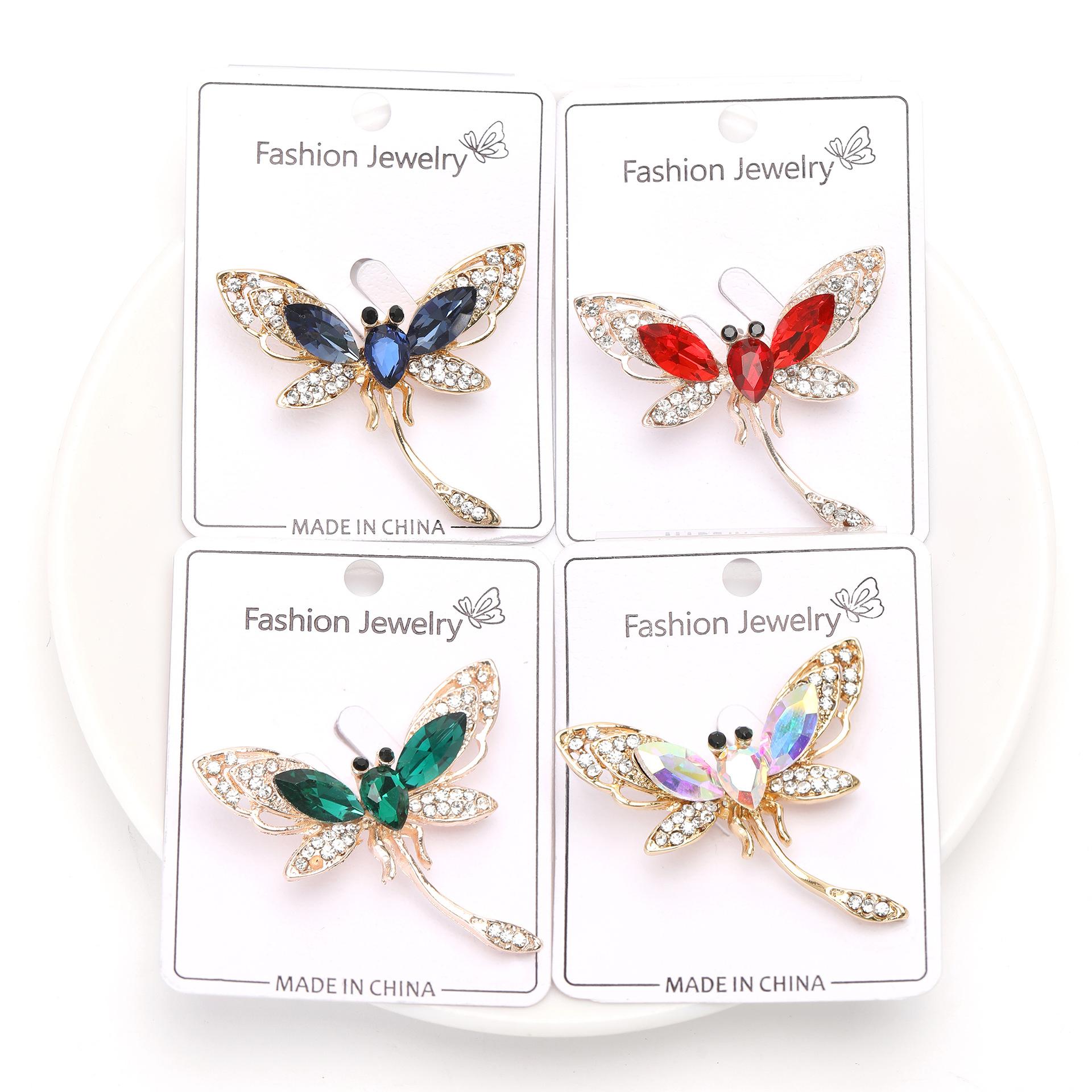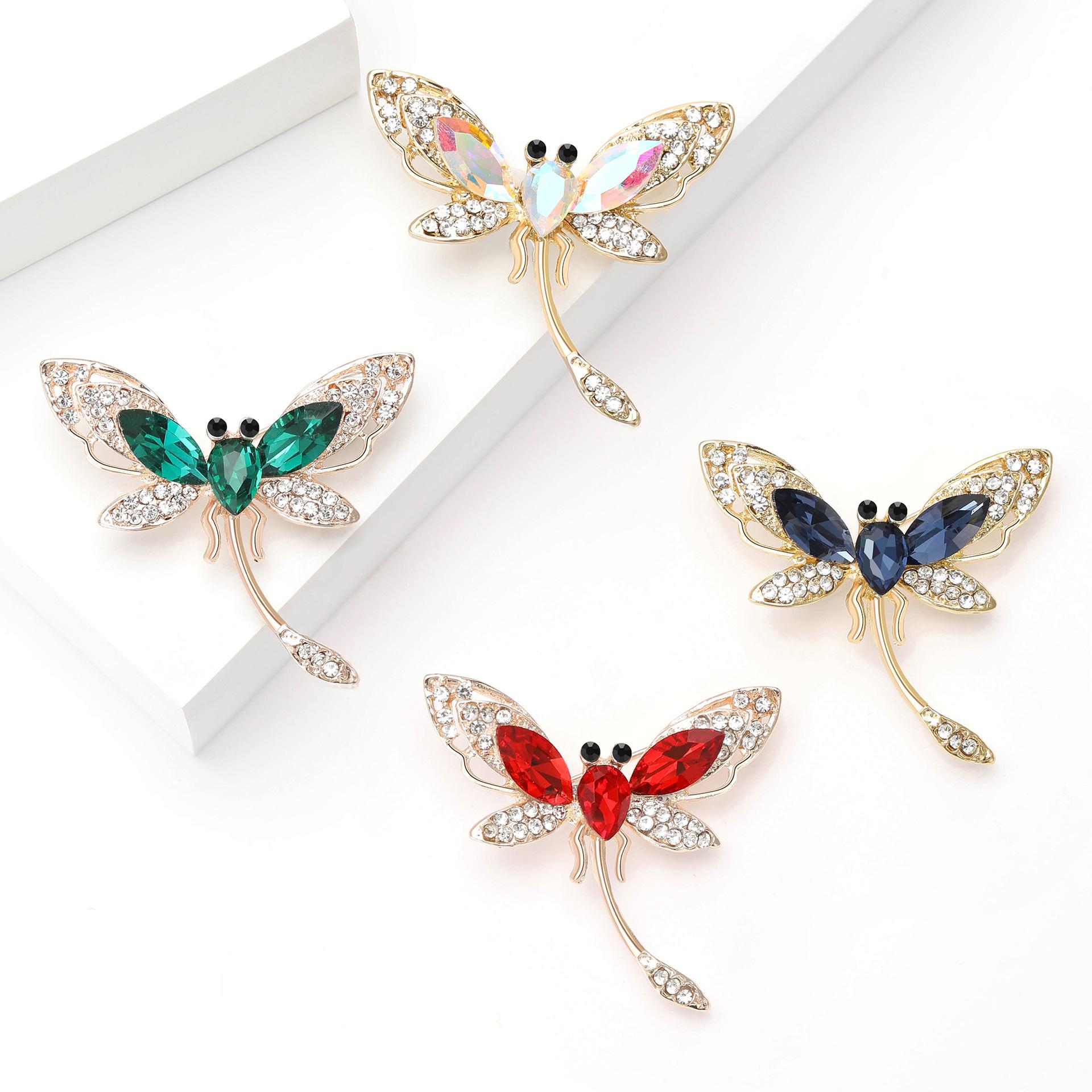 Broche de libélula con diamantes de imitación para mujer, joyería creativa de lujo para vestido, broche de insecto