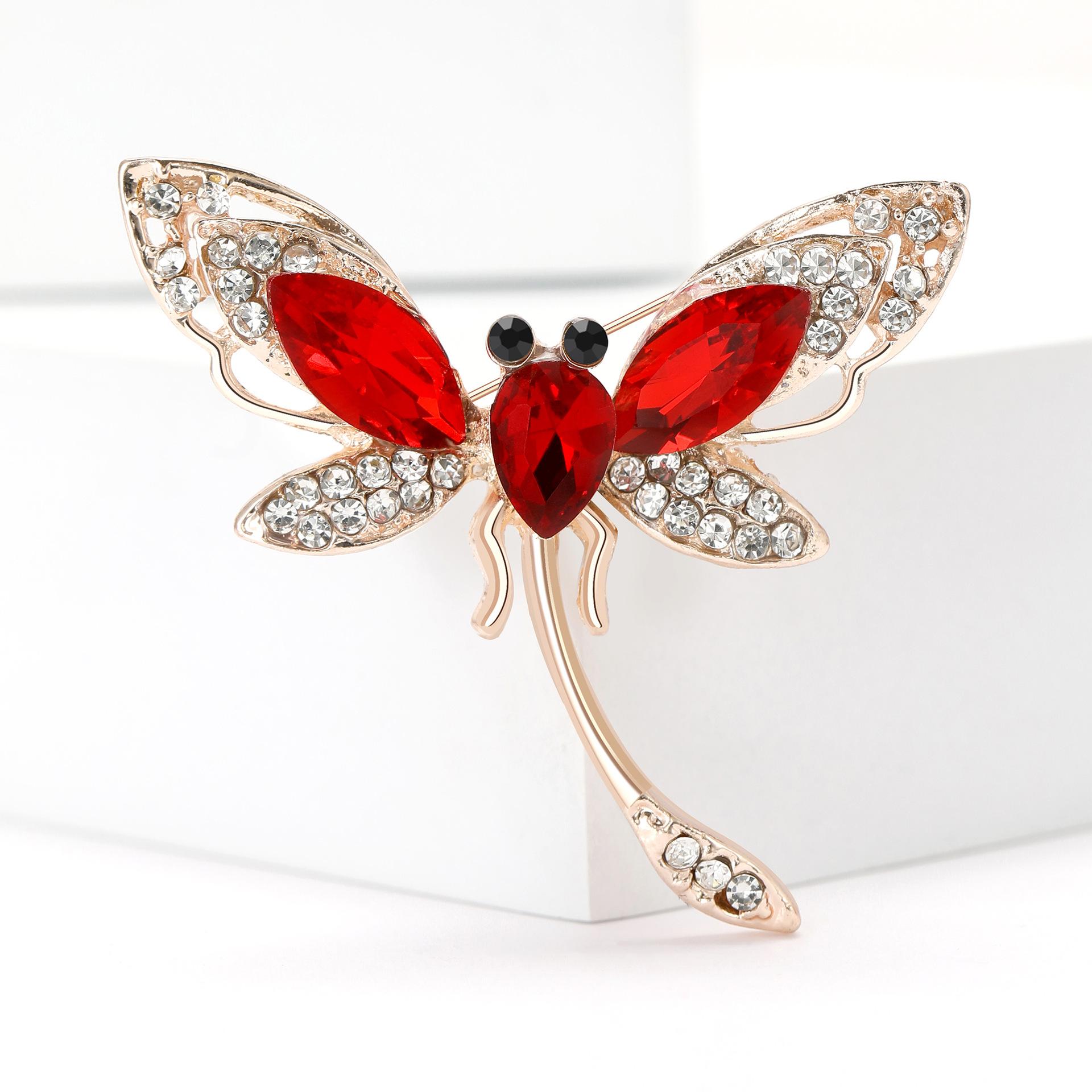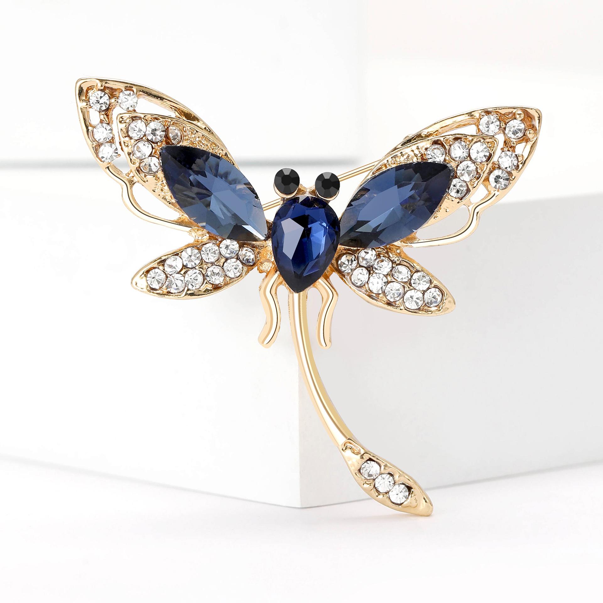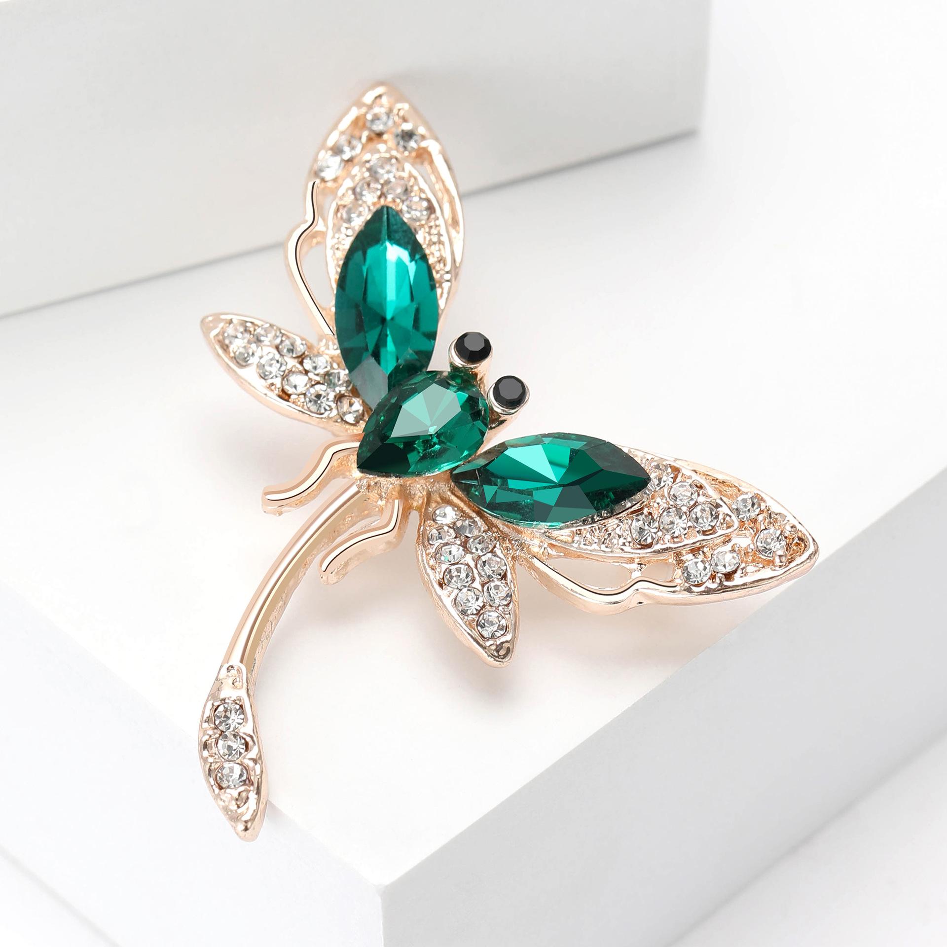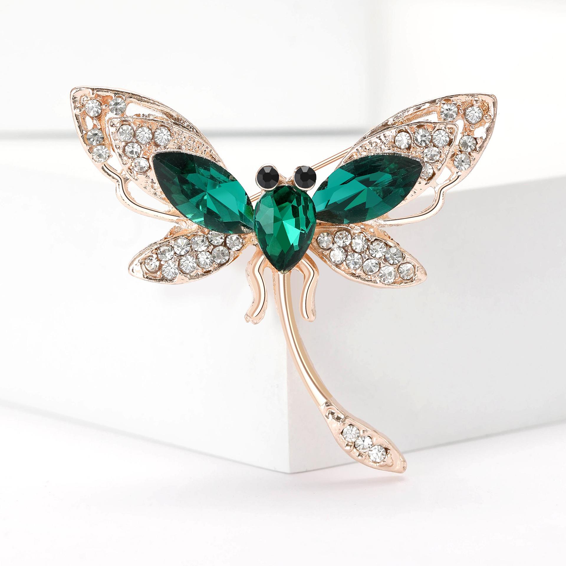 Broche de libélula con diamantes de imitación para mujer, joyería creativa de lujo para vestido, broche de insecto