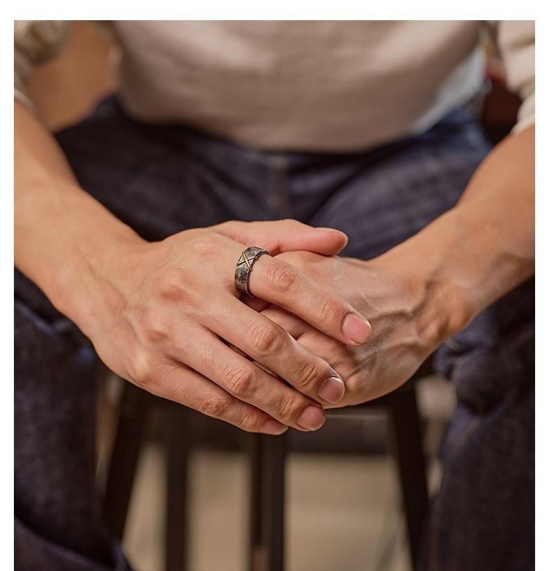 Anillo X Bicolor Anillo Desconocido Anillo para Hombre Moderno Plata Tailandesa Vintage Hecho a Mano Anillo Abierto Nicho Personalidad Fábrica Caliente