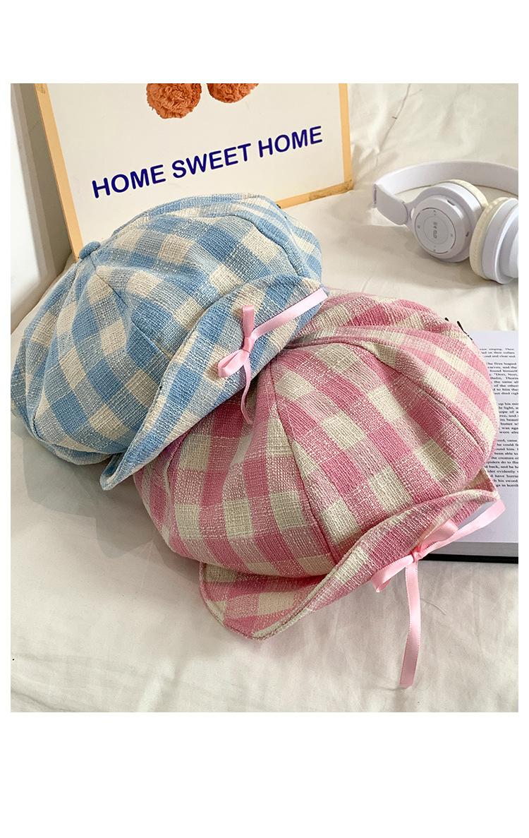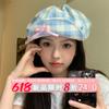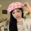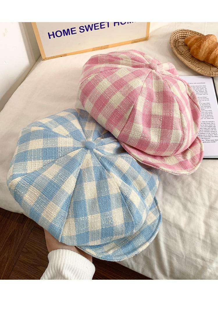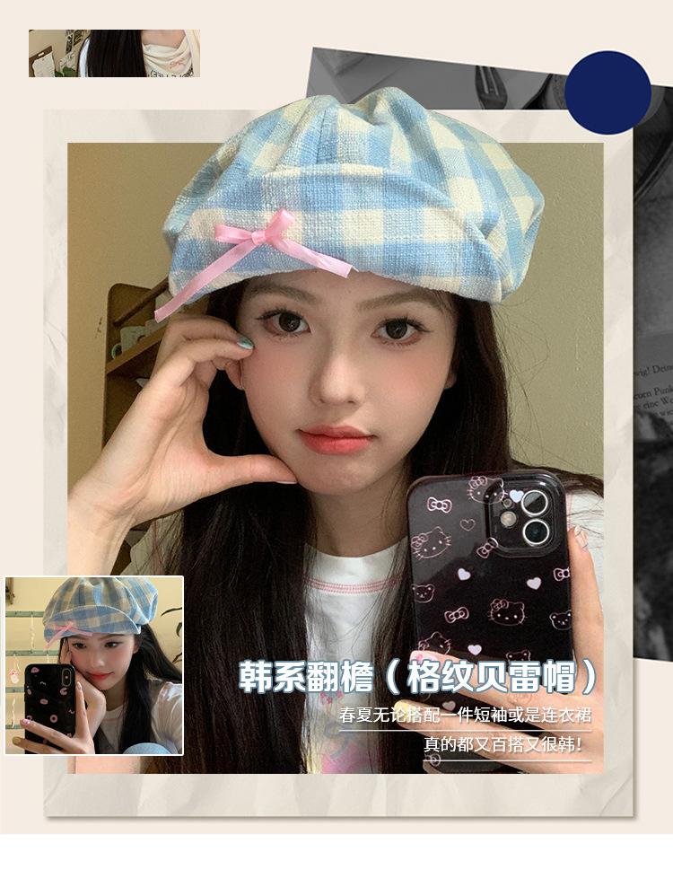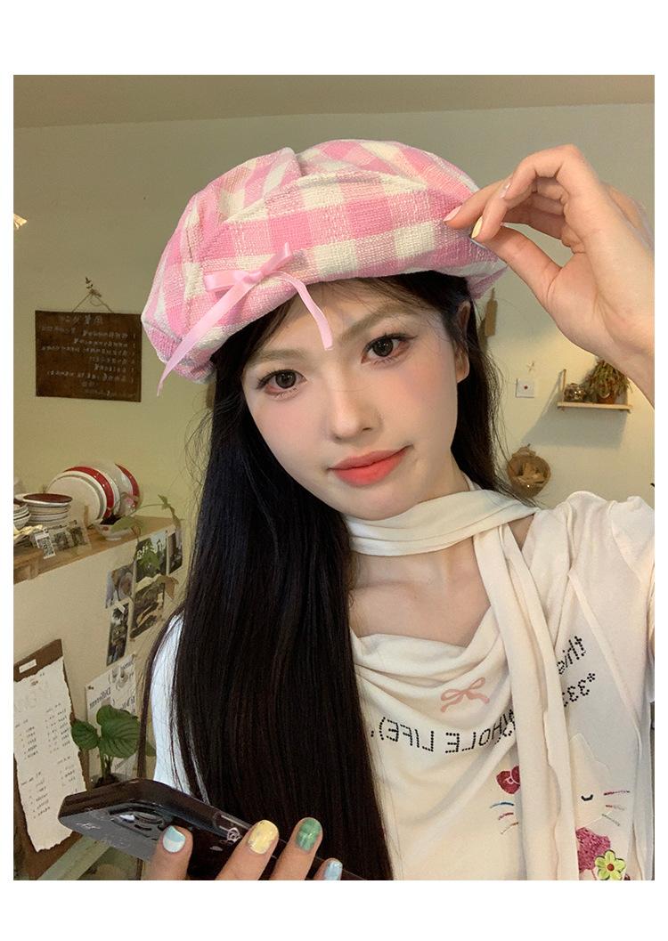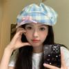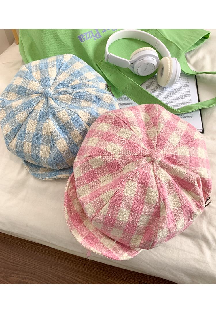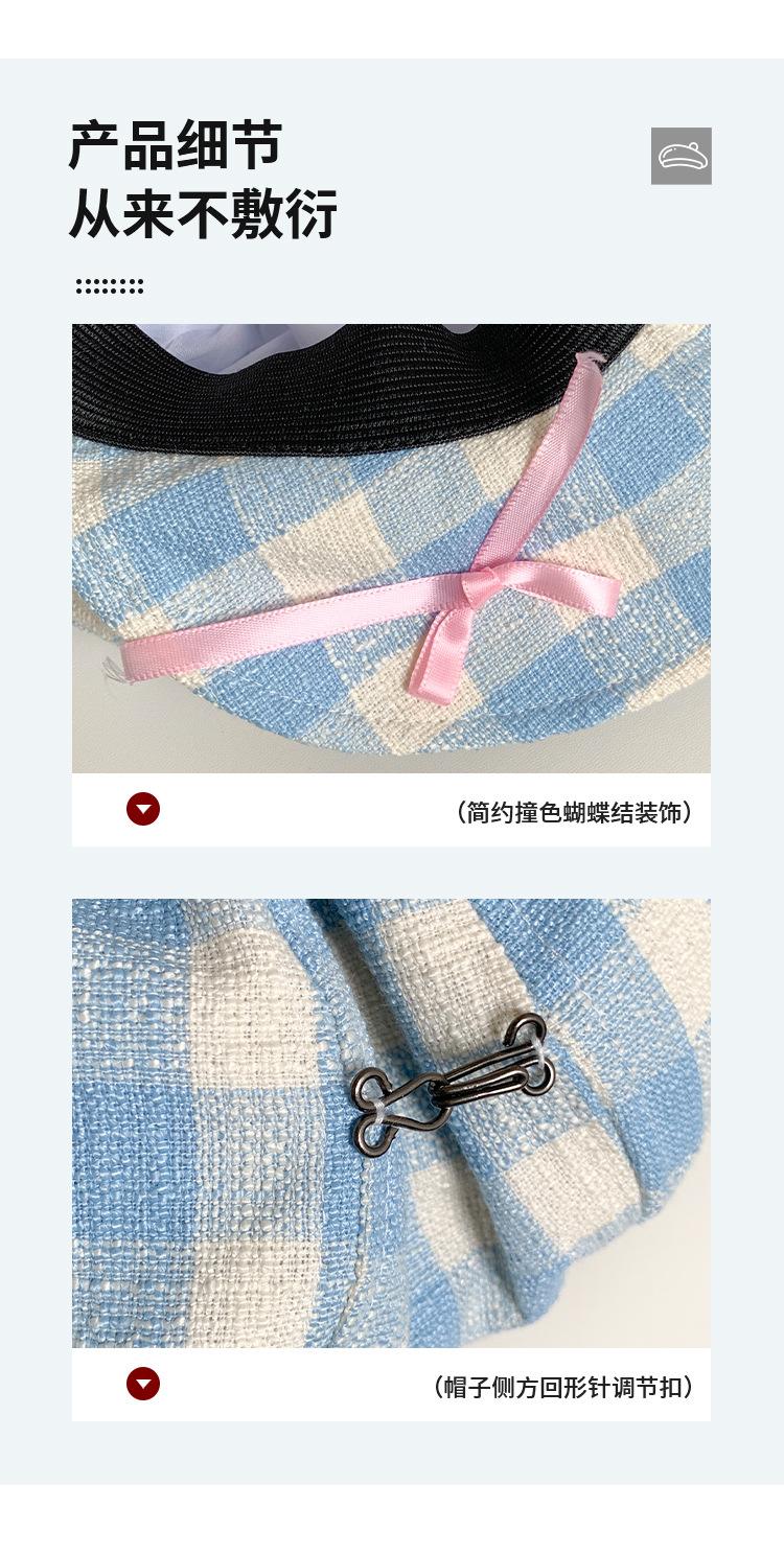 Lindo Boina Octogonal de Nube a Cuadros con Lazo para Mujer Verano Delgada Transpirable Cabeza Grande Nicho Sombrero de Pintor