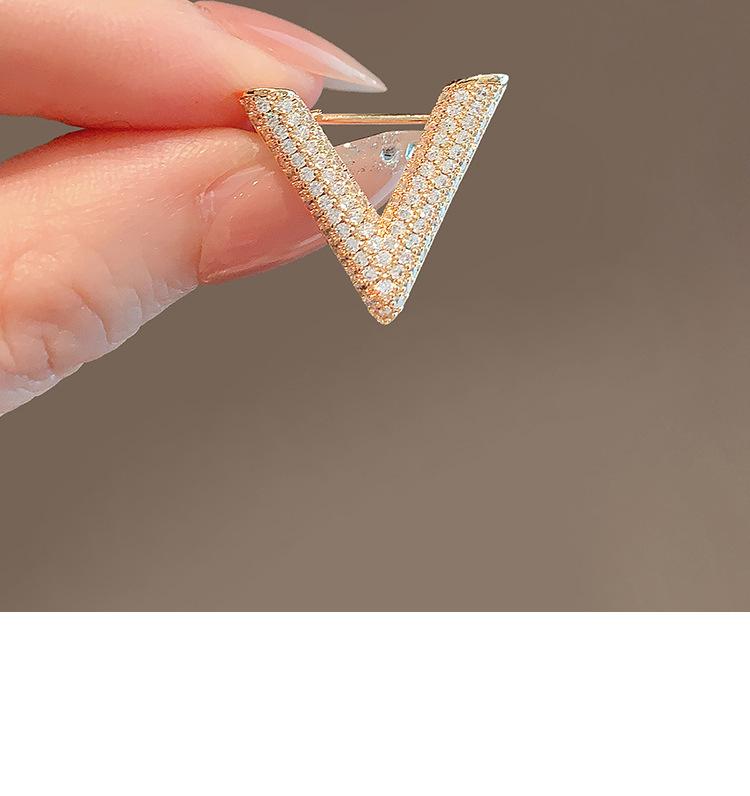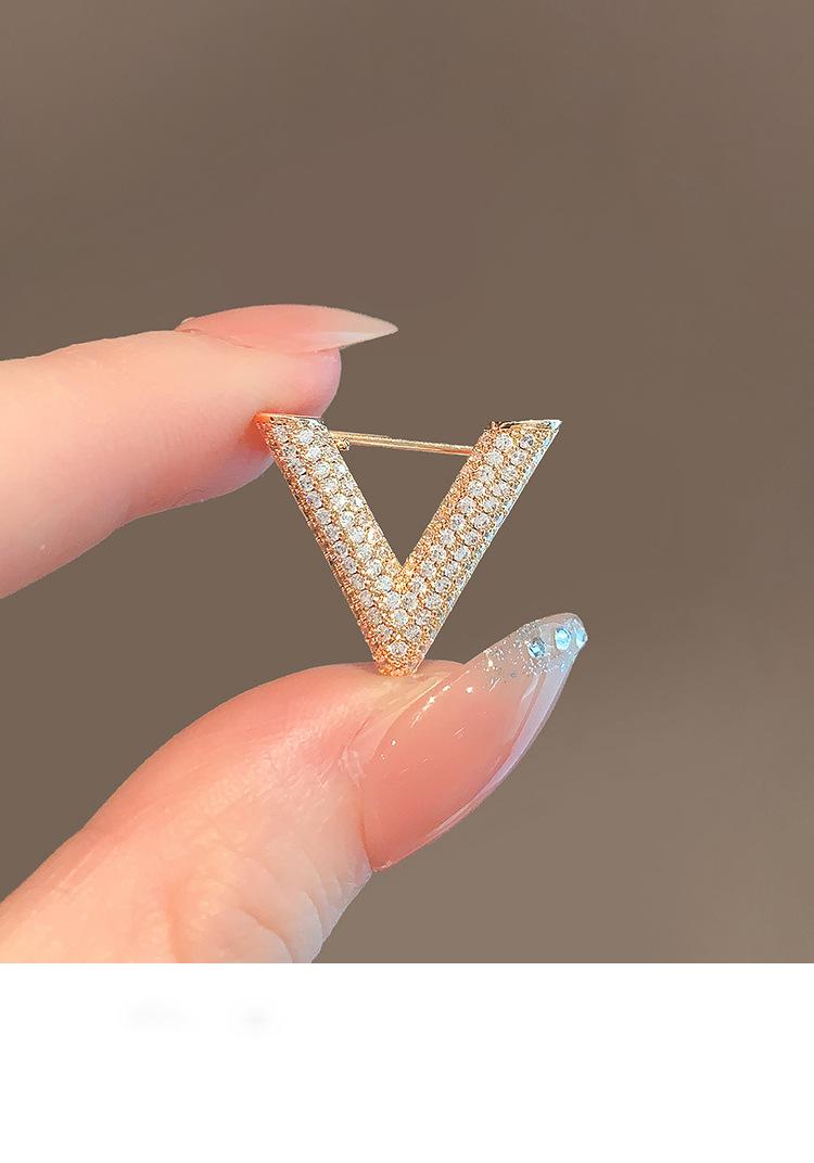 Broche pequeño de diamantes de imitación en forma de V para mujer, hebilla antiluz de verano, ropa fija, ramillete exquisito, pin con personalidad, accesorios para amantes