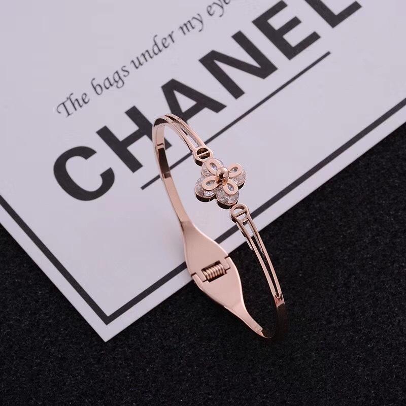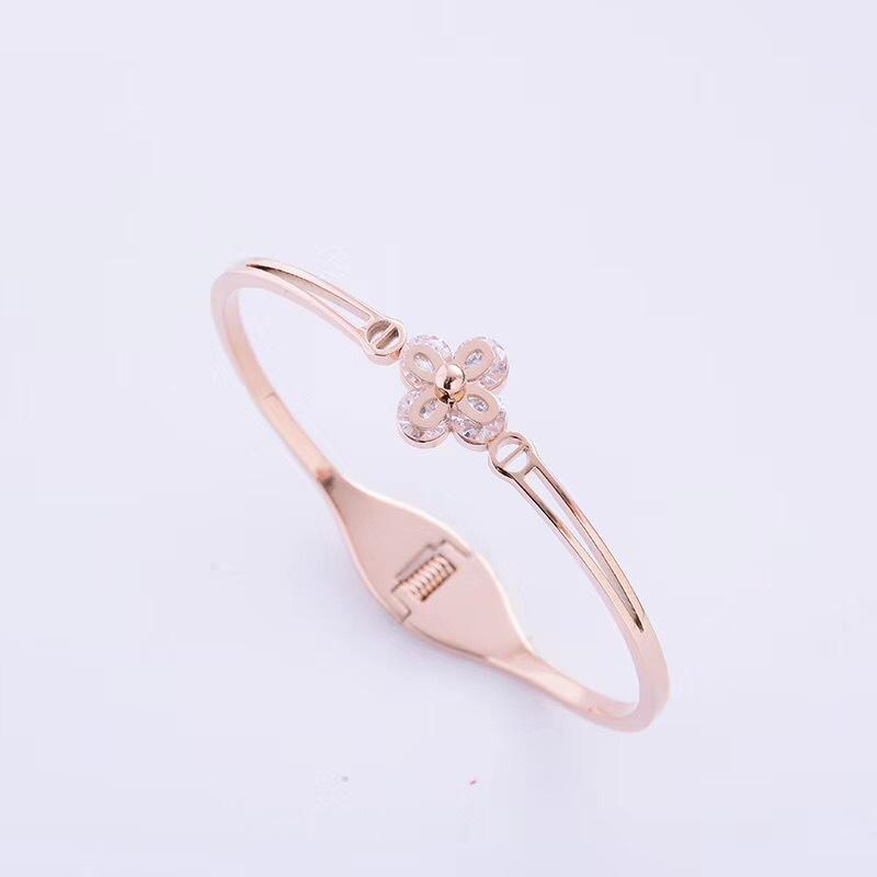 Pulsera coreana de moda de circonita de diamantes de pétalos de acero de titanio pulsera de oro rosa de 18 quilates joyería que no se desvanece para mujeres