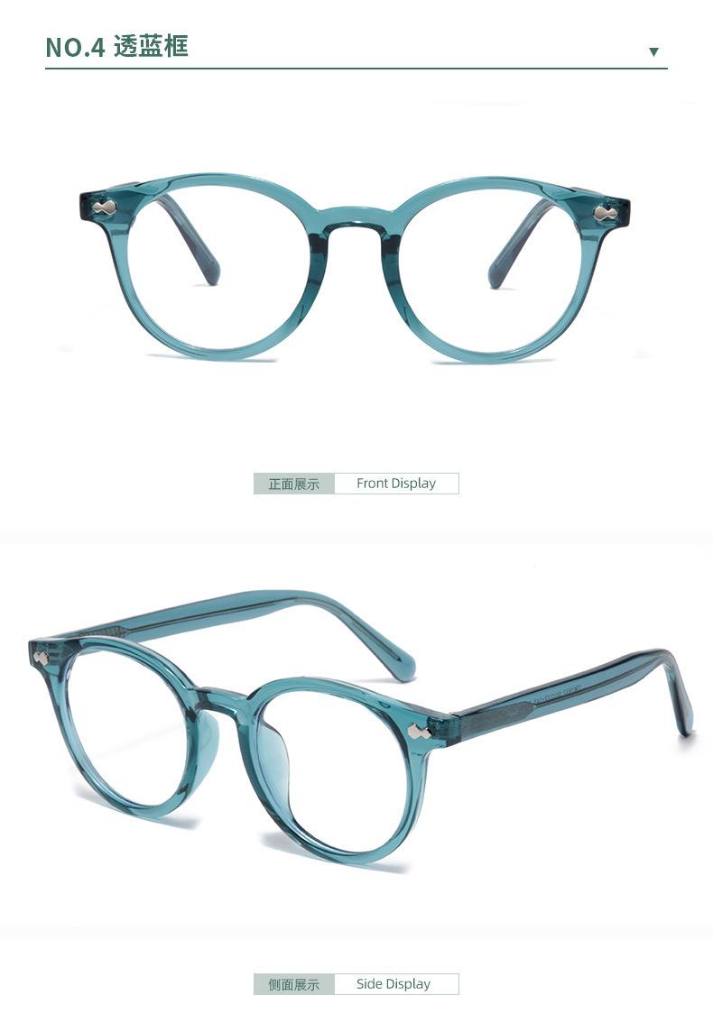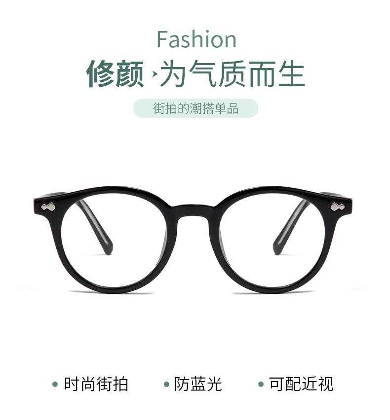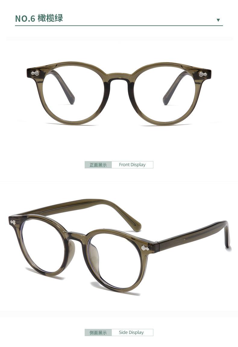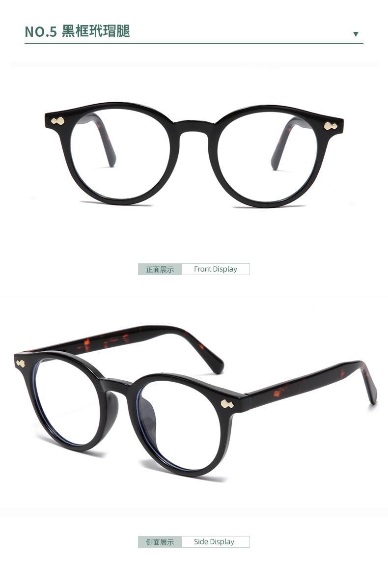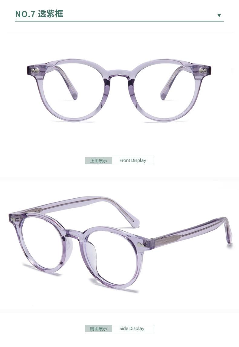 Armazón de Gafas Redondo Retro con Miopía Espejo Plano Coreano Luz Anti-Azul Patillas de Placa Mashi sin Recubrimiento Alta Calidad Tr