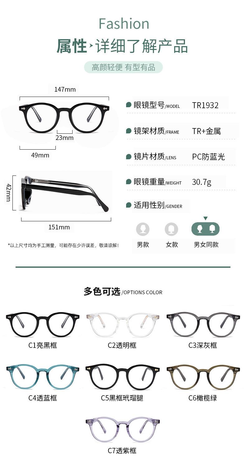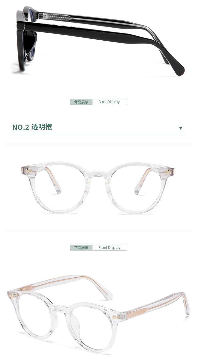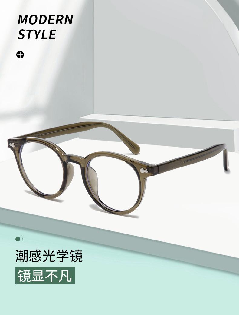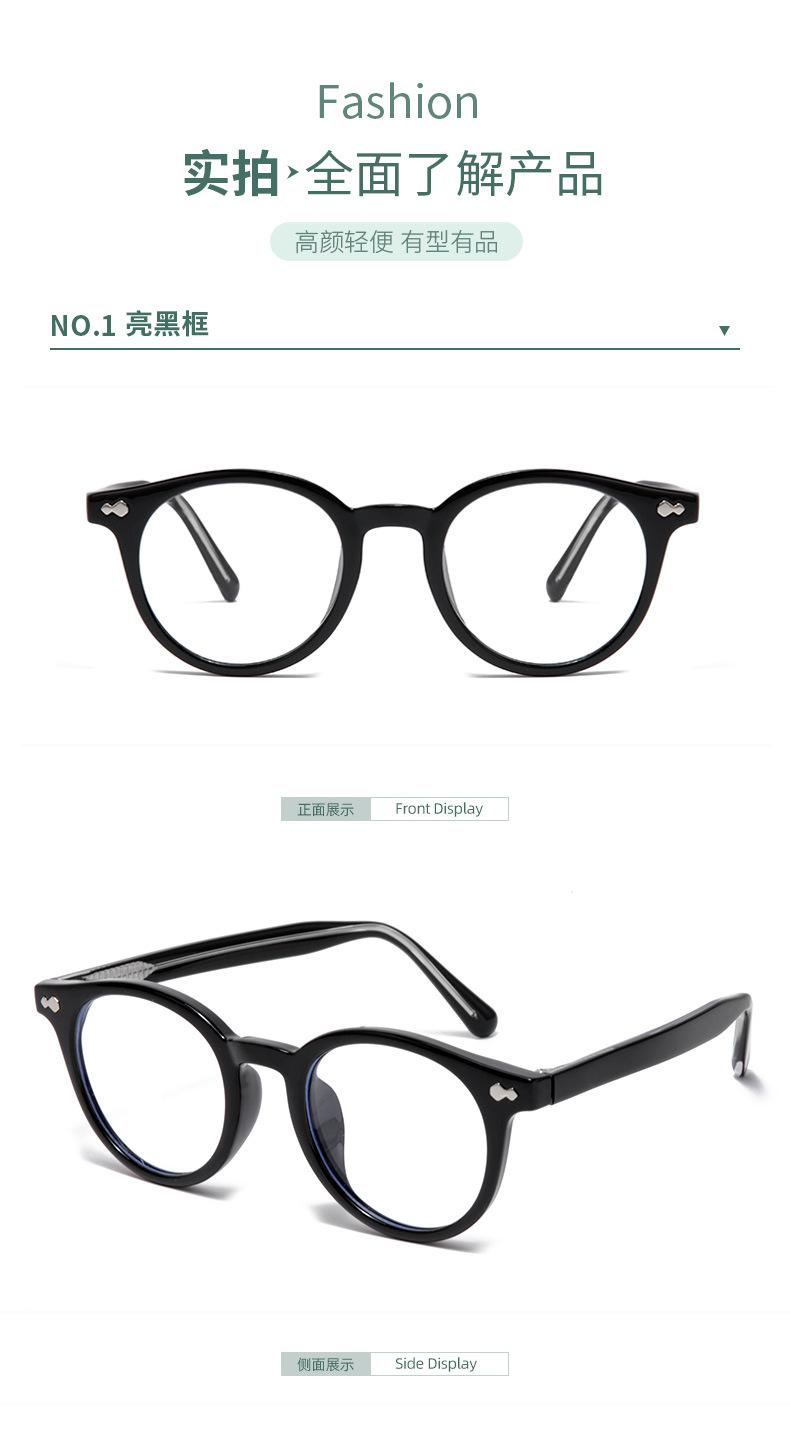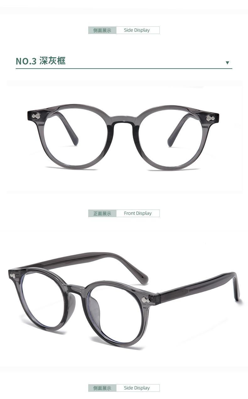 Armazón de Gafas Redondo Retro con Miopía Espejo Plano Coreano Luz Anti-Azul Patillas de Placa Mashi sin Recubrimiento Alta Calidad Tr