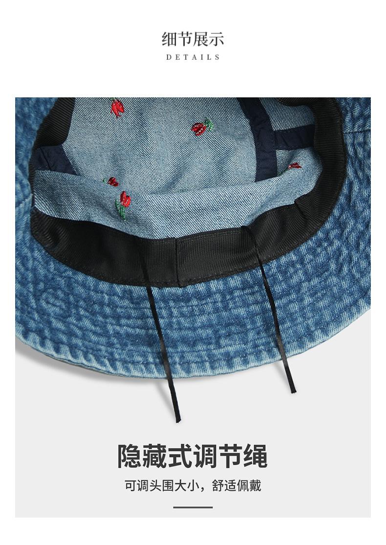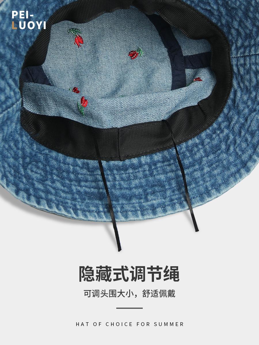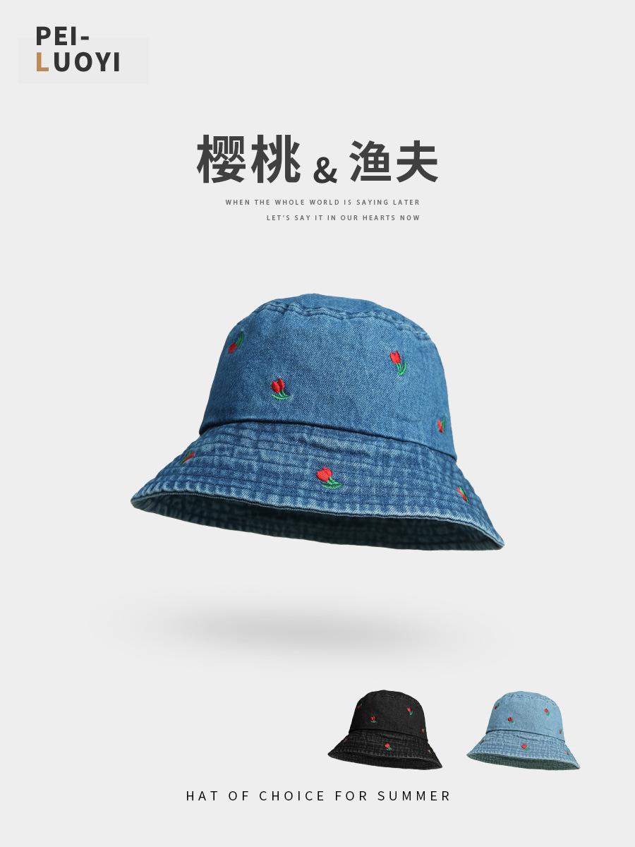 Sombrero de pescador de mezclilla fresco de estilo japonés para mujer, sombrero de lavabo retro de verano y otoño, sombrero de sol de estilo Harajuku con protección solar y bordado de amor.