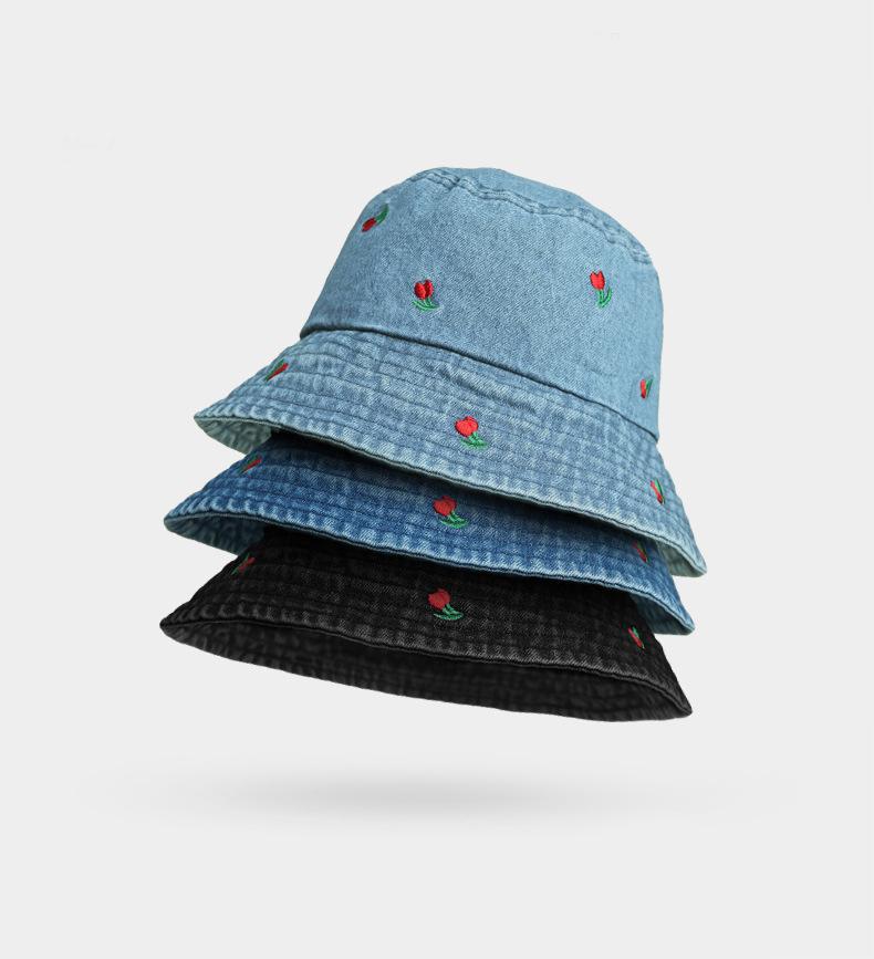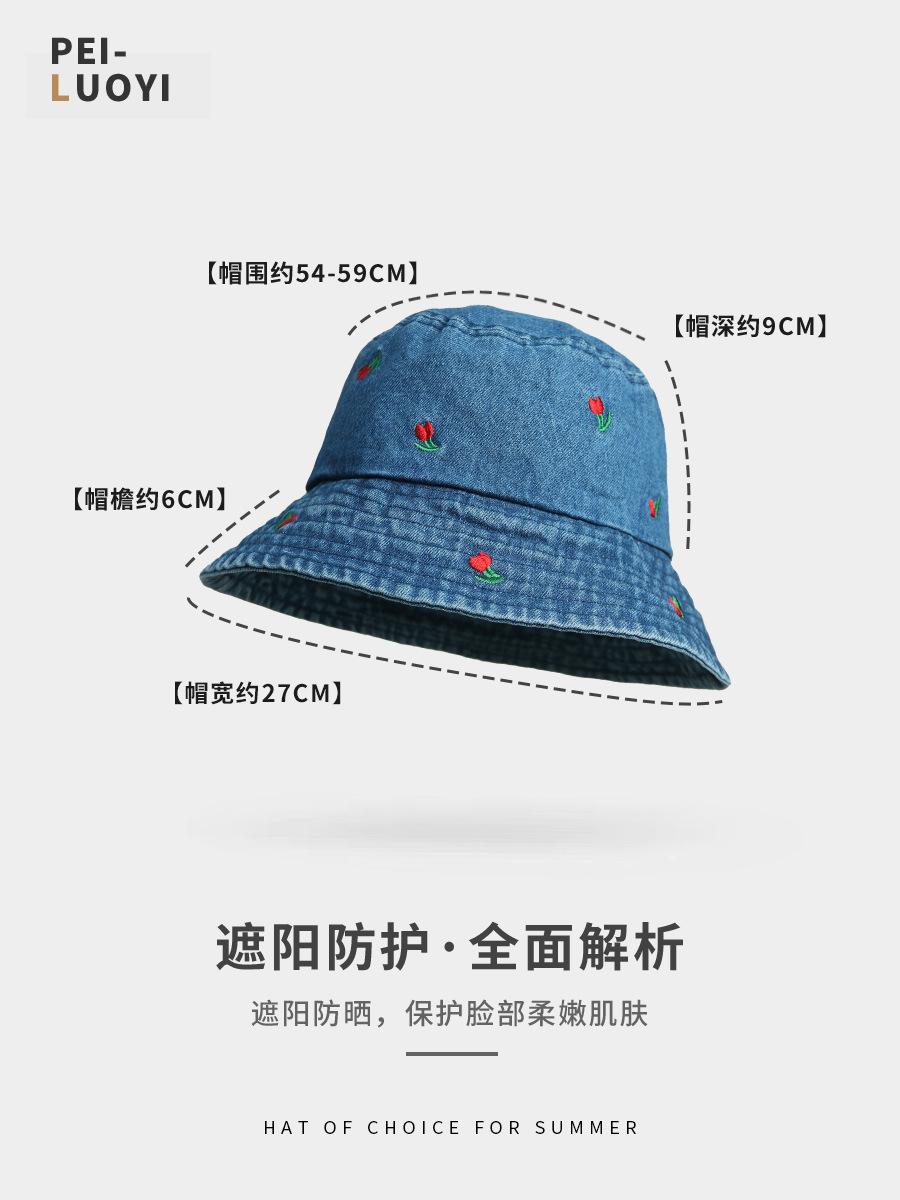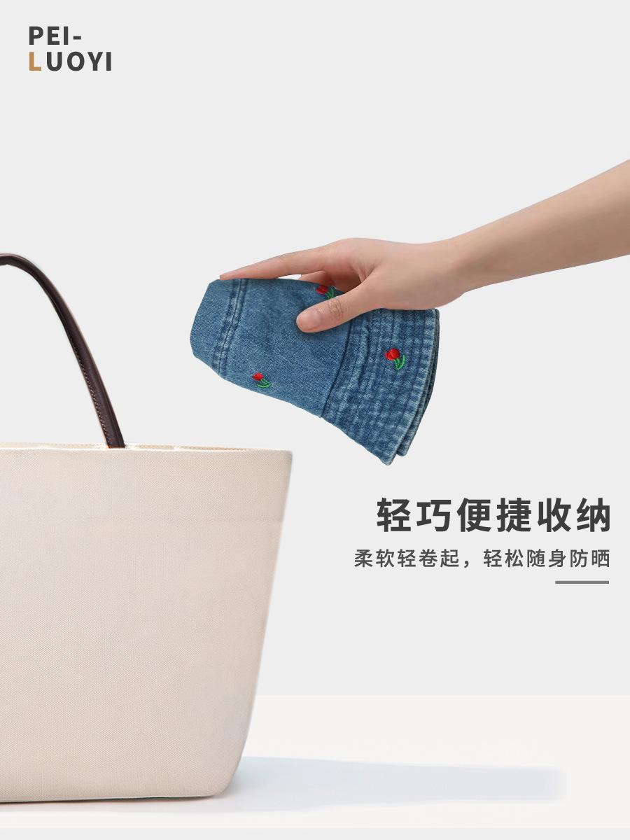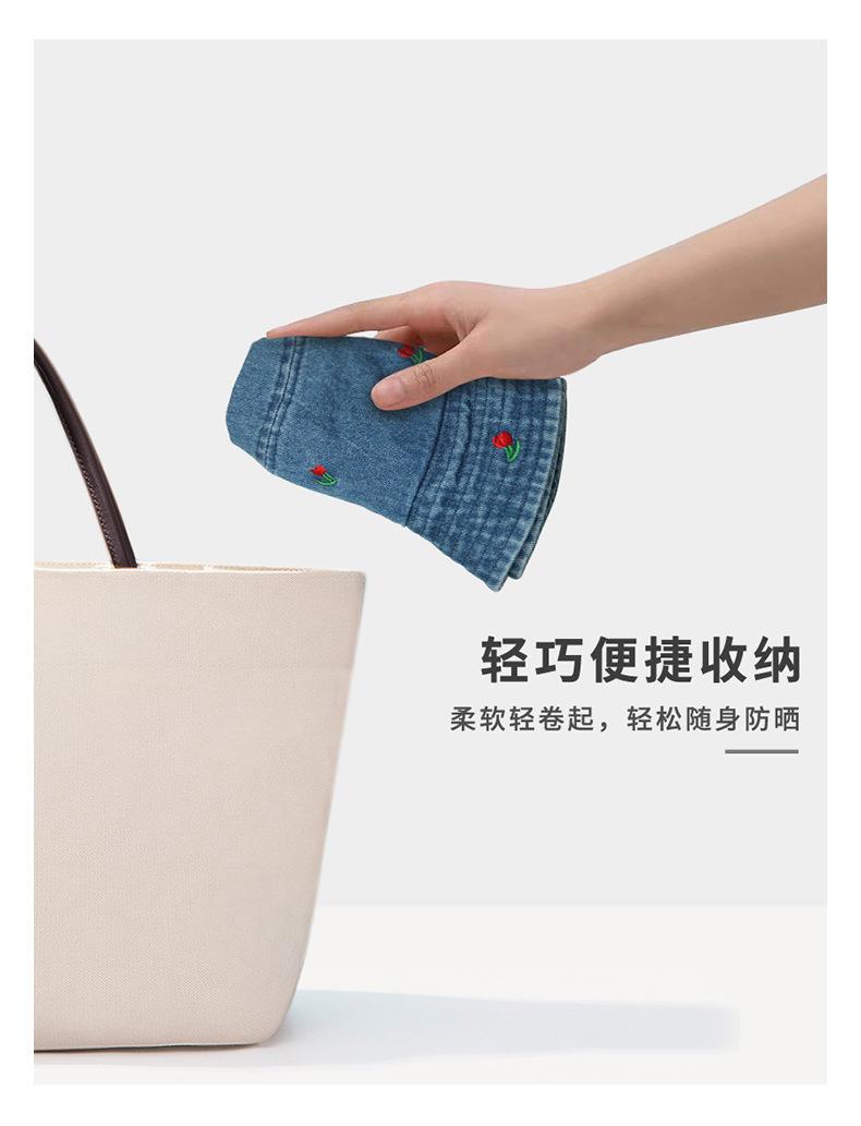 Sombrero de pescador de mezclilla fresco de estilo japonés para mujer, sombrero de lavabo retro de verano y otoño, sombrero de sol de estilo Harajuku con protección solar y bordado de amor.