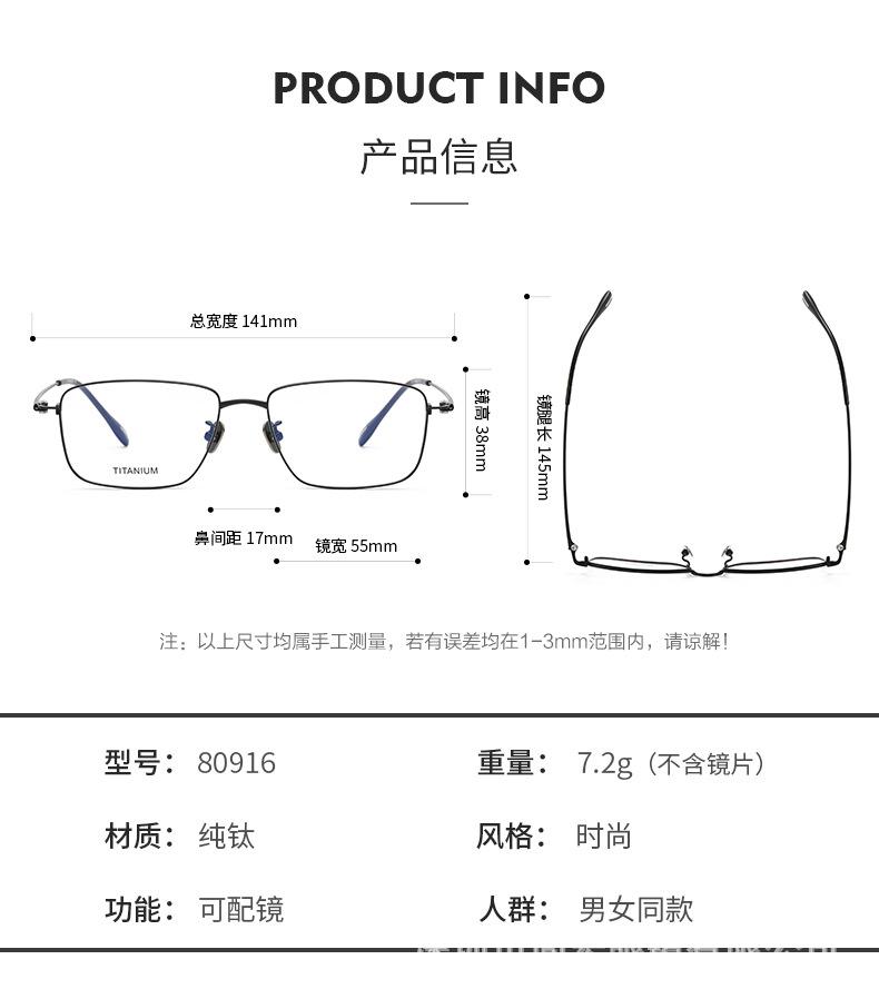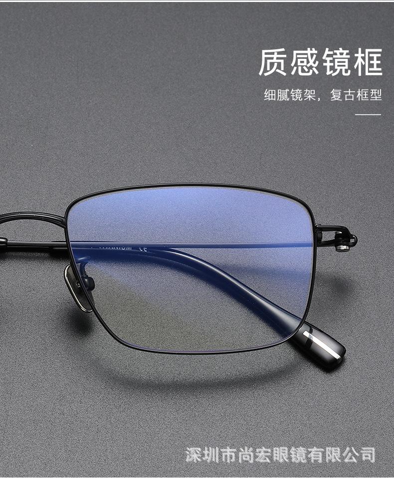 Montura de gafas de titanio puro, nueva moda de negocios, cuadrada, cara grande, 80916, con marco de gafas anti-luz azul que cambia de color para mujer